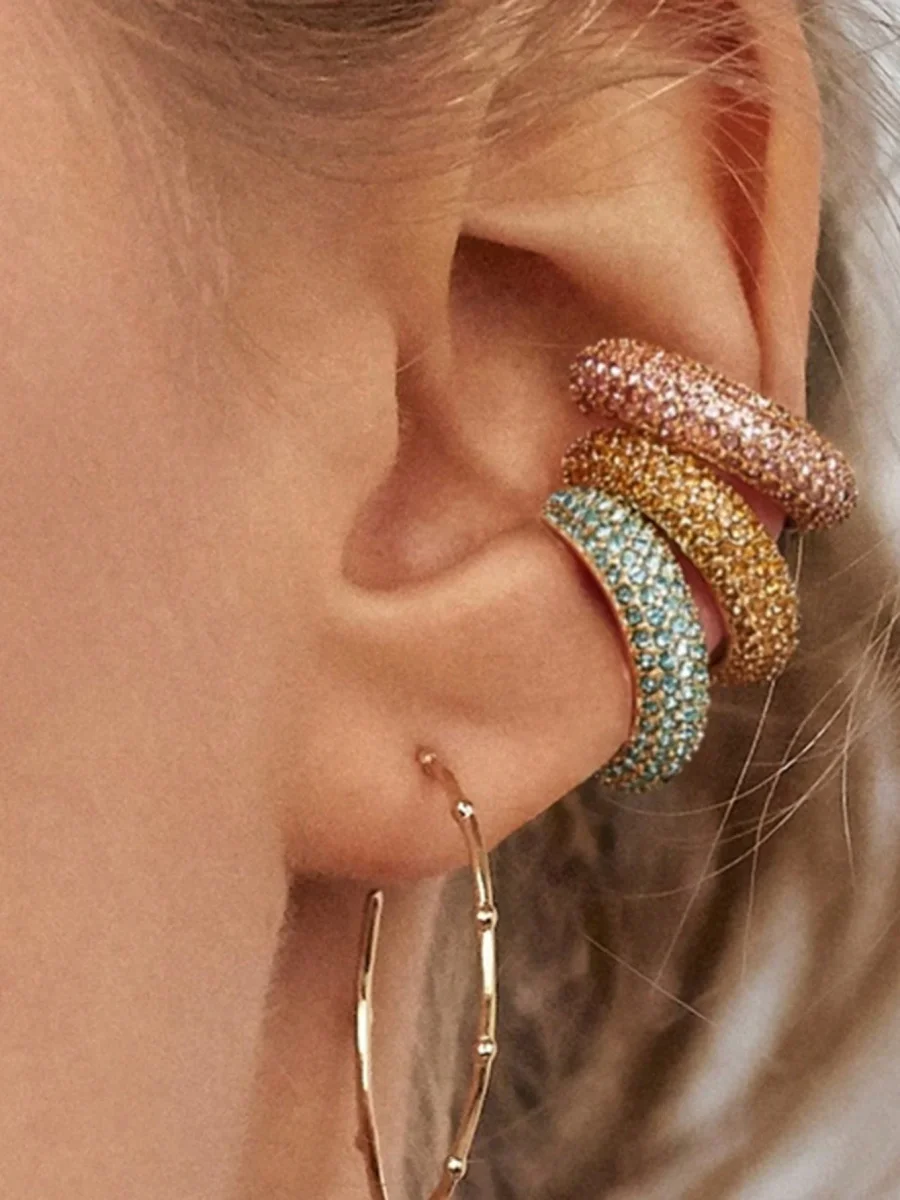 3 pezzi/set clips orecchio con strass