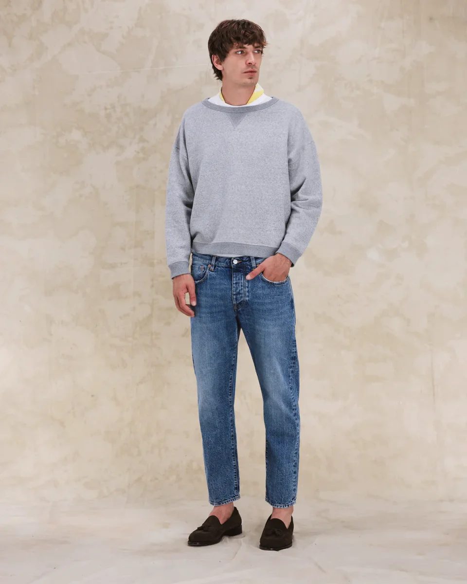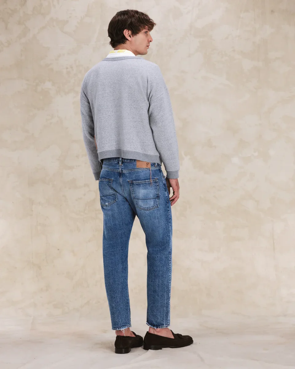 La produzione interamente italiana assicura un’eccellenza produttiva che si riflette in ogni dettaglio del capo e che sottolinea come sia stato creato per durare nel tempo ed evolversi insieme a chi lo indossa. La vestibilità del JOHN 965 è regolare, adatta a diversi tipi di corporatura. I dettagli del JOHN 965, come i bottoni a chiodo logati Fortela son pensati per esaltare la qualità e l’identità del marchio. La cucitura a punto catenella che si traduce nell’orlo chiocciolina non è solo un dettaglio estetico, ma anche un simbolo di durabilità e cura artigianale.