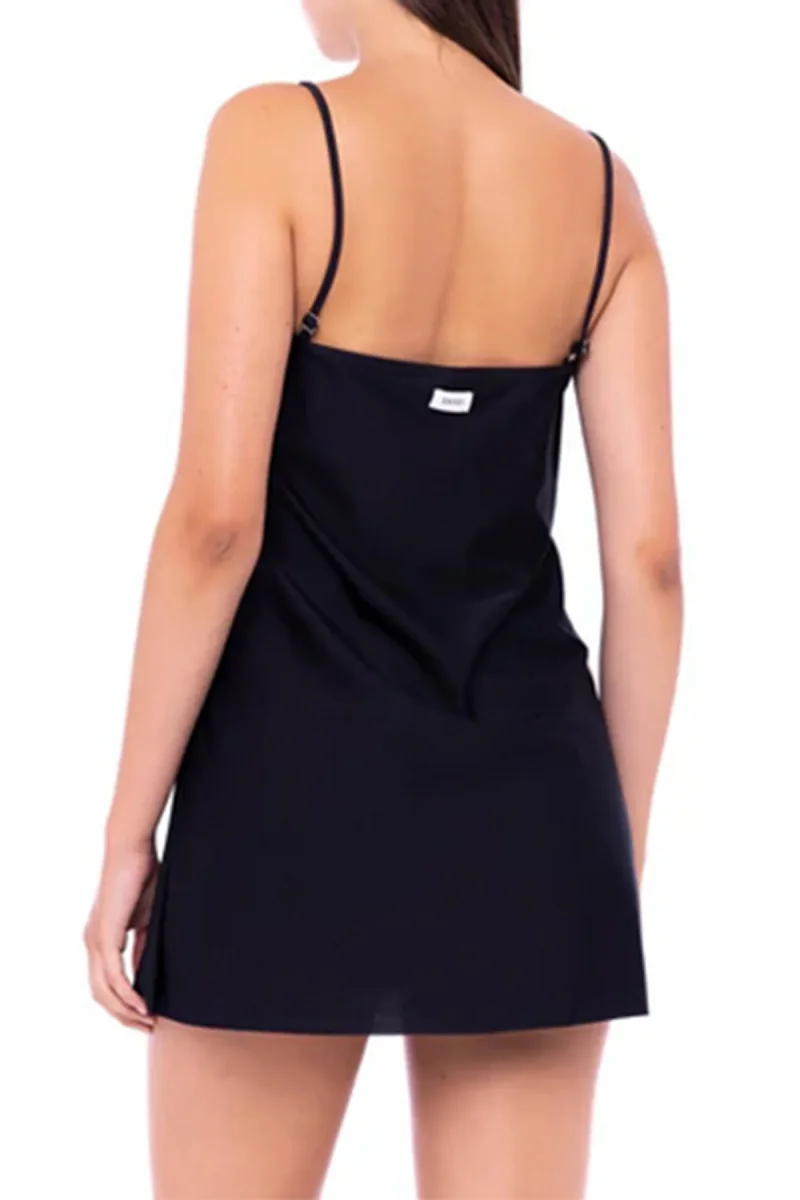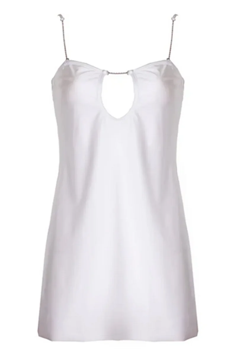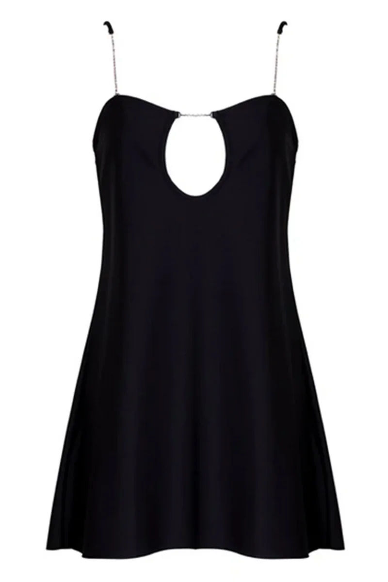 Abitino donna mare corto con cut-out e catena strass centro sento bretelle regolbili fondo svasato