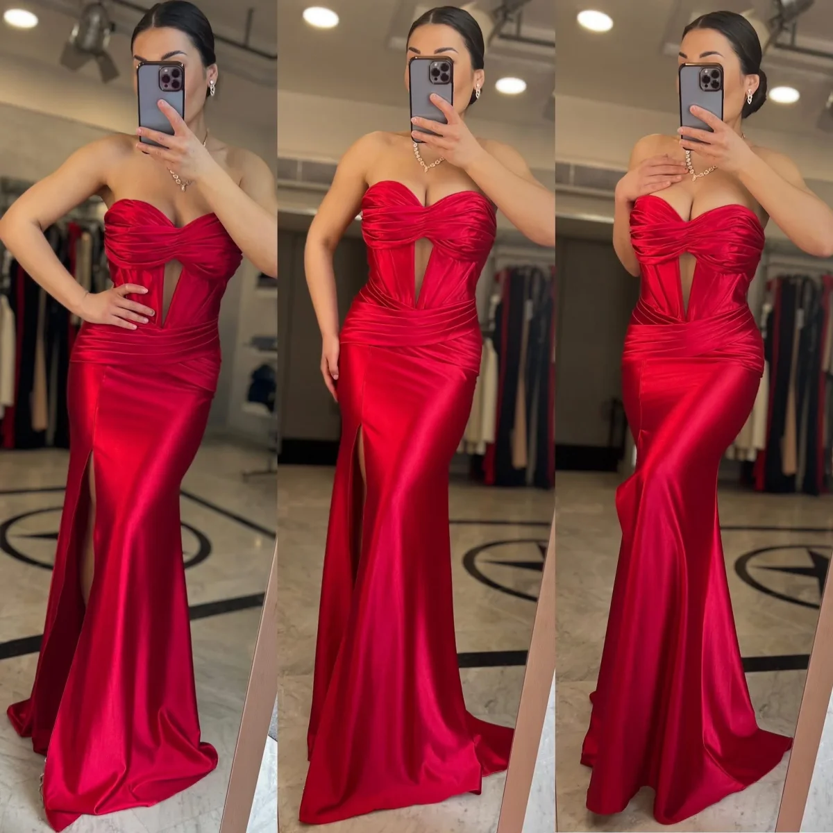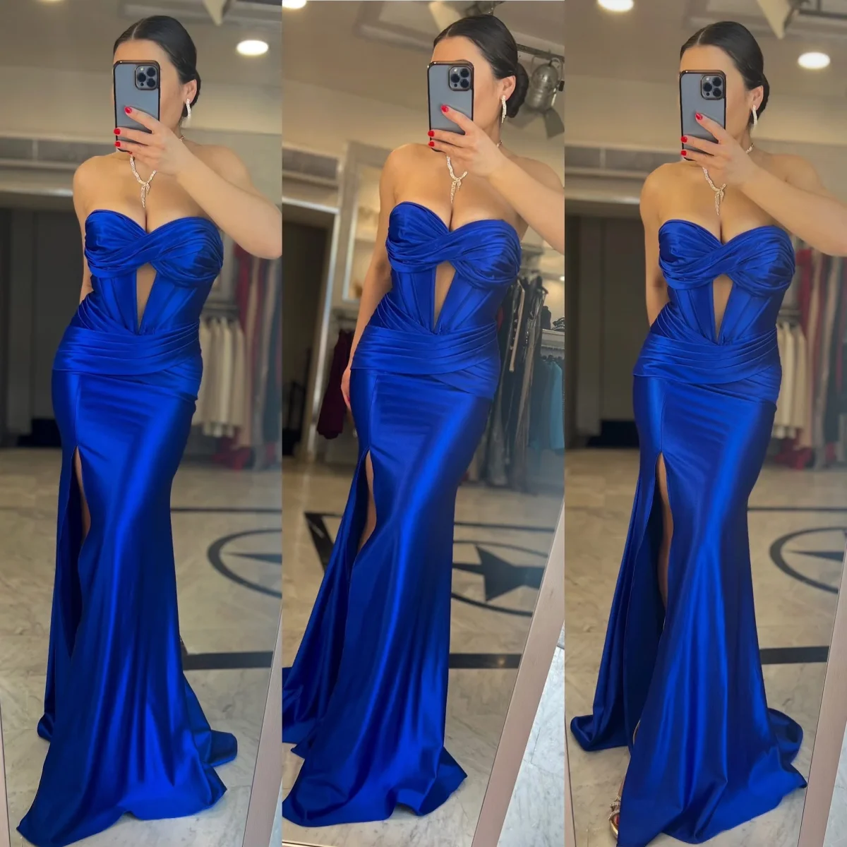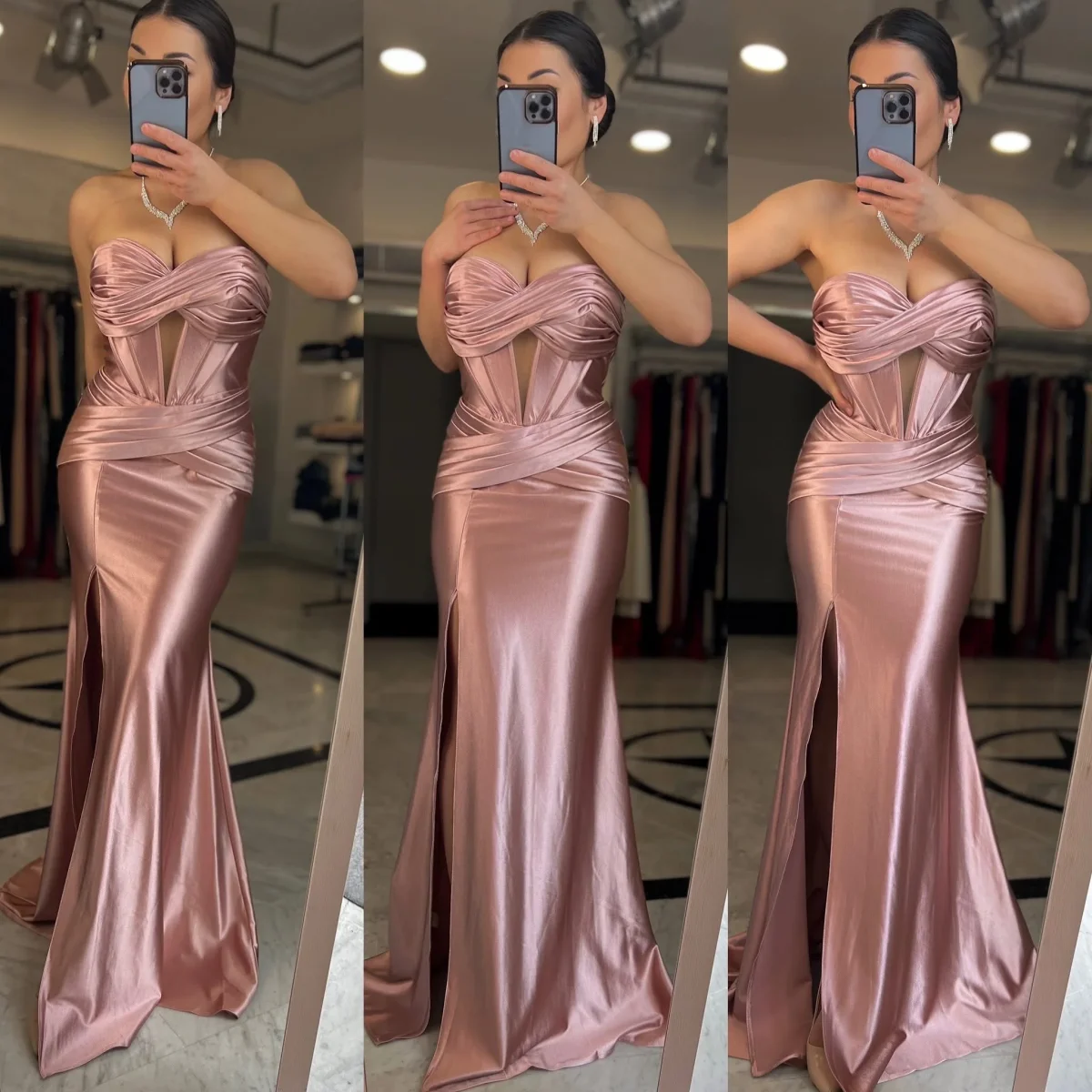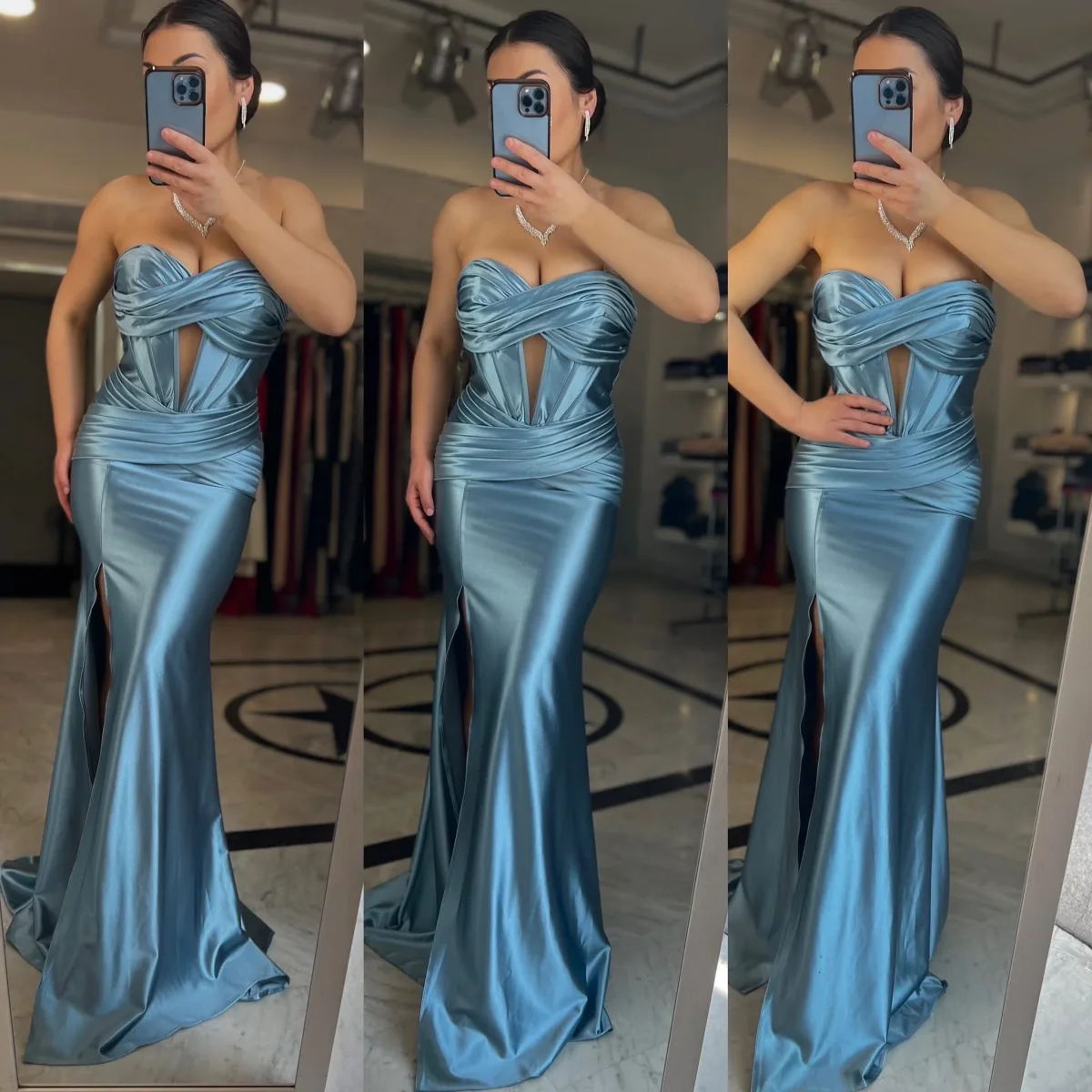Abito lungo da cerimonia con bustino intrecciato, cut out e spacco laterale