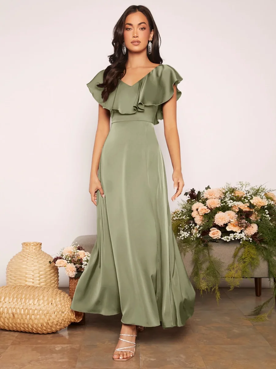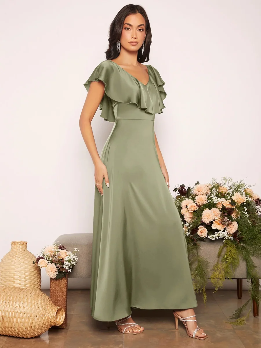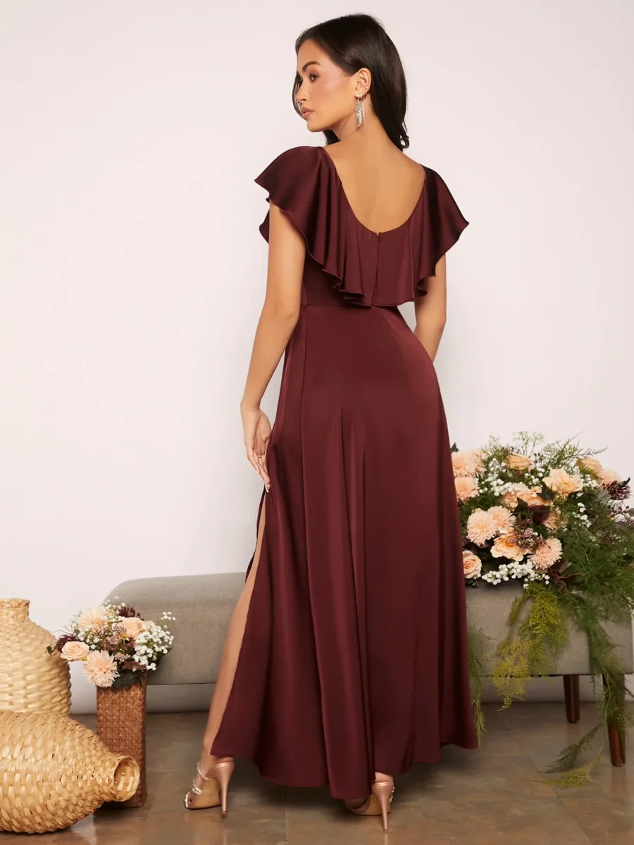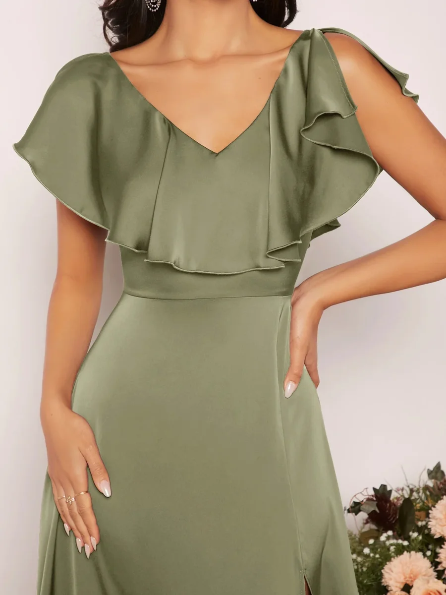Recensisci per primo “Abito con bordo a volant a fessura alta in raso”