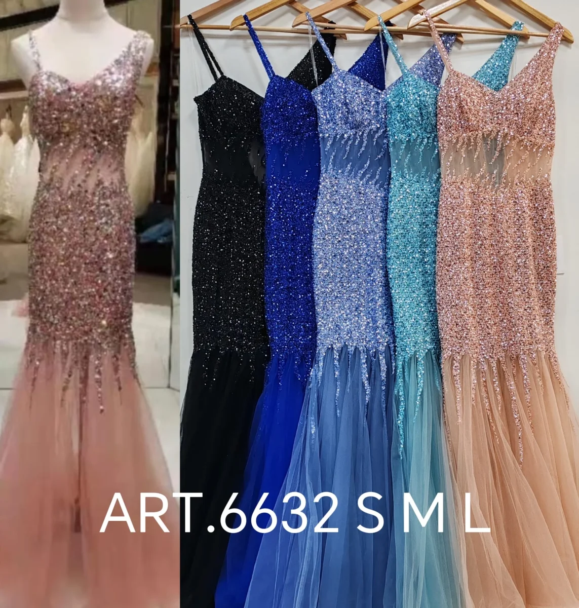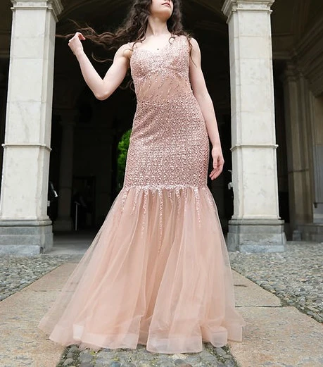 Abito a sirena tutto lavorato in paillettes e tulle