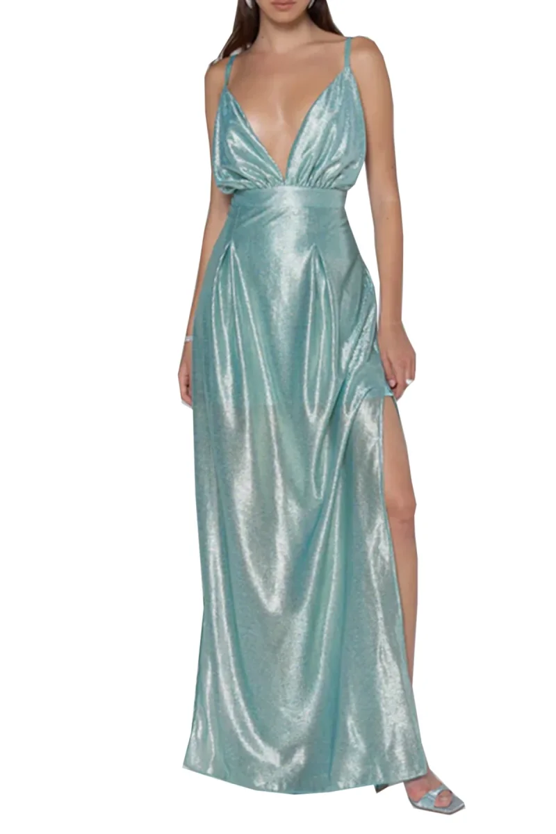 Abito donna lungo con spacco laterale scollo a triangolo con schiena scoperta e bretelline