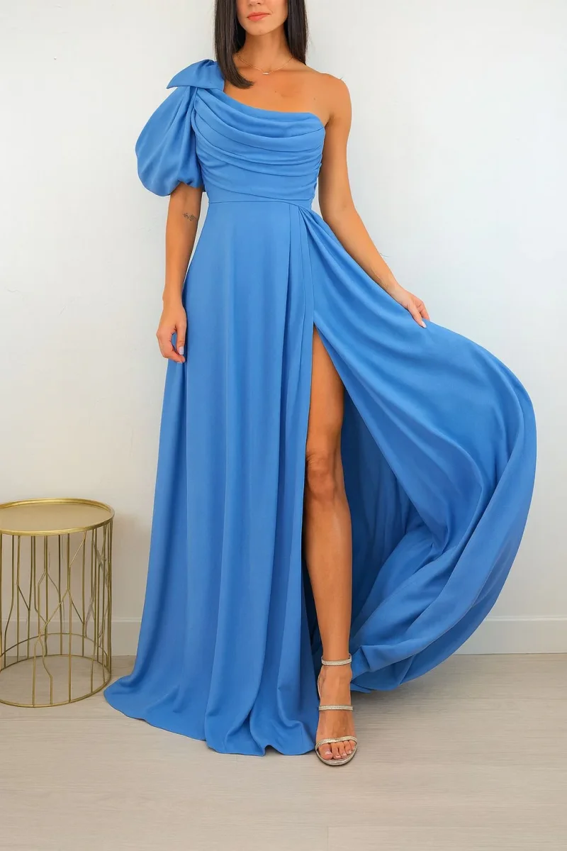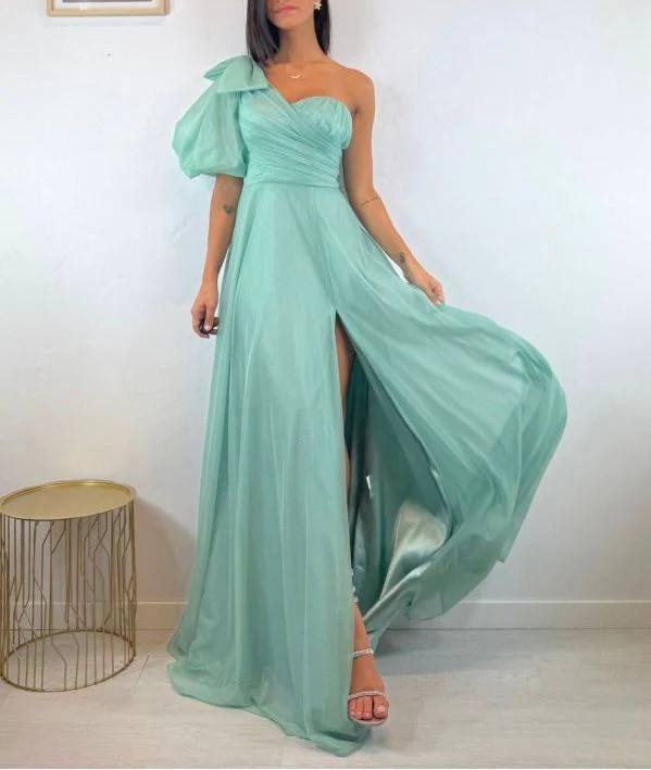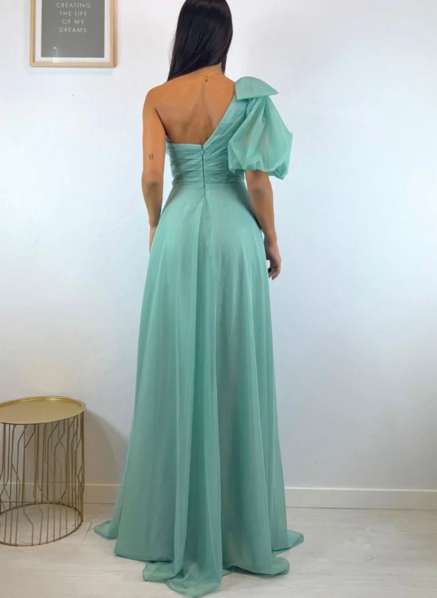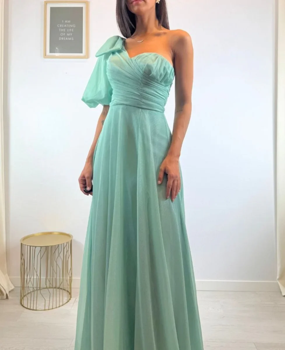 Abito da cerimonia monomanica a sbuffo con fiocco