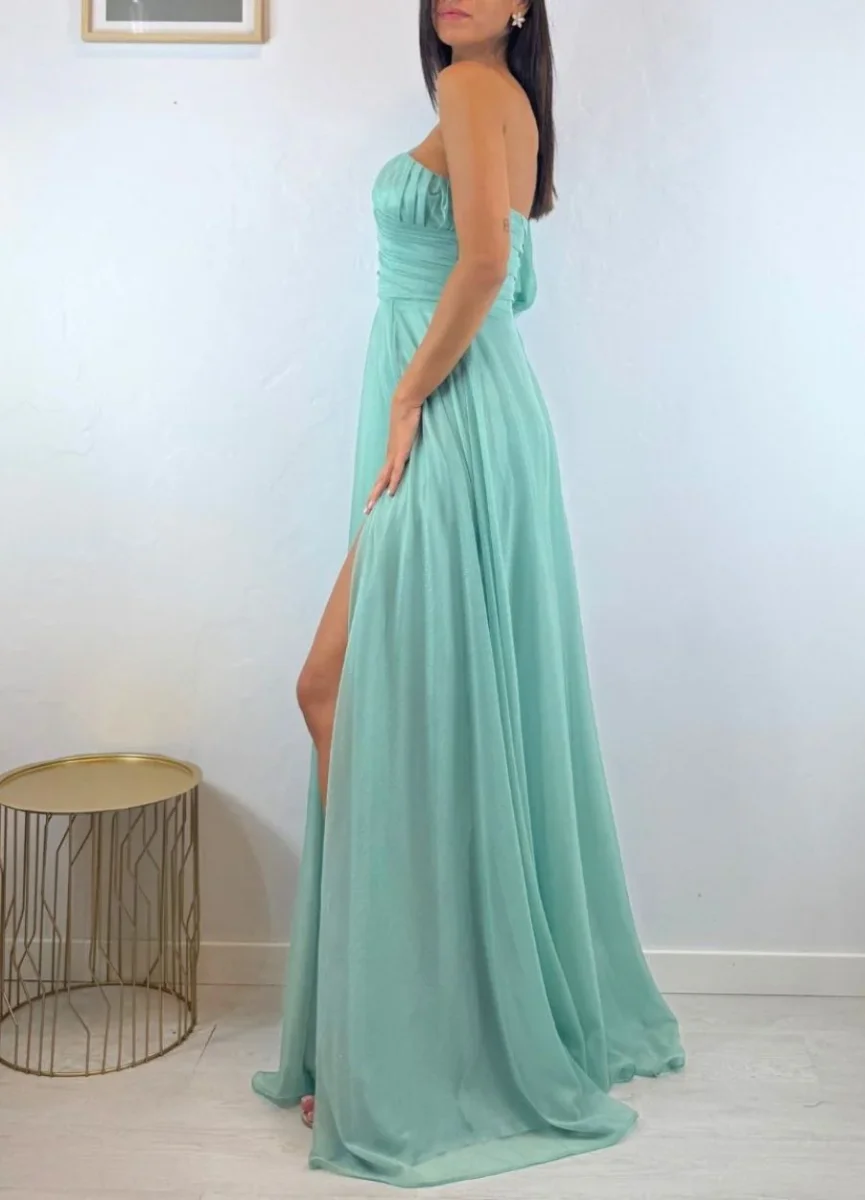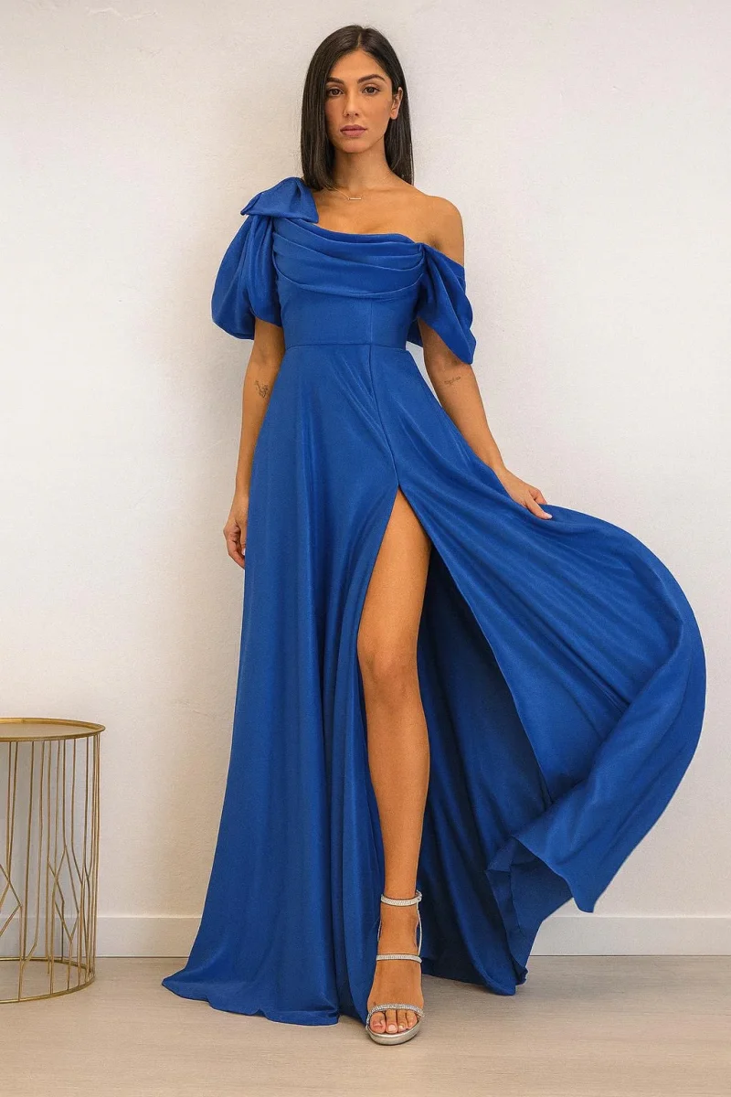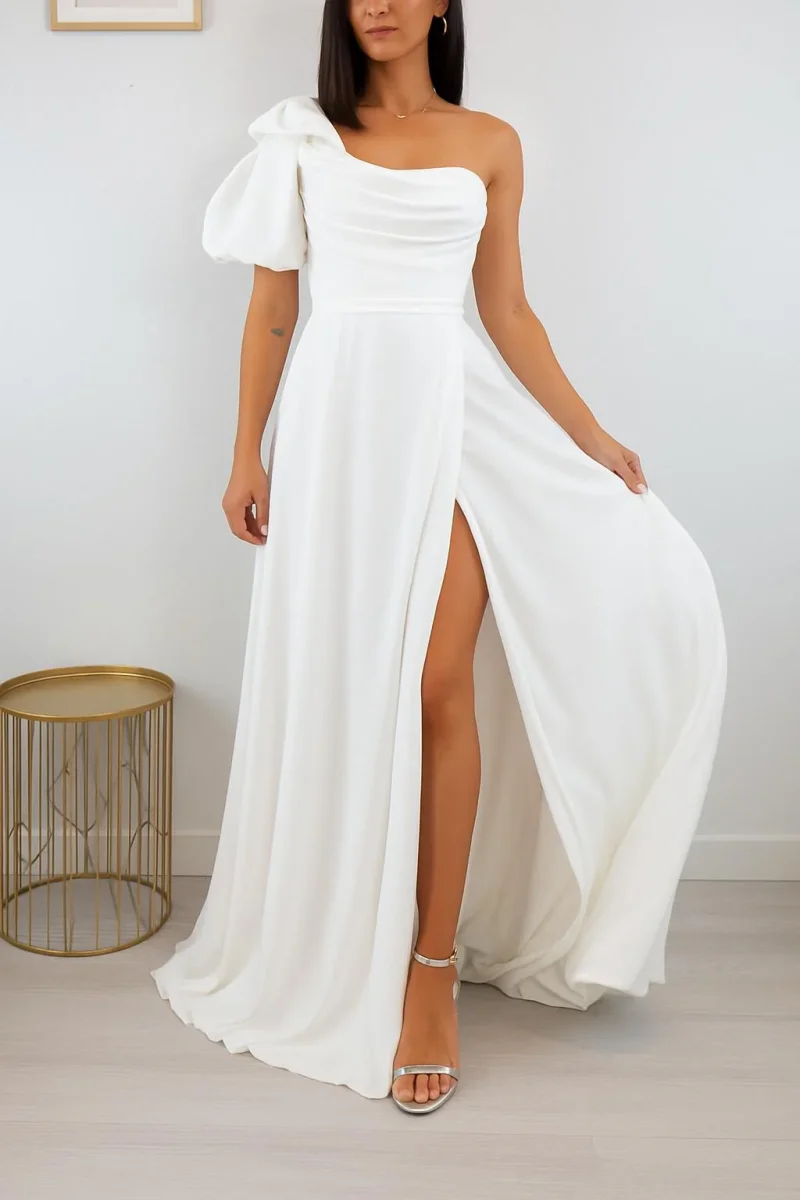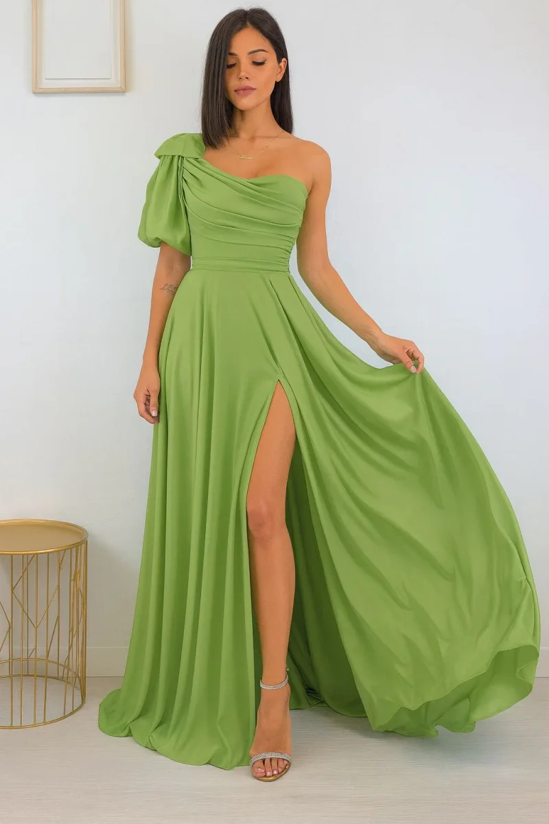Abito da cerimonia monomanica a sbuffo con fiocco