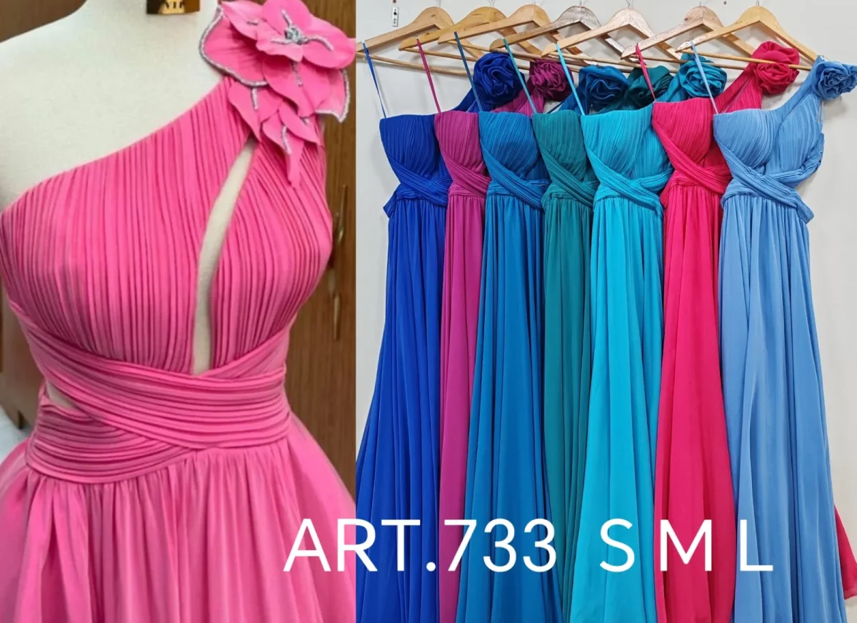 Abito lungo da cerimonia monospalla con rosellina