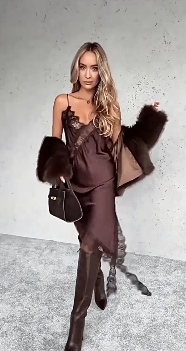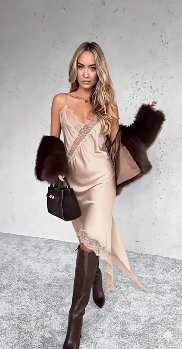 Abito in satin, asimmetrico con orli in pizzo.È un capo che unisce sensualità e comfort grazie alla leggerezza del satin e alla raffinatezza del pizzo.