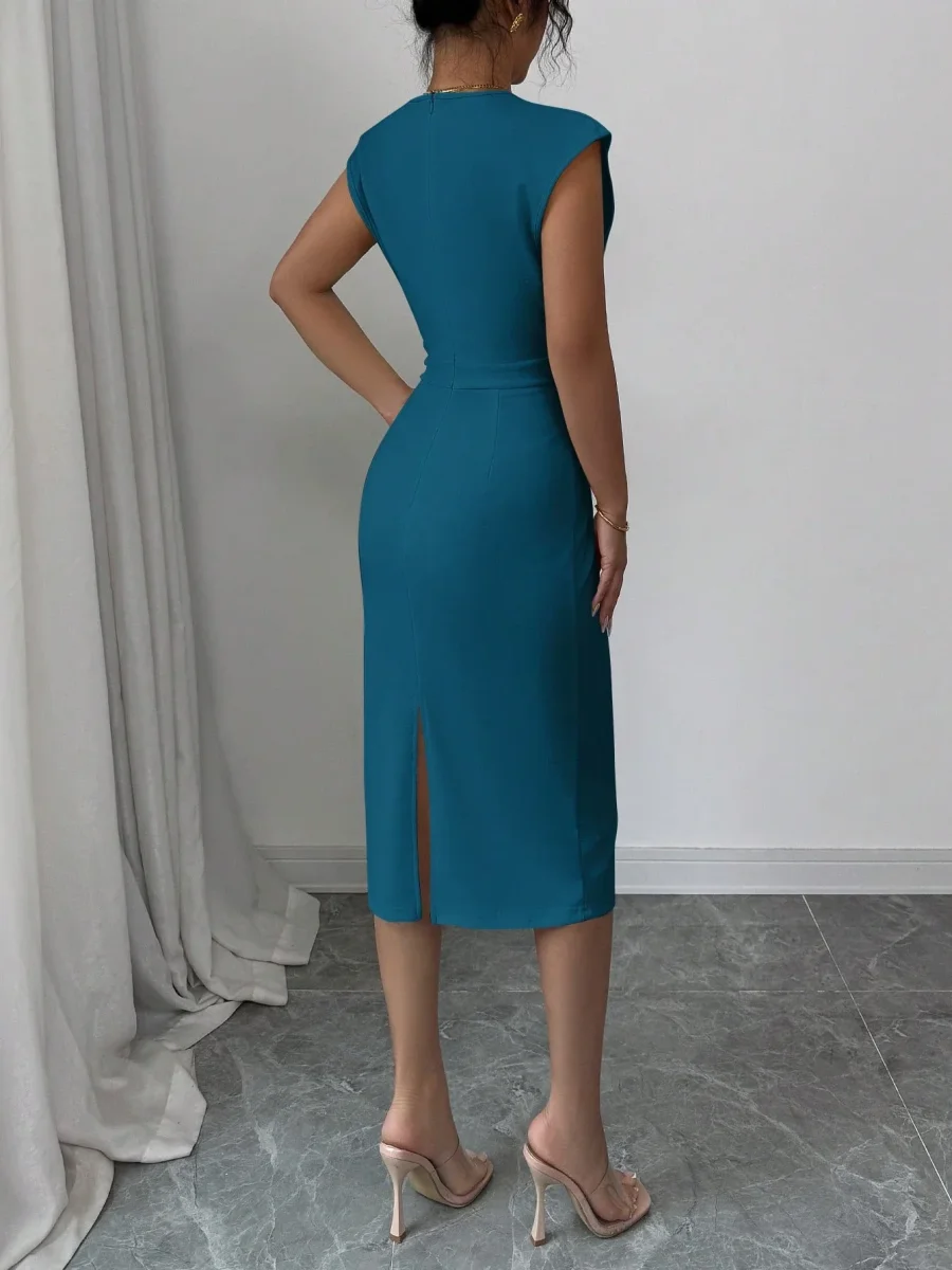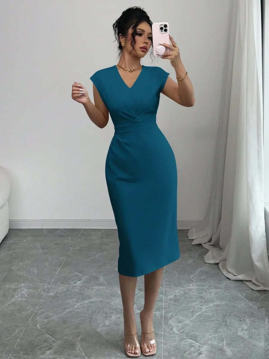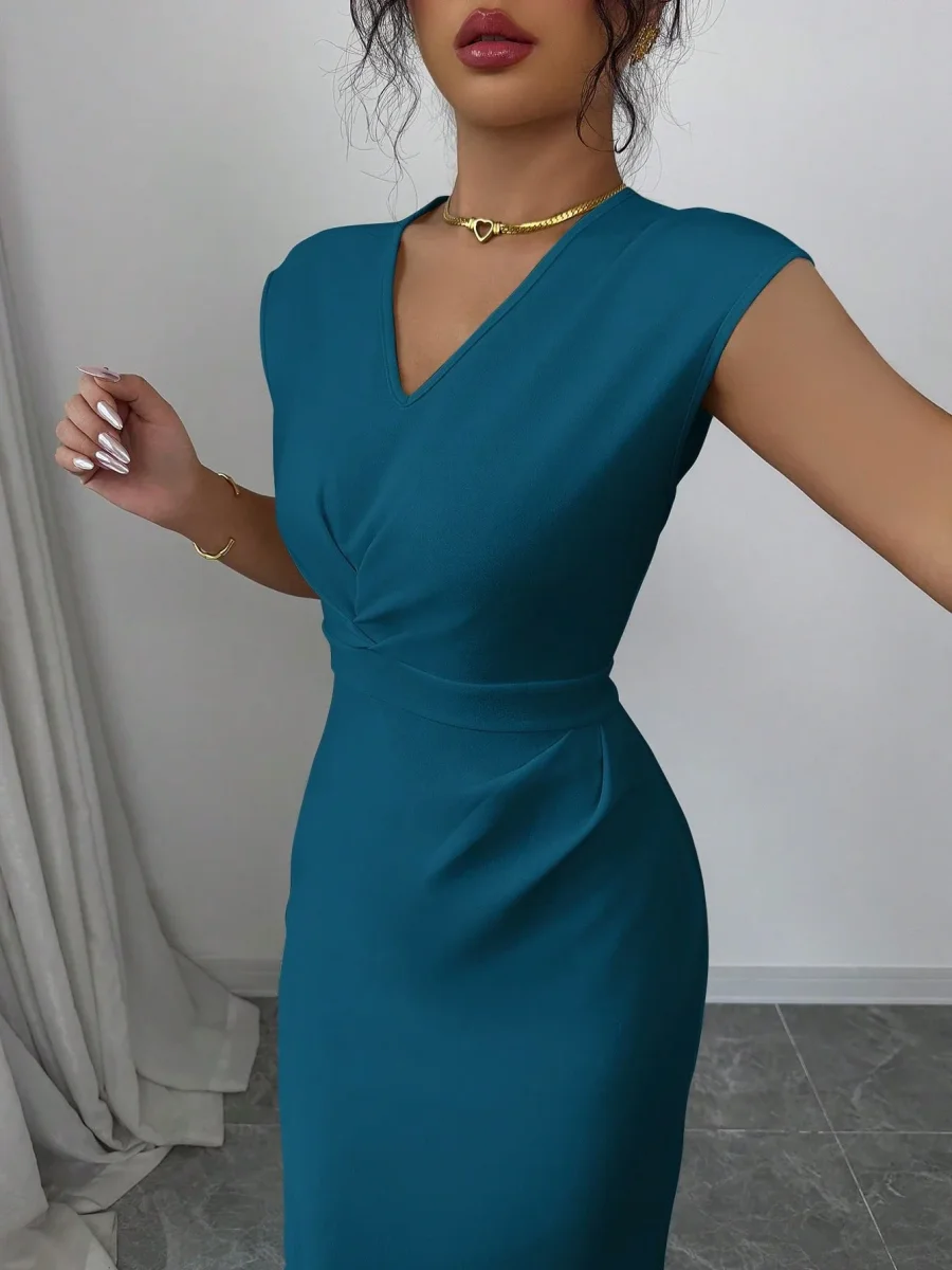 Tipo di manica : PipistrelloLinea vita : Vita altaStile : EleganteFodera : SfoderatoFoderato per un maggiore calore : NonScollatura : Scollatura a VOrlo/ Forma : MatitaTipo : AderenteTipo di motivo : Colore unicoDettaglio : Plissettato, Aperta, avvolgenteColore : Blu verde acquaLunghezza manica : Senza manicheTipo di montaggio : Forma SottileLunghezza : Al ginocchioTessuto : Tessuto in maglia, Abbastanza ElasticizzatoComposizione : 95% Poliestere, 5% ElastaneIstruzioni Lavaggio : Lavaggio in lavatrice o lavaggio a secco professionalesottile : semitrasparente