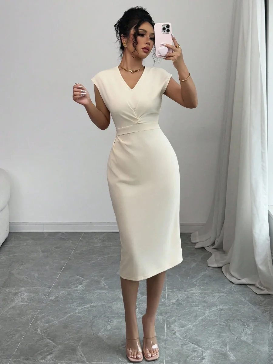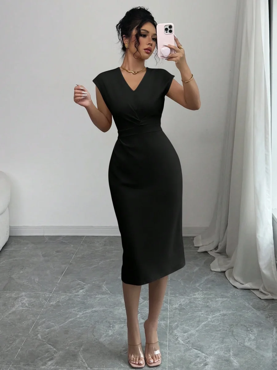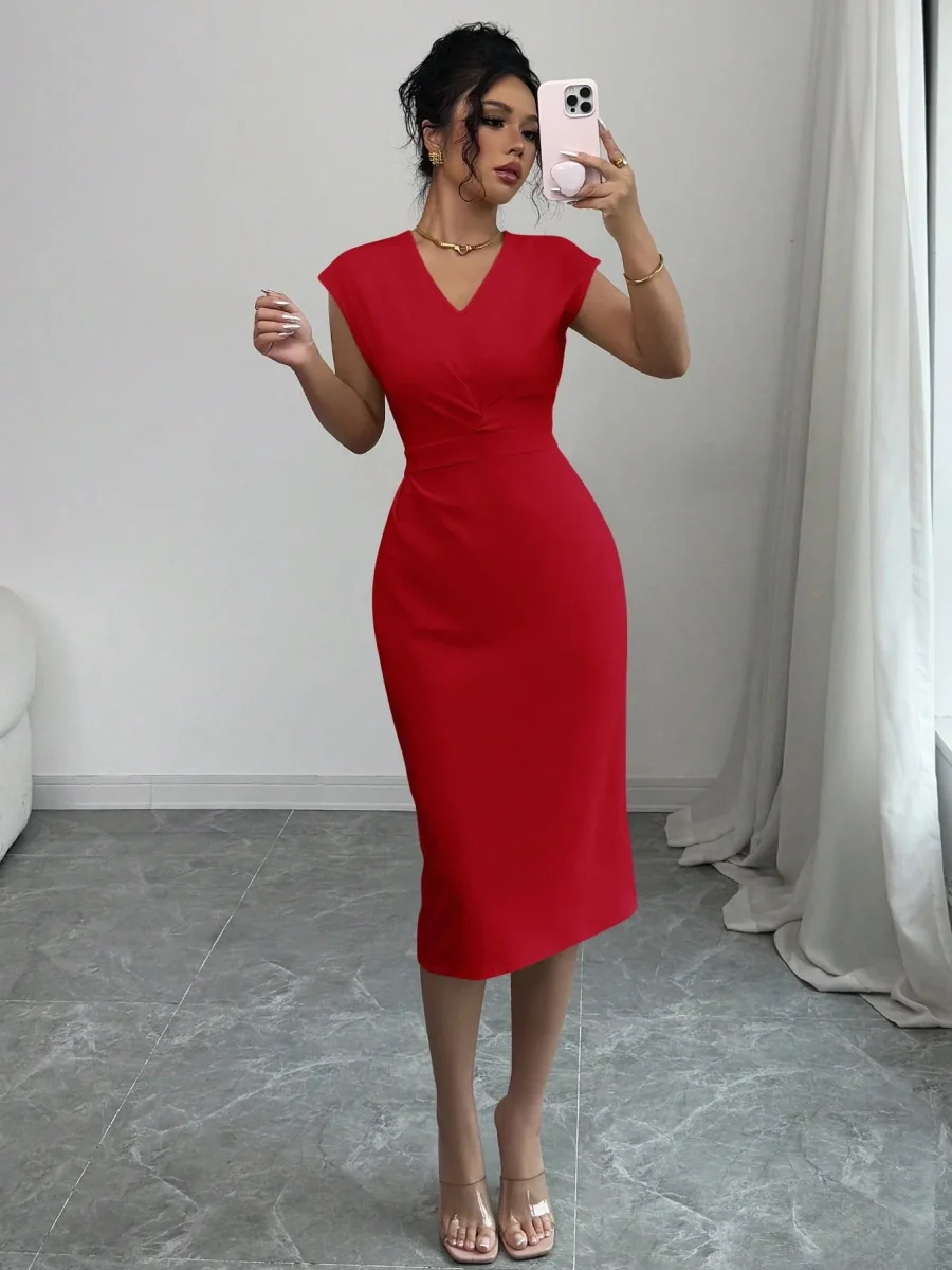Tipo di manica : PipistrelloLinea vita : Vita altaStile : EleganteFodera : SfoderatoFoderato per un maggiore calore : NonScollatura : Scollatura a VOrlo/ Forma : MatitaTipo : AderenteTipo di motivo : Colore unicoDettaglio : Plissettato, Aperta, avvolgenteColore : Blu verde acquaLunghezza manica : Senza manicheTipo di montaggio : Forma SottileLunghezza : Al ginocchioTessuto : Tessuto in maglia, Abbastanza ElasticizzatoComposizione : 95% Poliestere, 5% ElastaneIstruzioni Lavaggio : Lavaggio in lavatrice o lavaggio a secco professionalesottile : semitrasparente