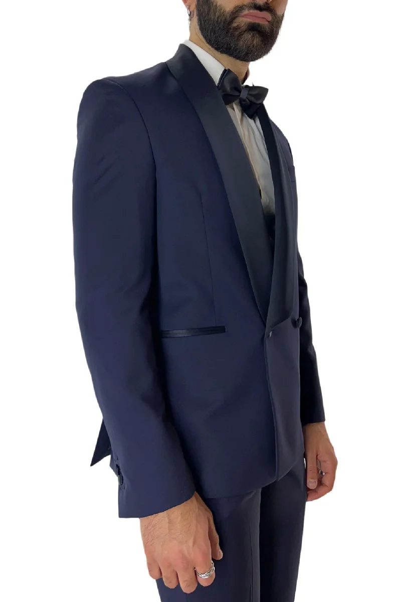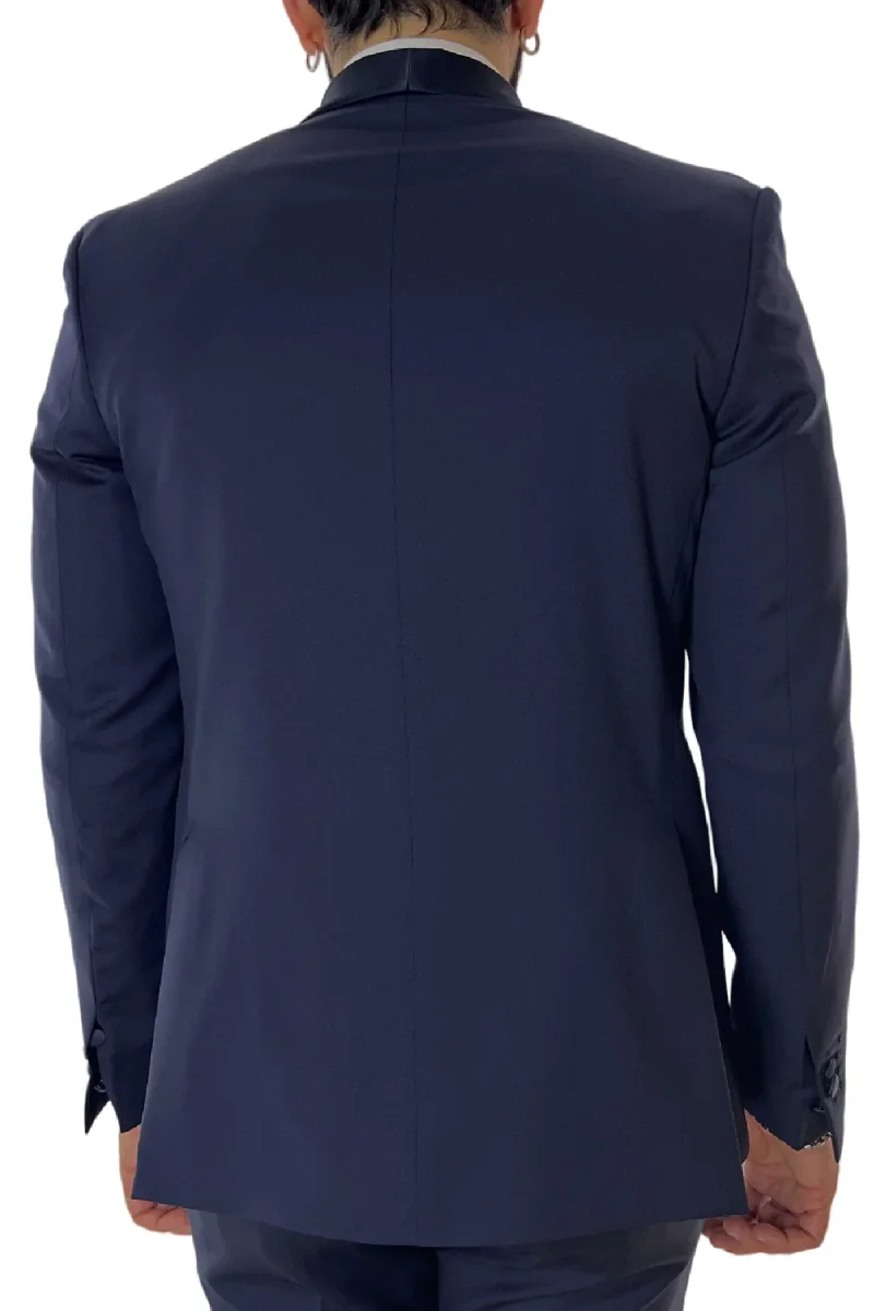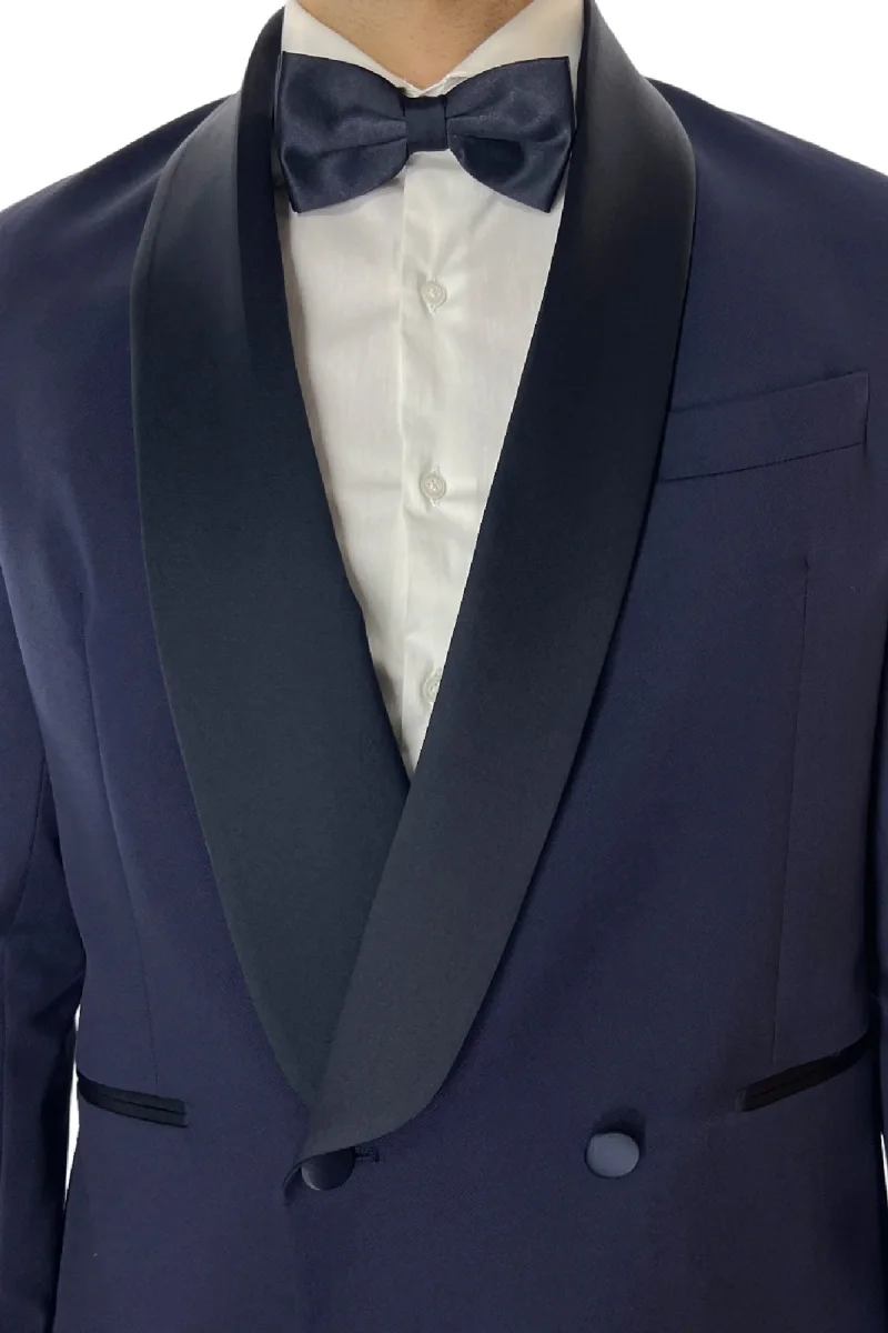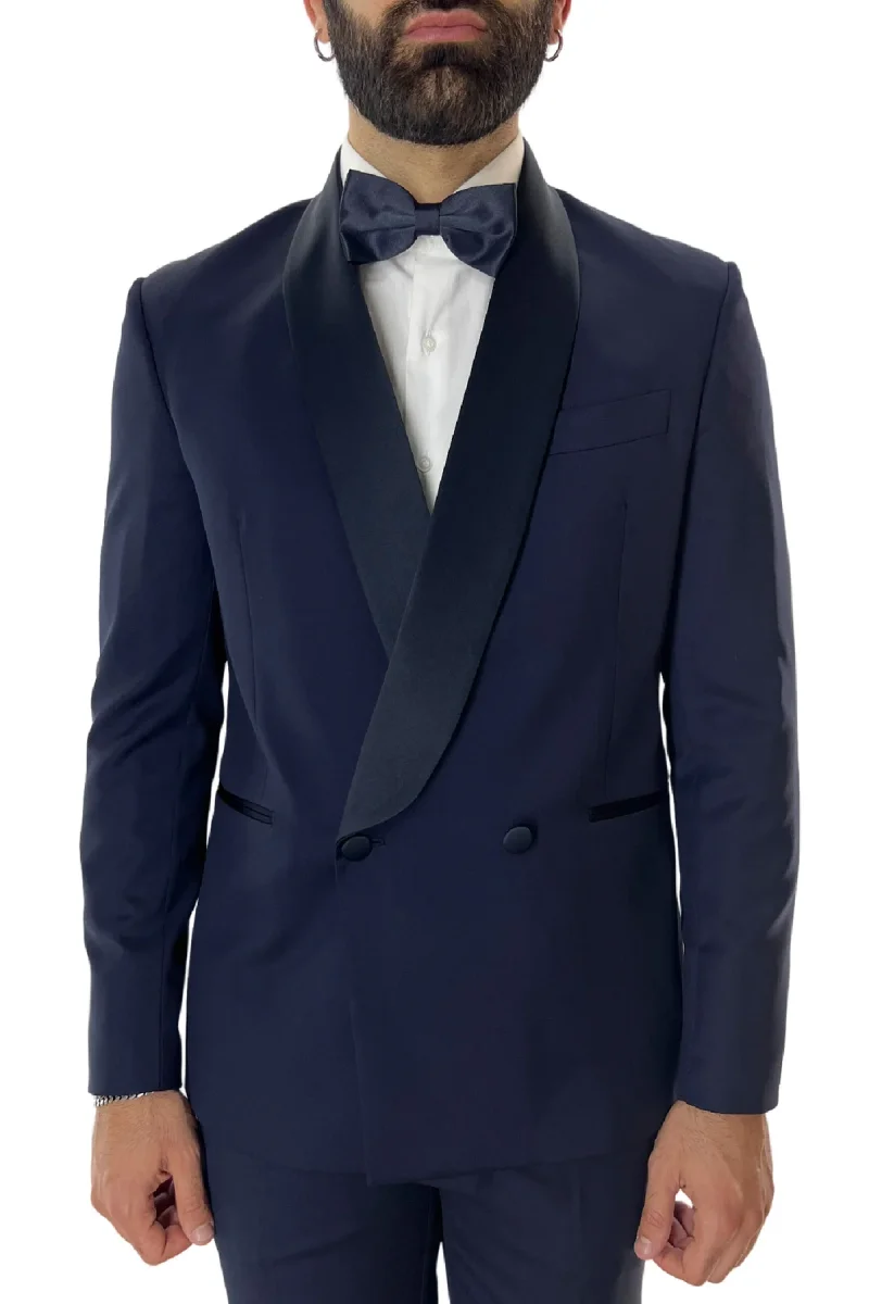 La Giacca smoking da uomo Doppiopetto navy blu rever a scielle blu in fresco lana 100% Vitale Barberis Canonico della linea di SARTORIA CARILLO e ormai per i nostri clienti sinonimo di garanzia e qualita. Questo modello, viene scelto da una tipologia di persone che amano vestire bene e nello stesso tempo scelgono la comodita. Infatti grazie alle caratteristiche del tessuto morbido permette a chi la indossa di scegliere la sua misura perfetta e non preoccuparsi delle limitazioni dei movimenti nonostante la sua vestibilita slim.