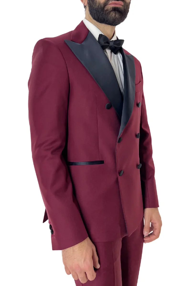 Abito smoking da uomo Doppiopetto bordeaux