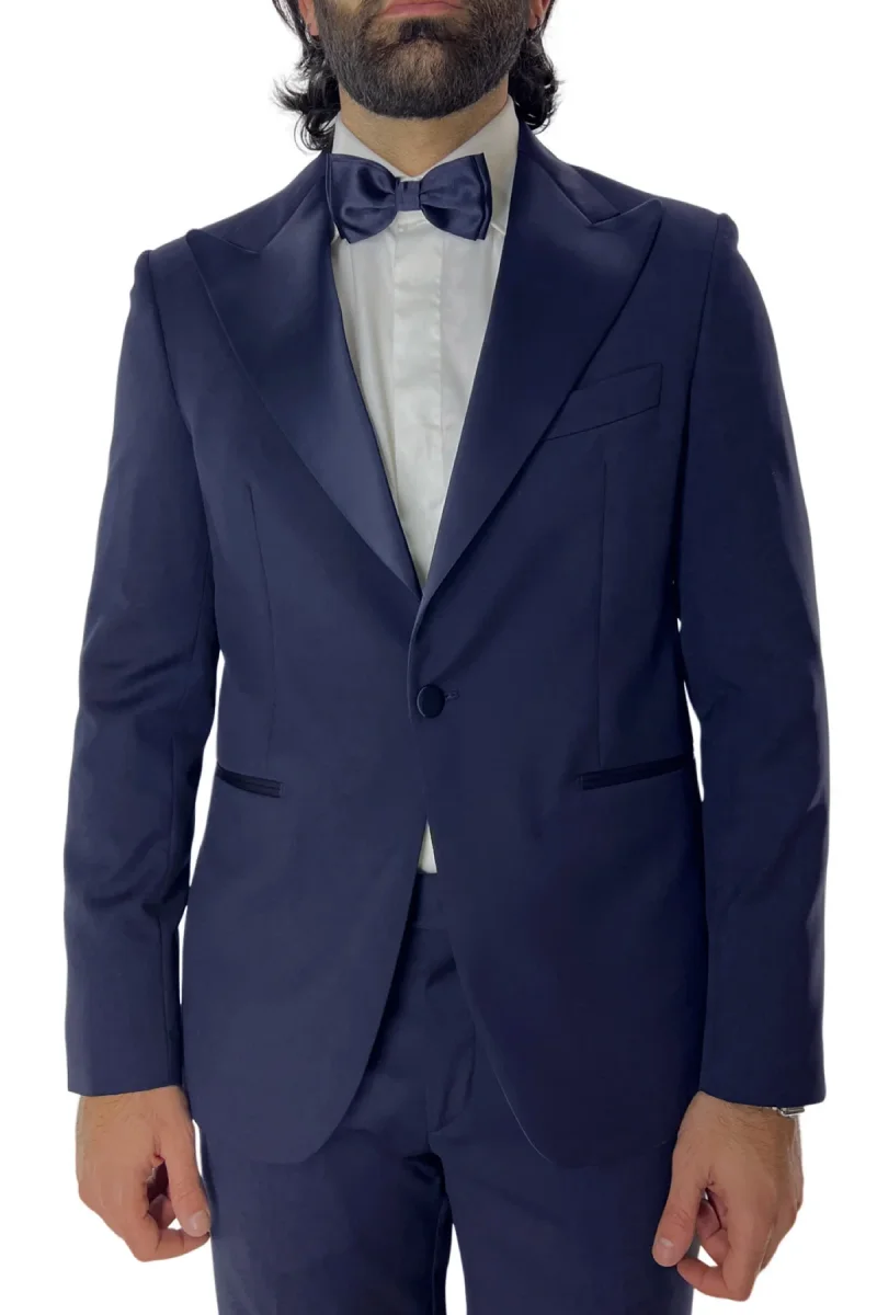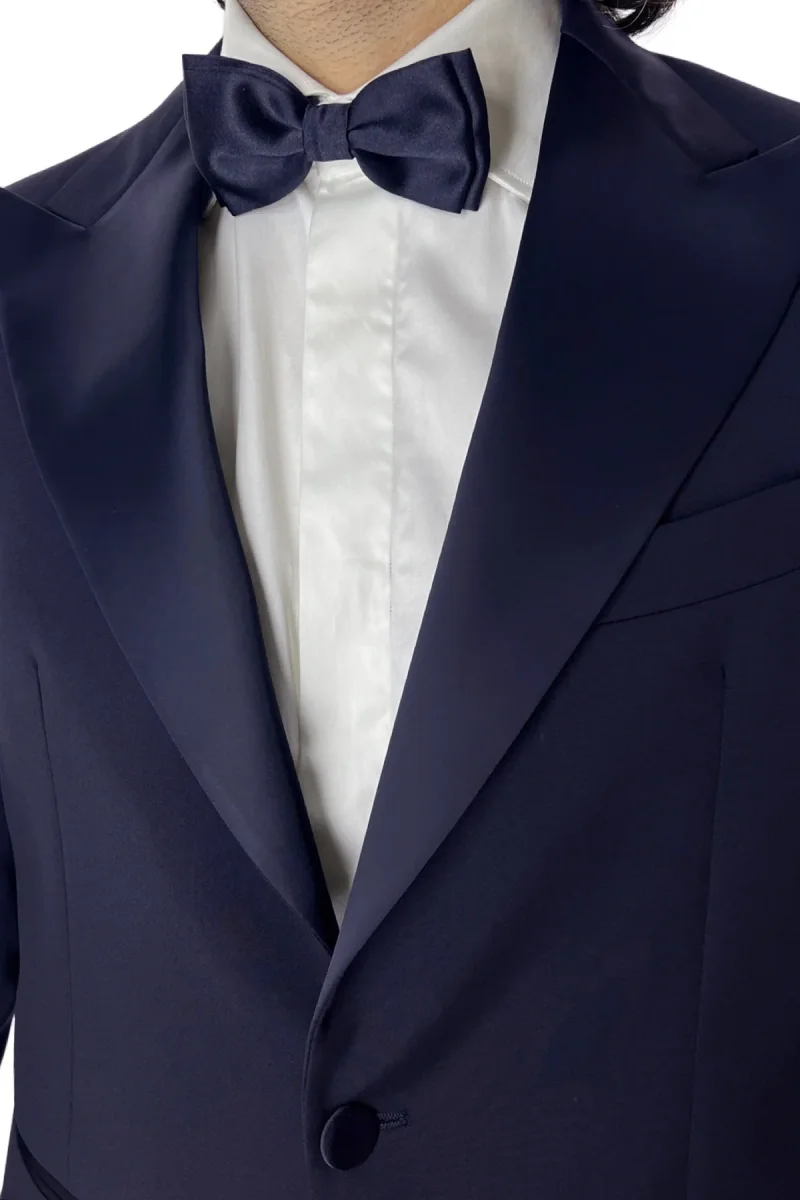 La Giacca smoking da uomo monopetto navy blu rever a Lancia blu in fresco lana 100% Vitale Barberis Canonico della linea di SARTORIA CARILLO e ormai per i nostri clienti sinonimo di garanzia e qualita. Questo modello, viene scelto da una tipologia di persone che amano vestire bene e nello stesso tempo scelgono la comodita. Infatti grazie alle caratteristiche del tessuto morbido permette a chi la indossa di scegliere la sua misura perfetta e non preoccuparsi delle limitazioni dei movimenti nonostante la sua vestibilita slim.
