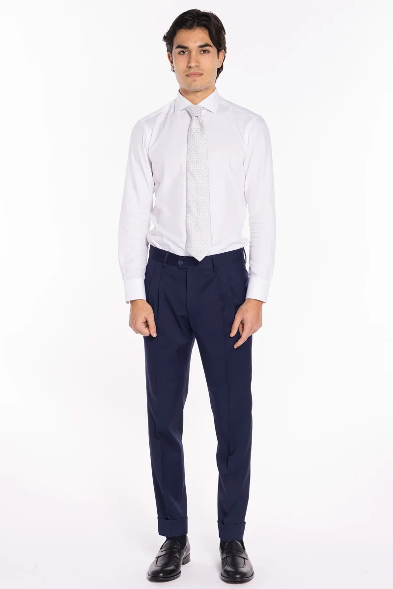 Recensisci per primo “Abito smoking doppiopetto blu royal da uomo in fresco lana super 130’s Vitale Barberis Canonico con rever a Lancia largo in raso con pantalone doppia pinces”