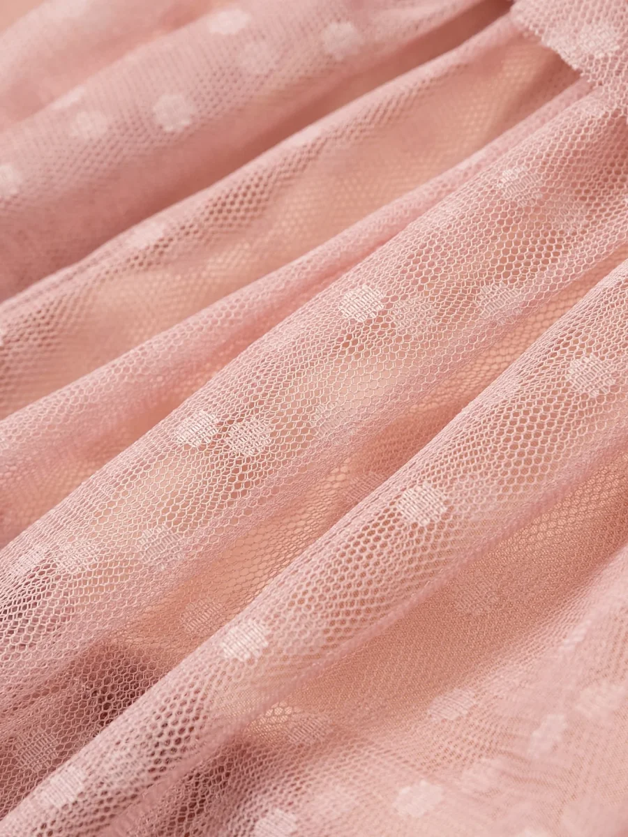 Abito tulle a pois con bordo a volant orlo a strati con cintura