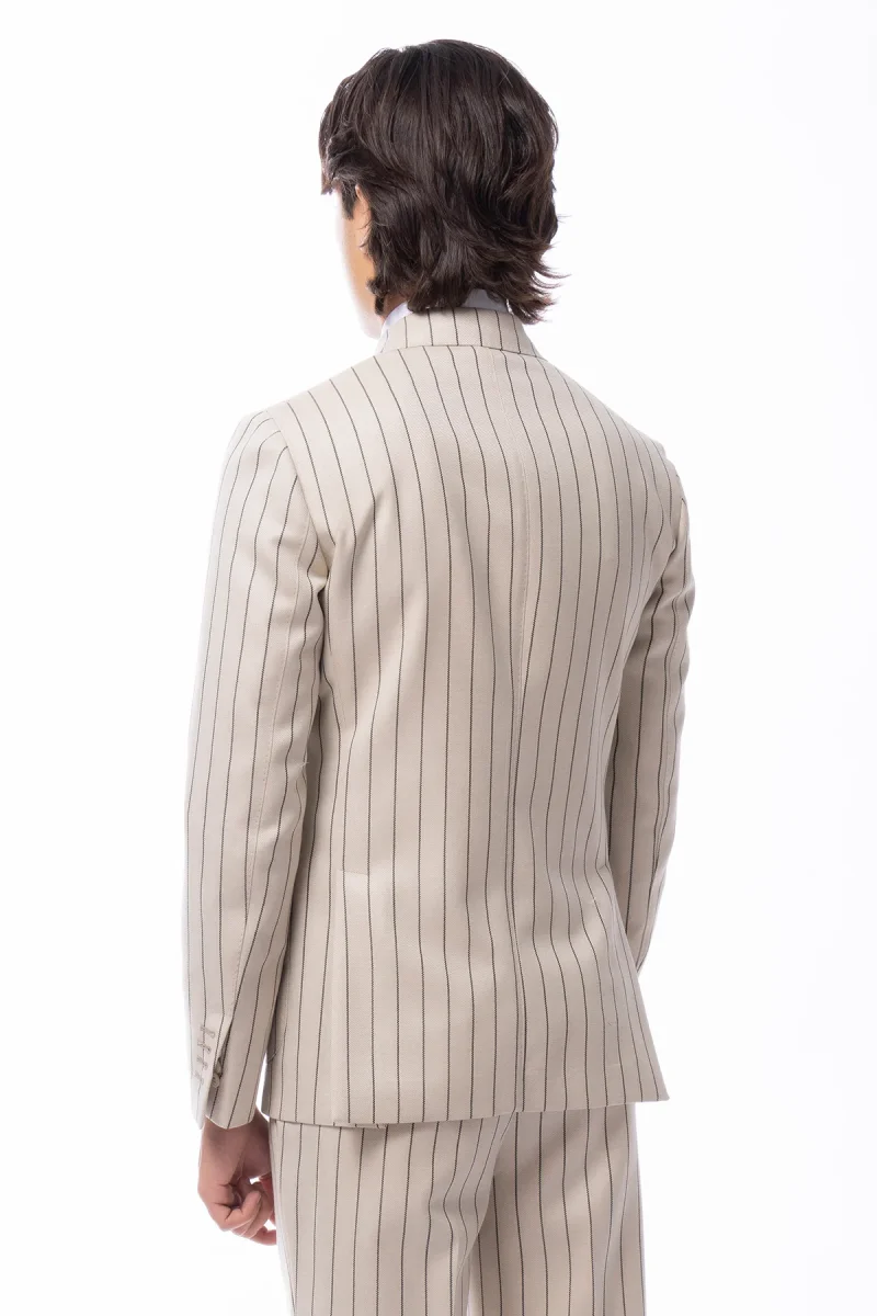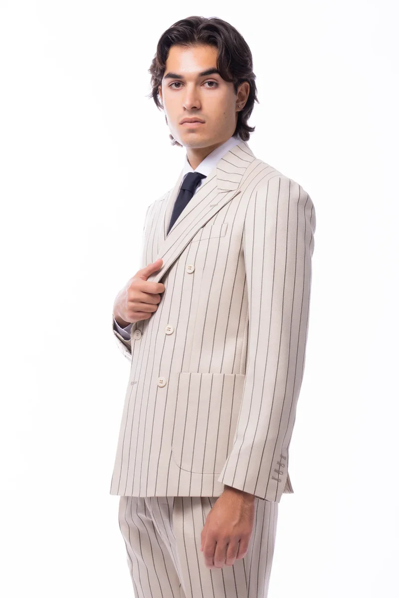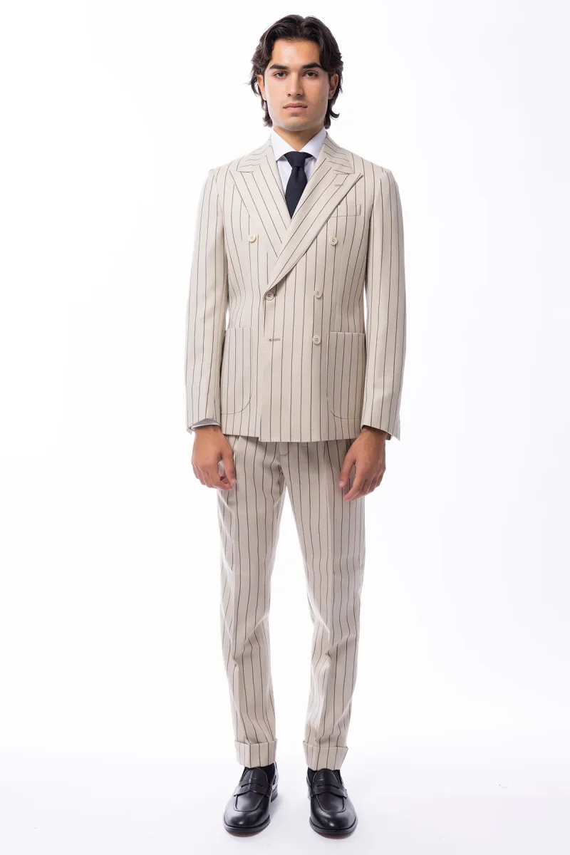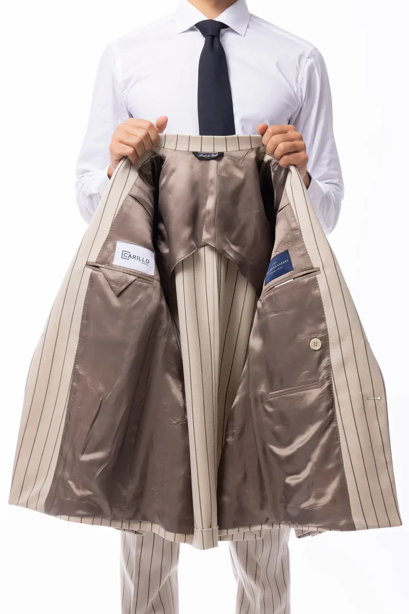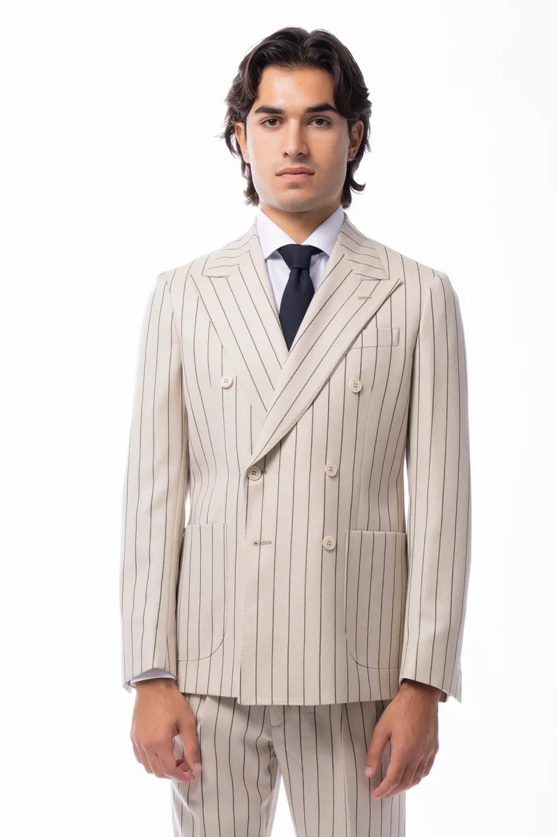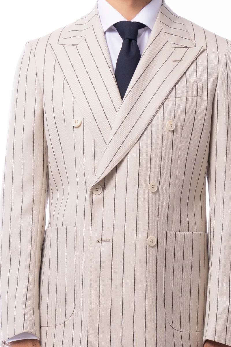 Giacca uomo Doppiopetto beige gessata nera in in lana flanella Holland & Sherry slim fit rever largo
