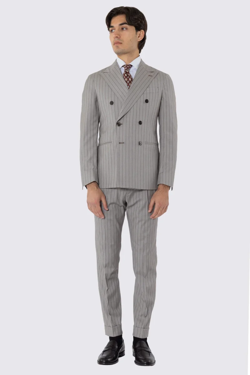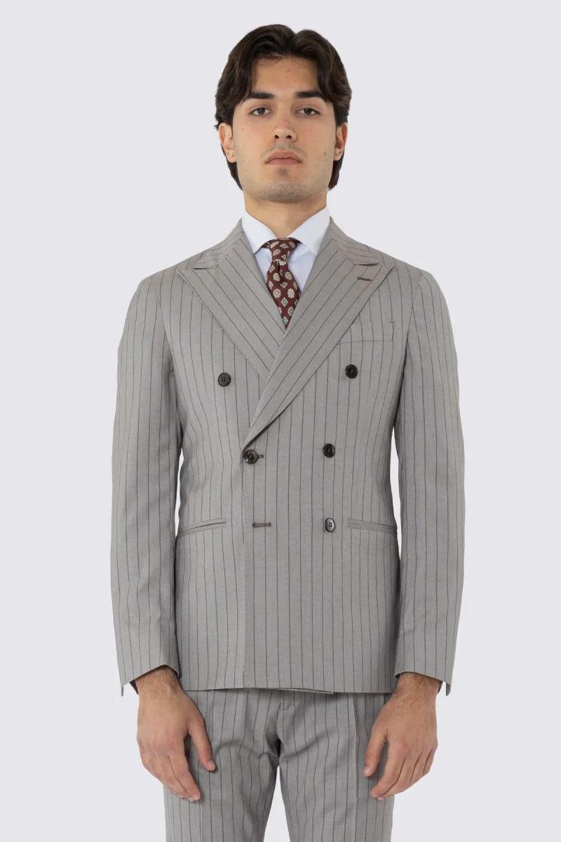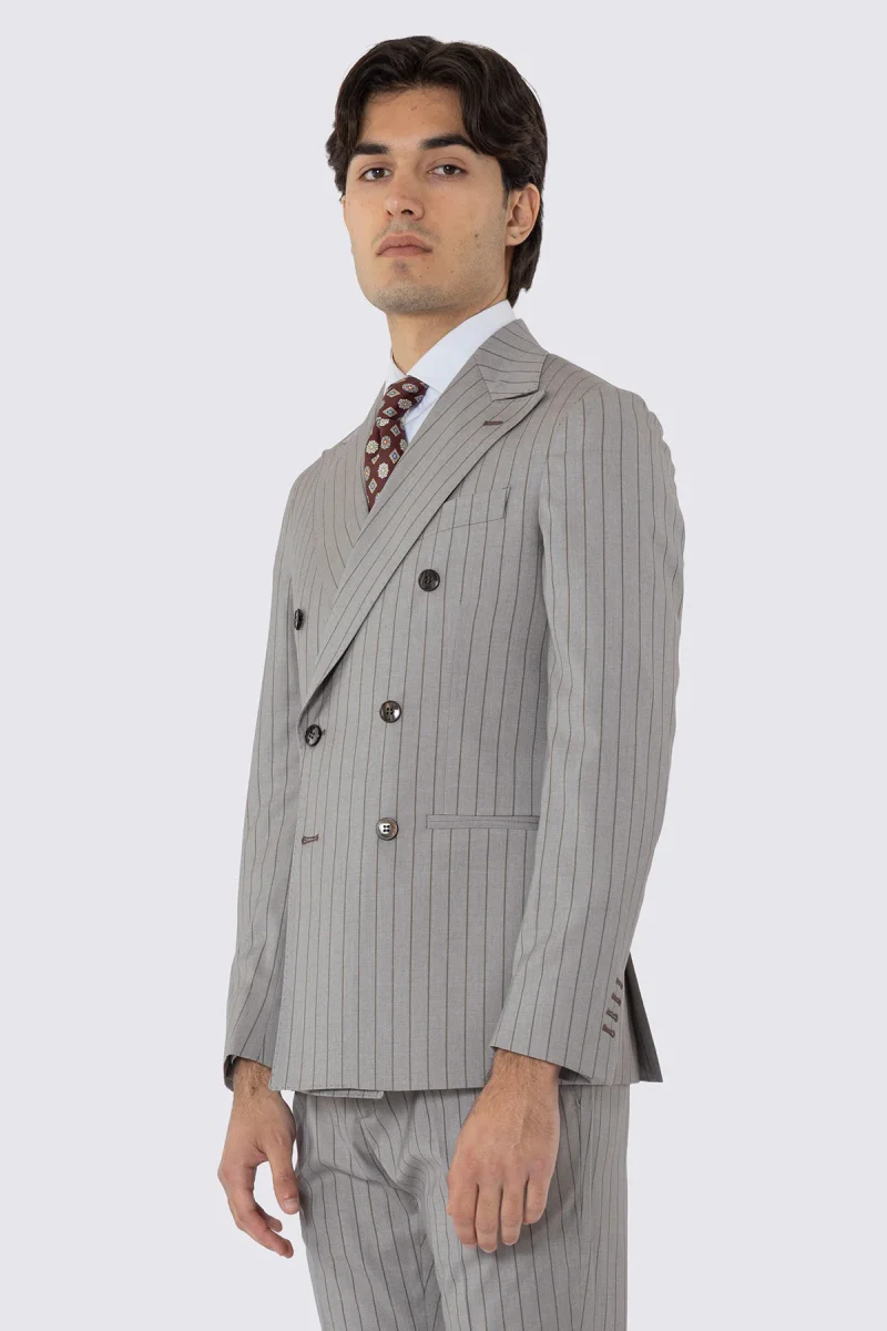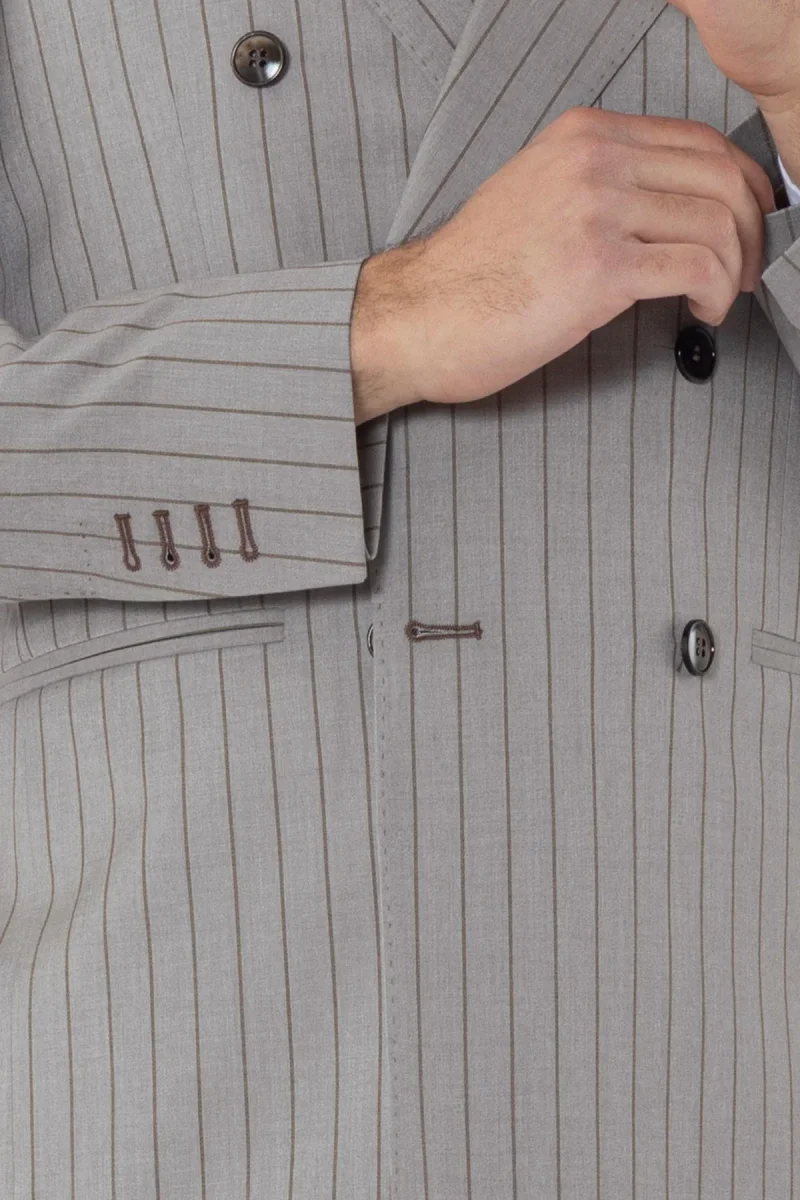 ABITO UOMO DOPPIOPETTO BEIGE GESSATA MARRONE REVER A LANCIA 13CM TASCHE A FILO