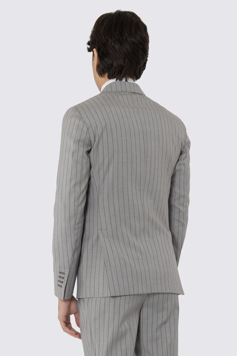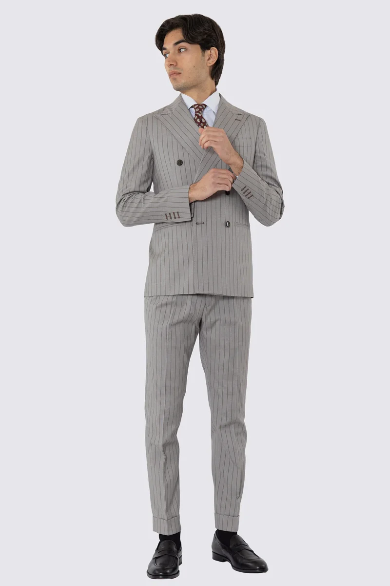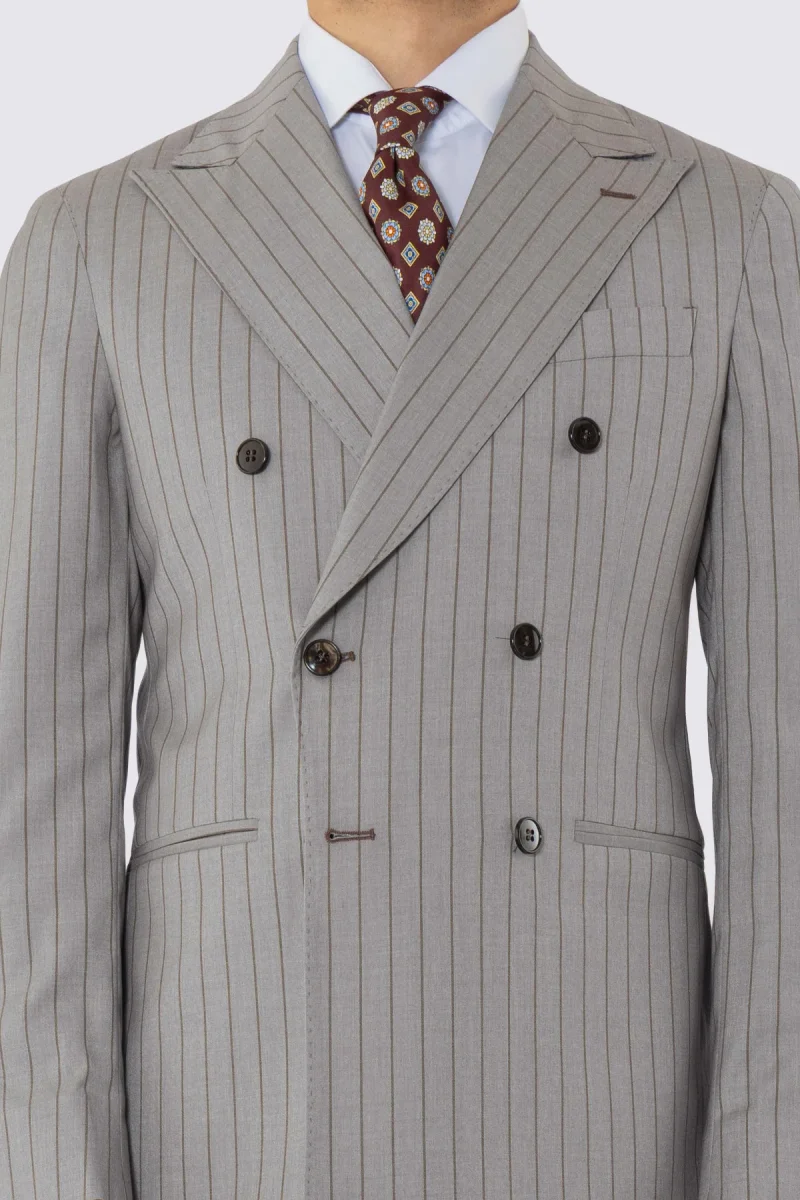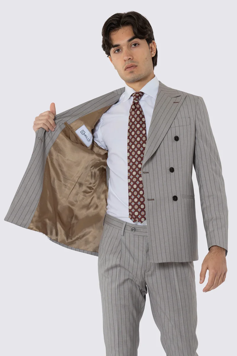 ABITO UOMO DOPPIOPETTO BEIGE GESSATA MARRONE REVER A LANCIA 13CM TASCHE A FILO