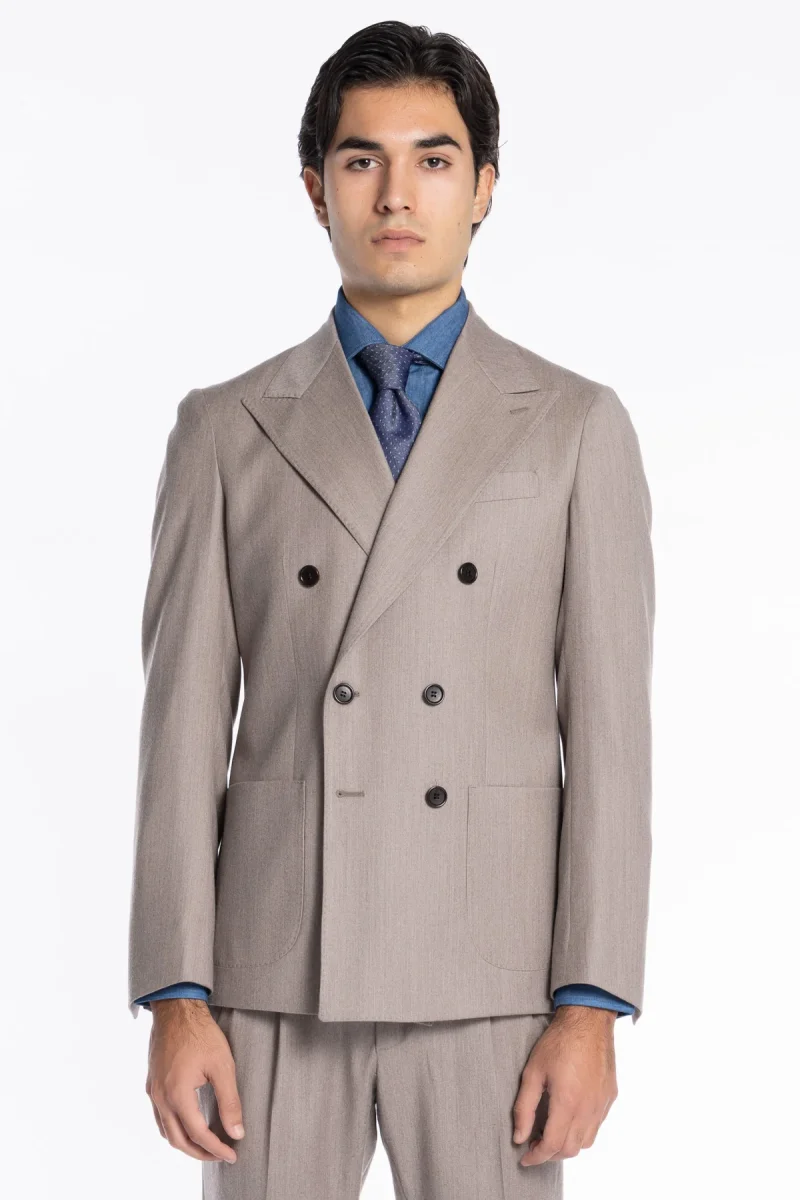 ABITO UOMO DOPPIOPETTO BEIGE IN LANA E CASHMERE REVER A LANCIA BRISTOL TESSUTI NAPOLI