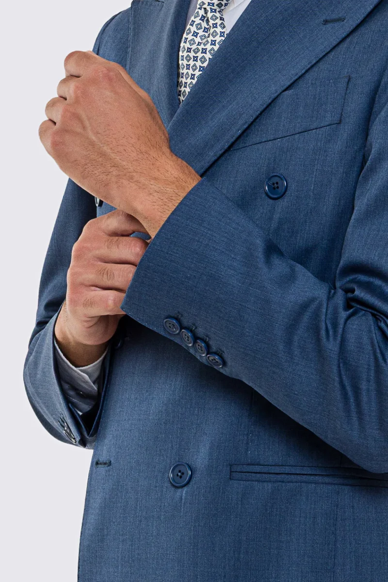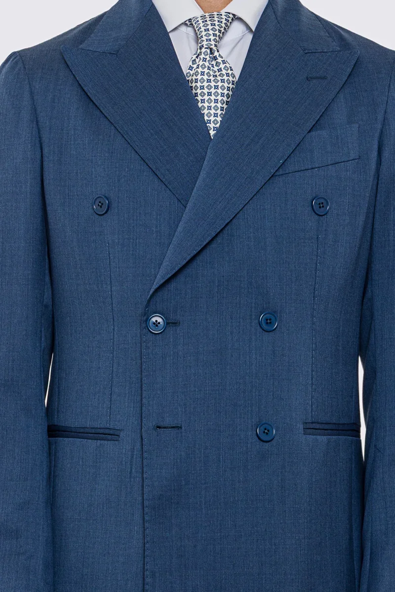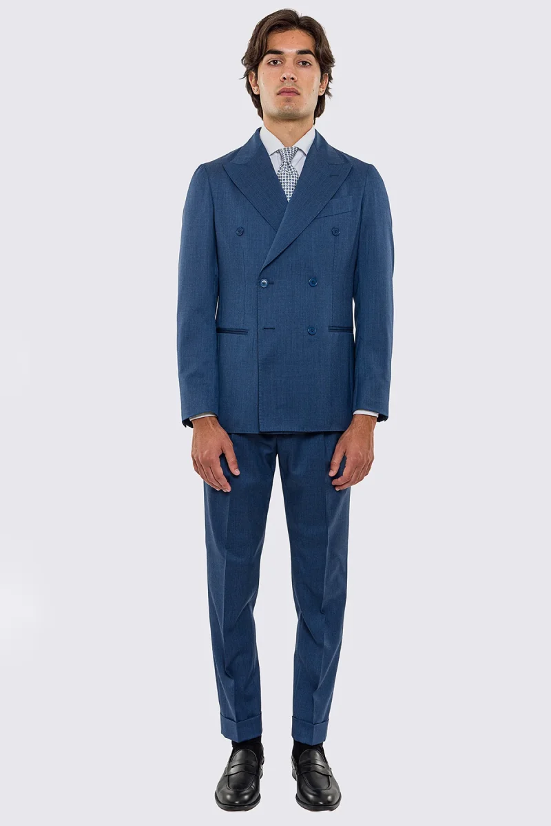 Abito uomo doppiopetto Denim fresco lana super 130’s Vitale Barberis Canonico sfoderata Rever a lancia tasche a filo