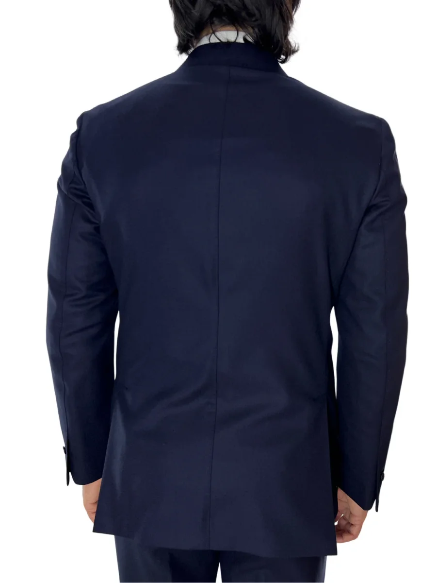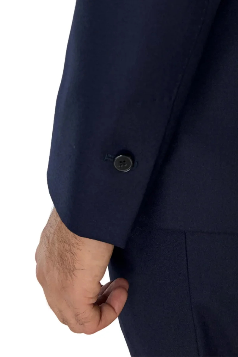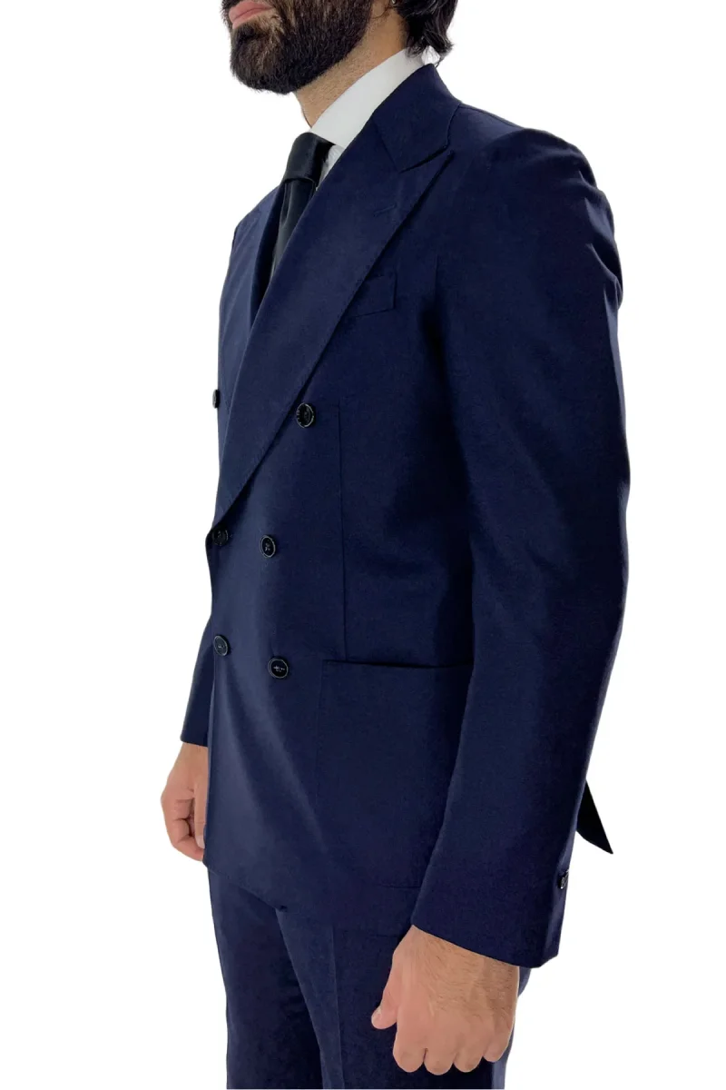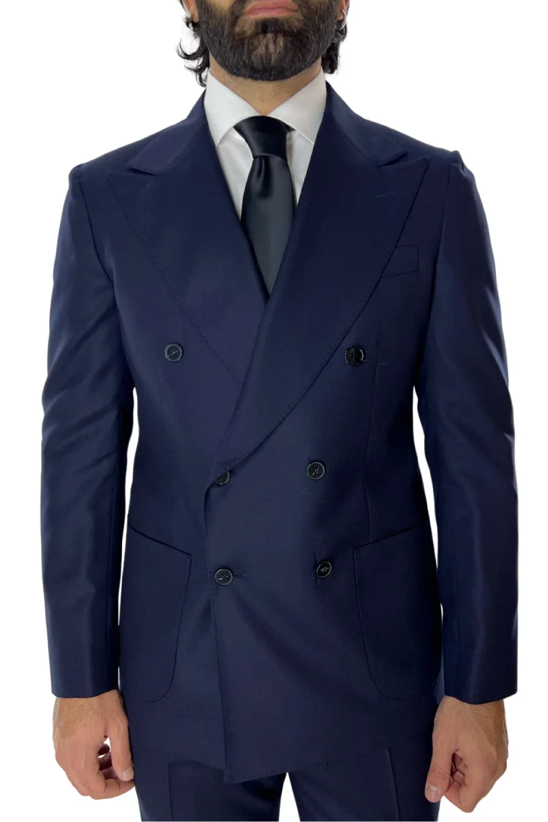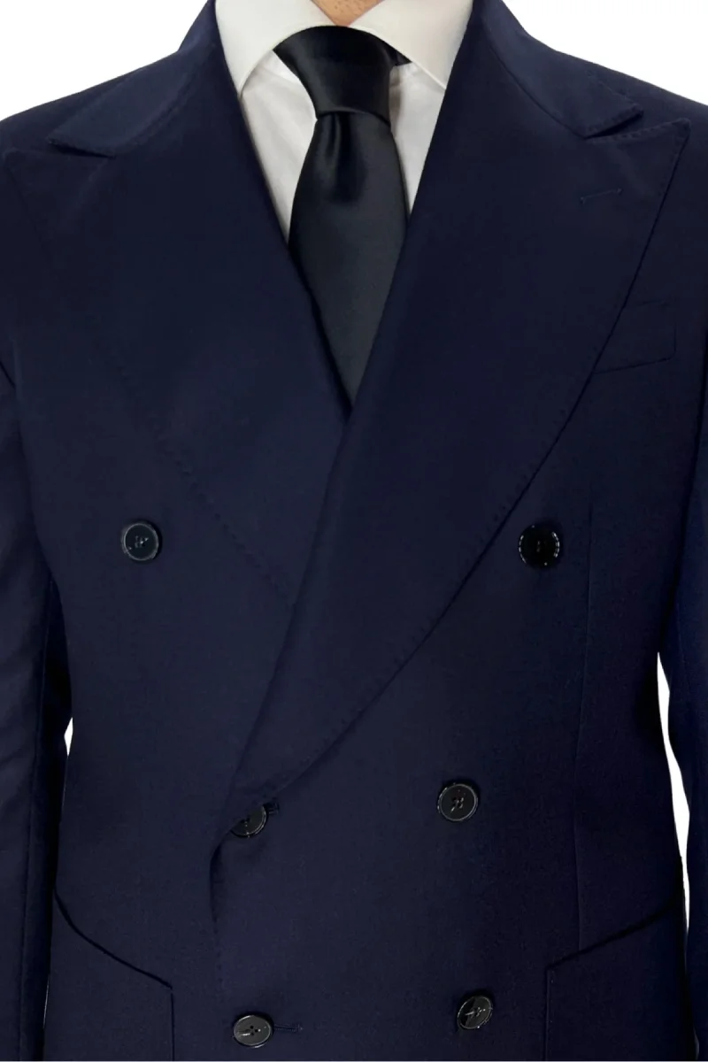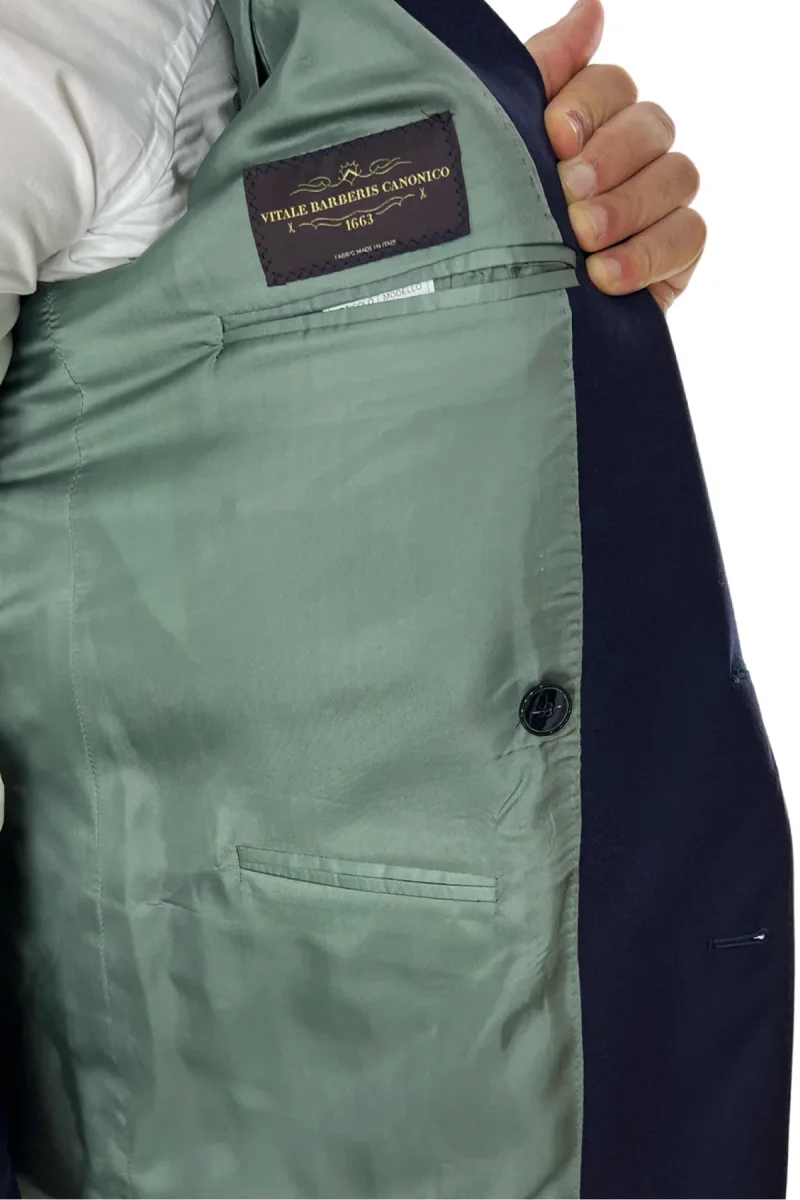 Abito uomo Doppiopetto navy blu in lana Flanella Vitale Barberis Canonico slim fit rever largo sartoriale