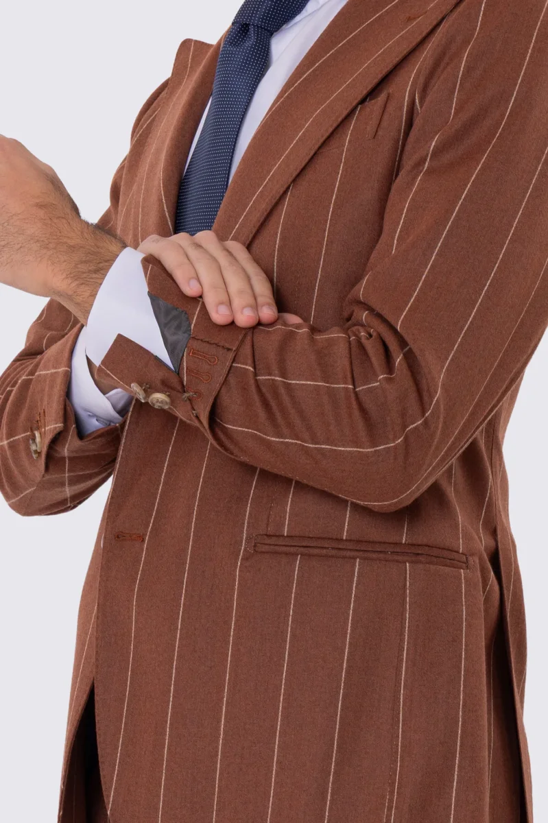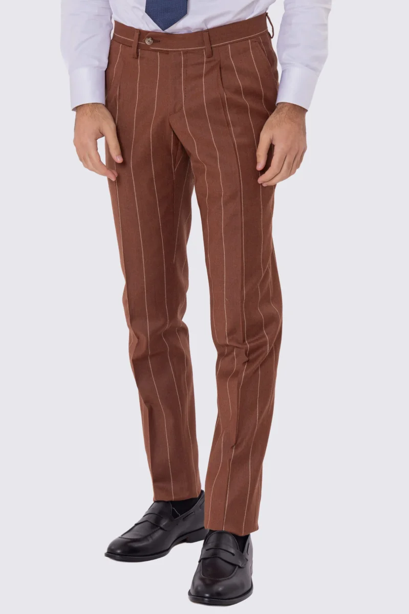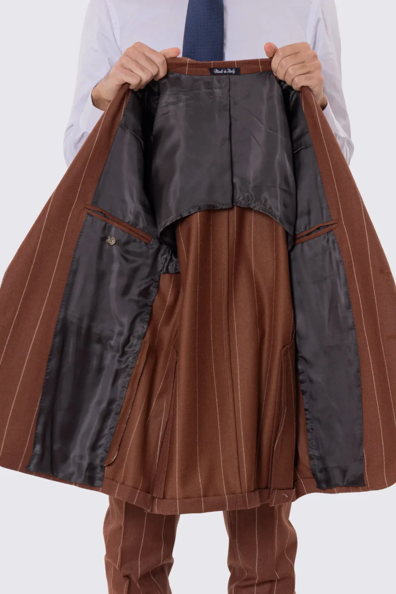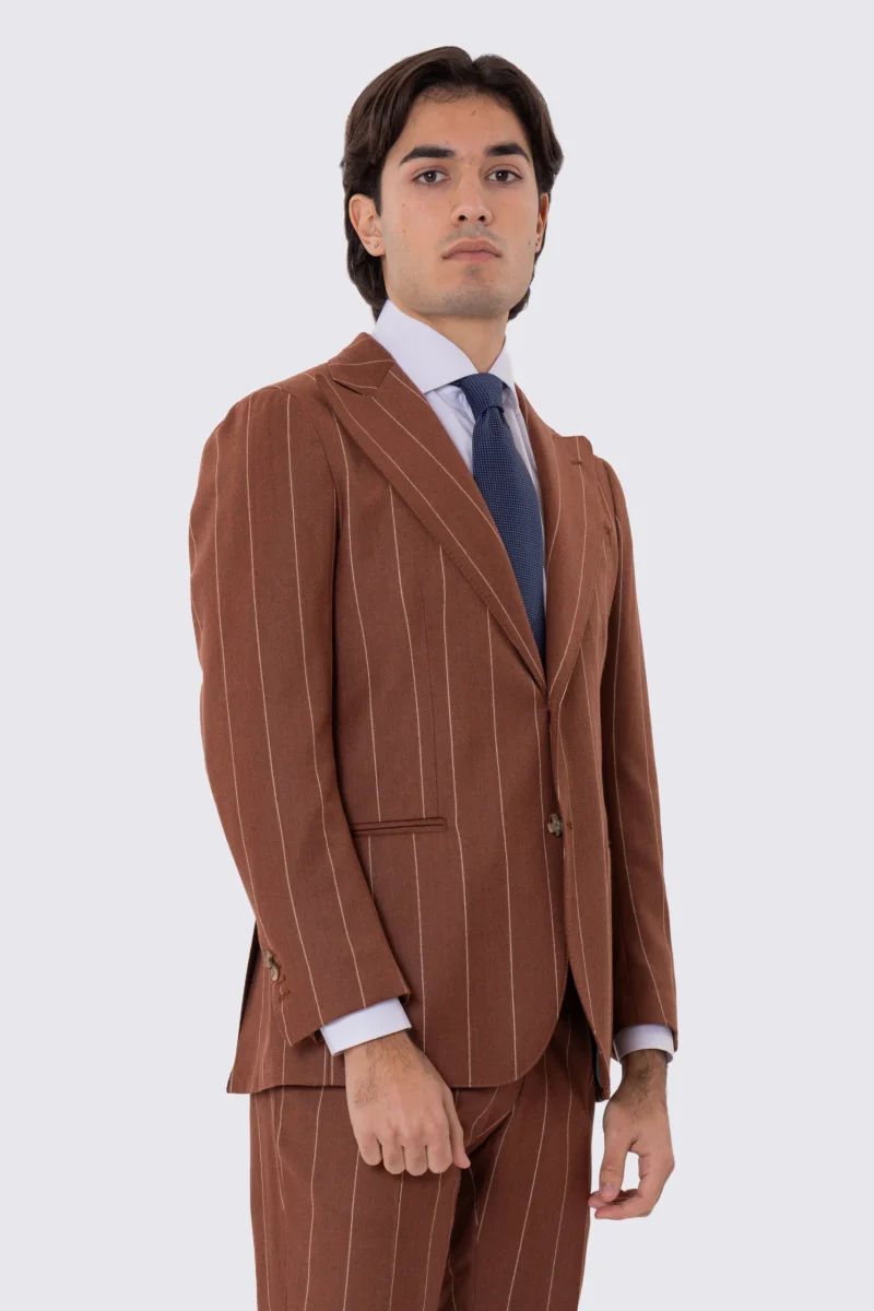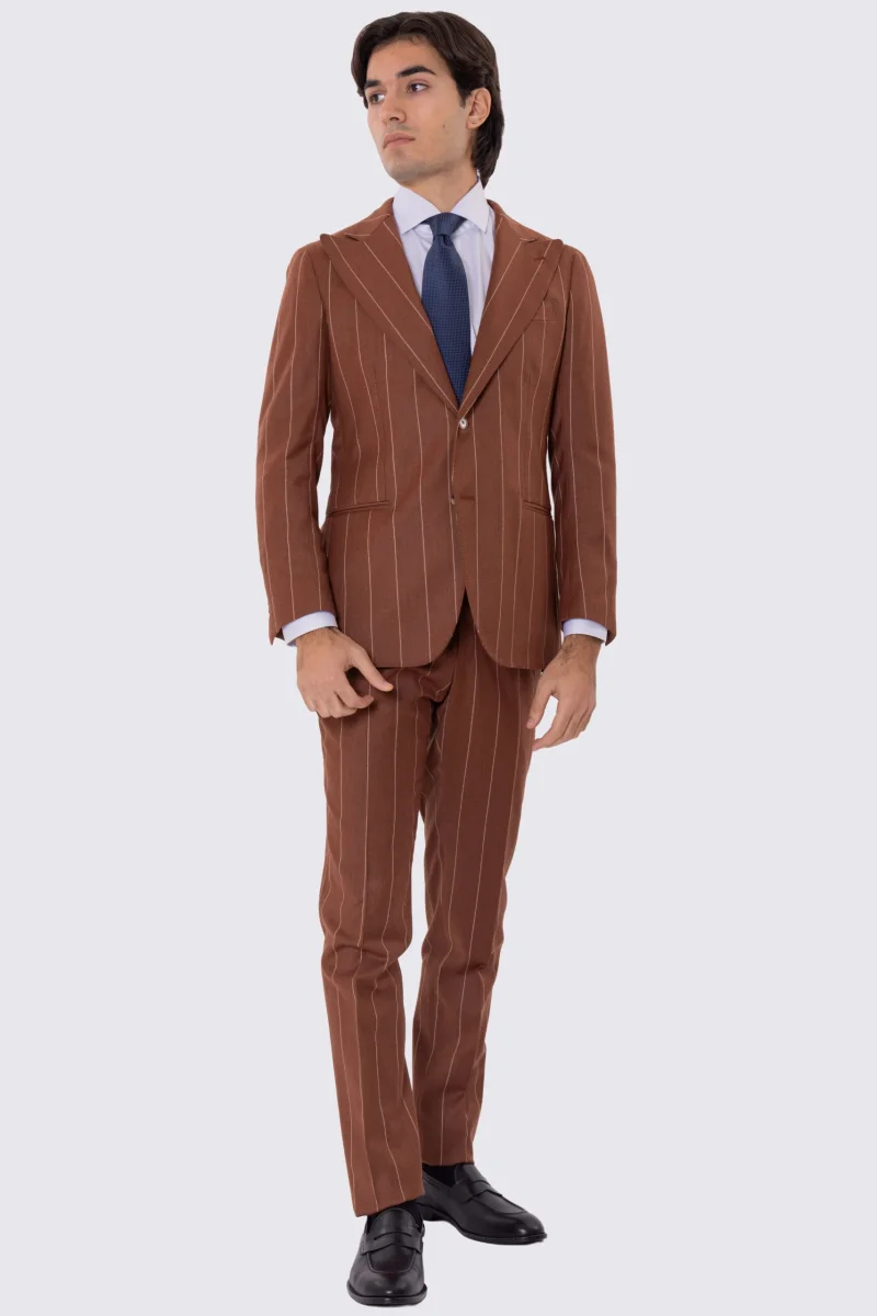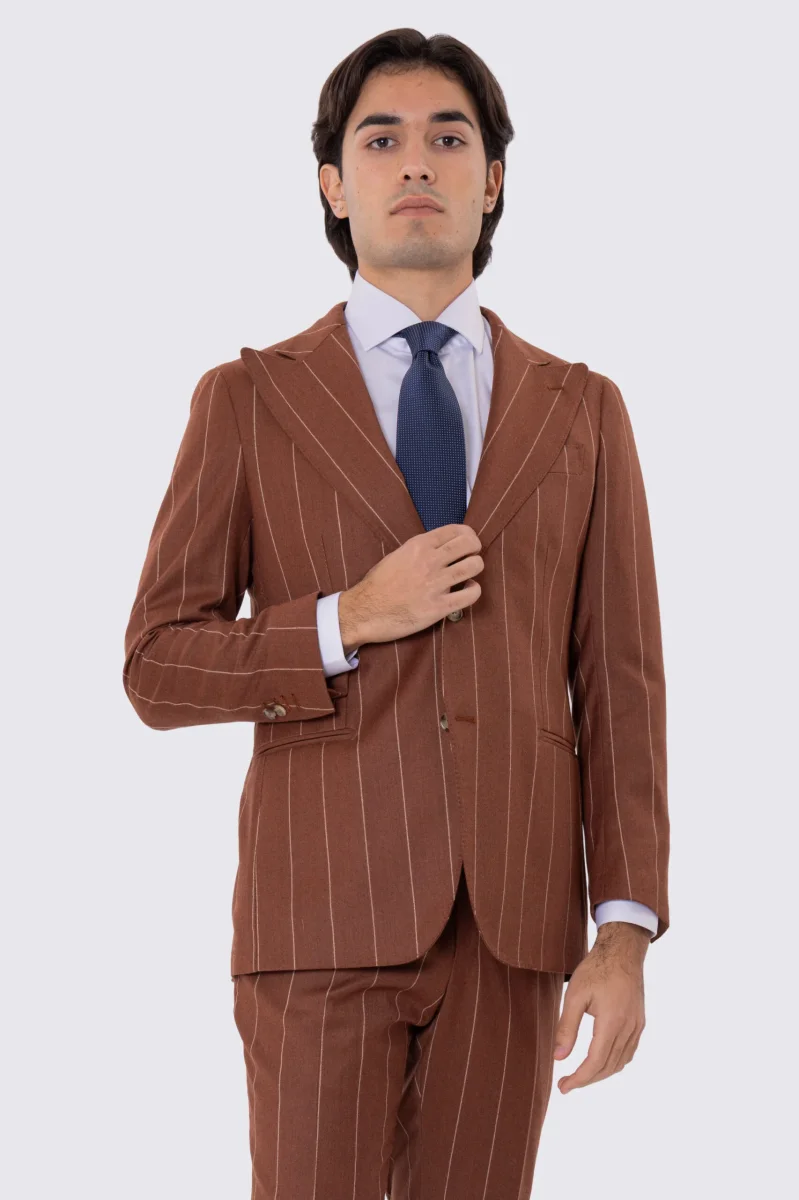 Abito uomo gessato semi intelato sartoriale in pura lana e cashmere slim fit