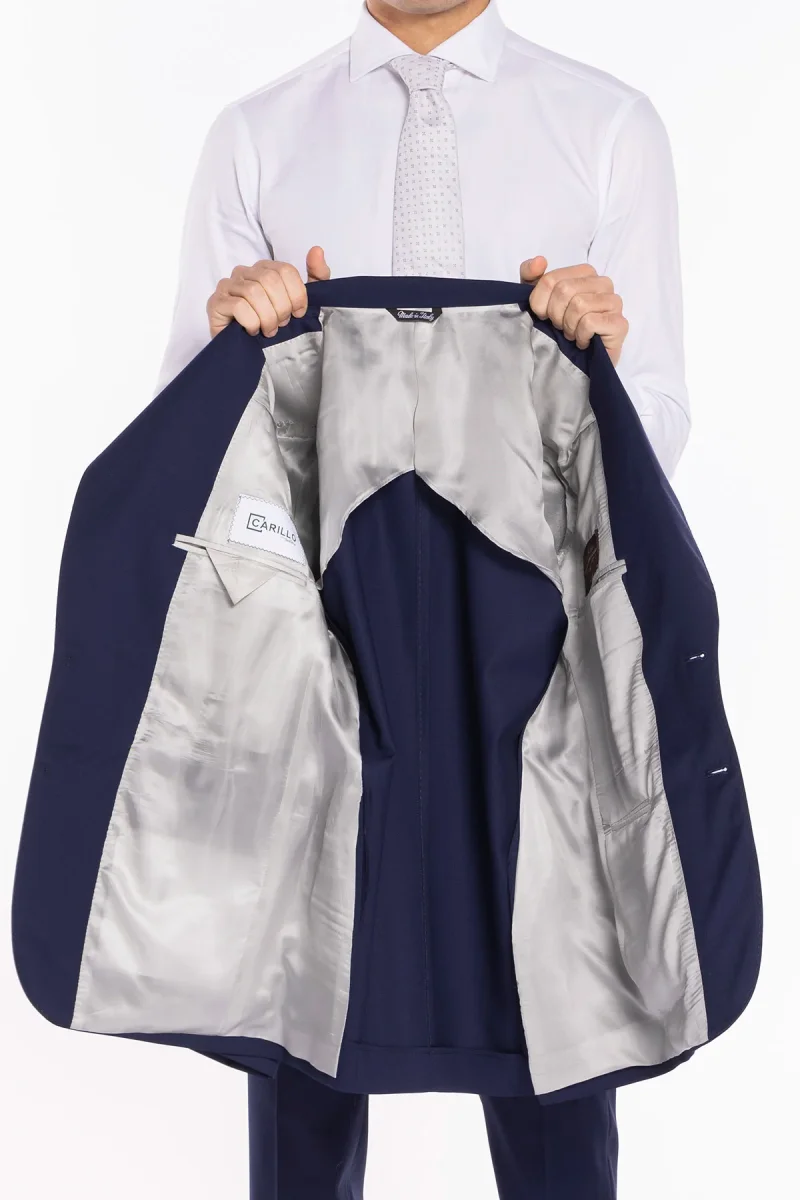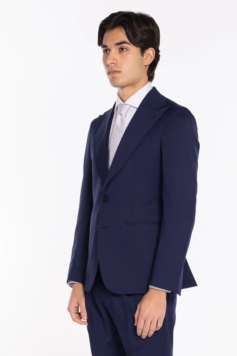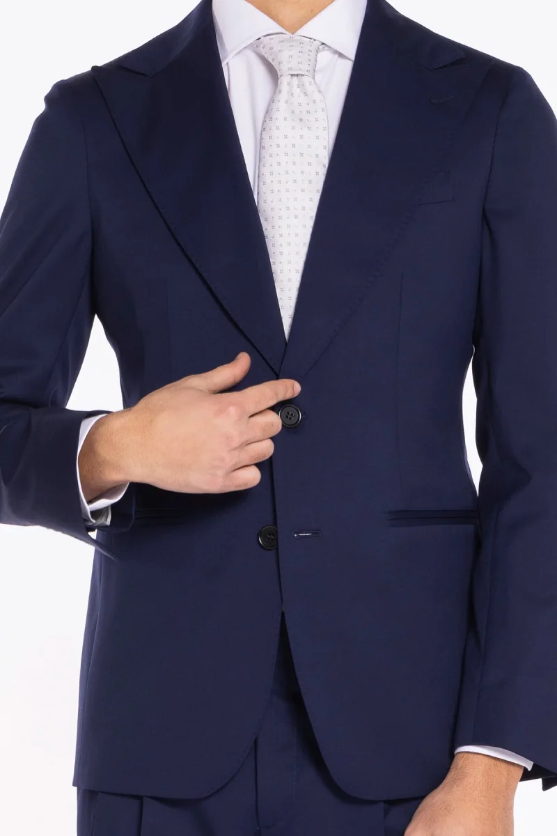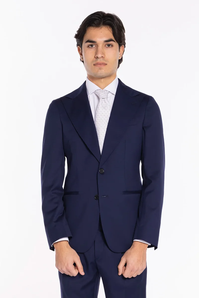 - Tessuto: 100% fresco lana Super130’s — leggero, traspirante, resistente e poco stropicciabile