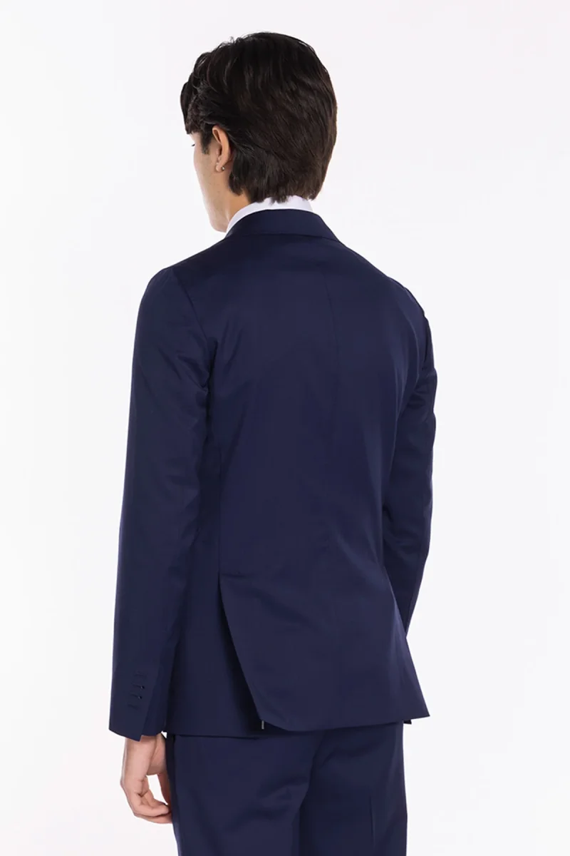 Eleva il tuo stile con questa giacca uomo monopetto blu realizzata in puro fresco lana Super130’s dal celebre lanificio Vitale Barberis Canonico. Dotata di rever a lancia 12cm e vestibilità slim fit, questa giacca unisce raffinatezza sartoriale e comfort superiore, ideale per ogni stagione — dal caldo della primavera-estate all’autunno più fresco