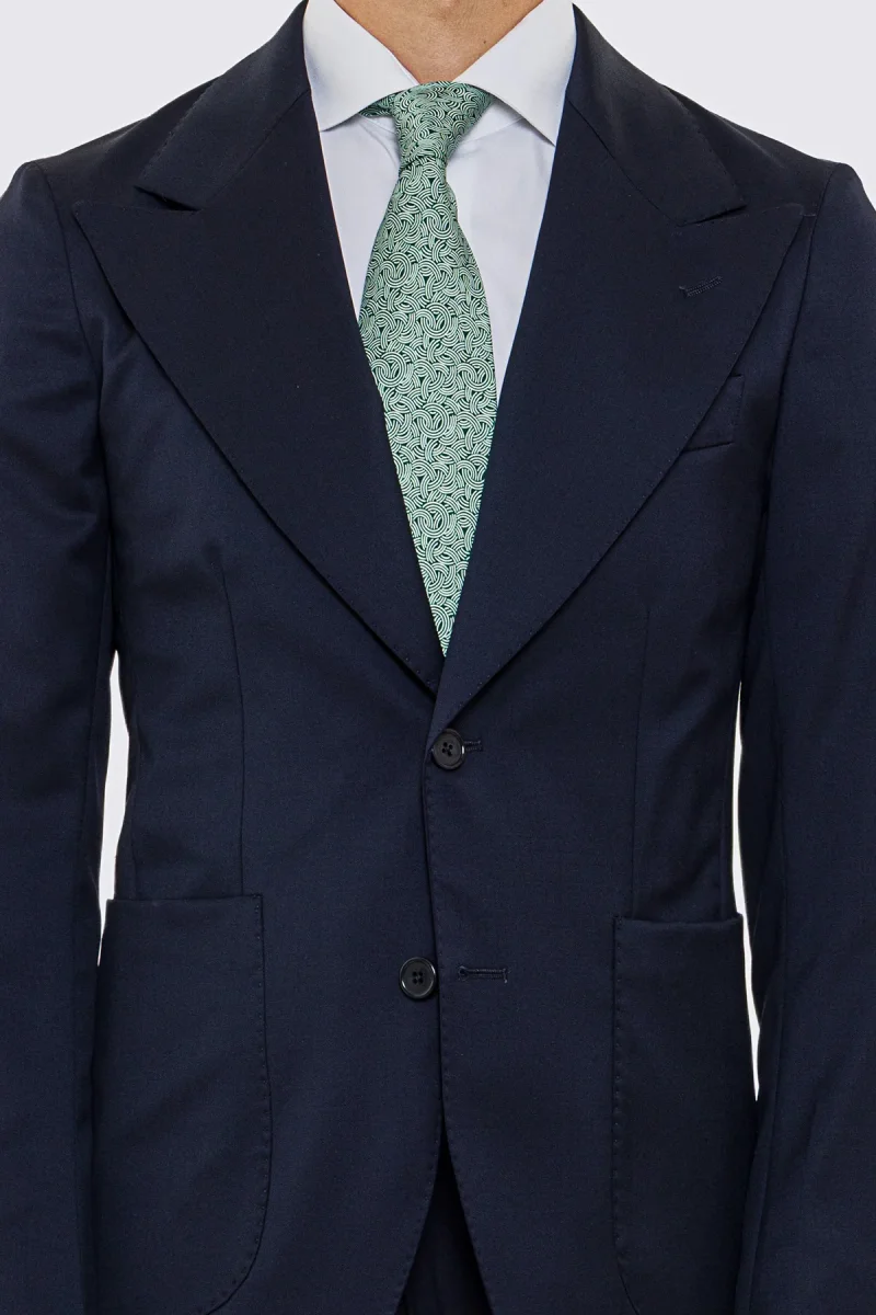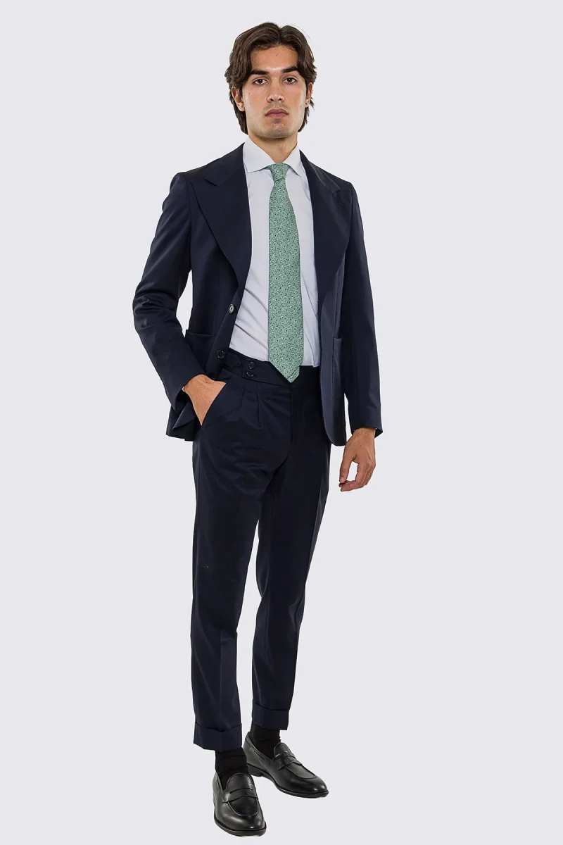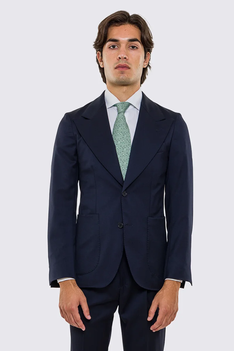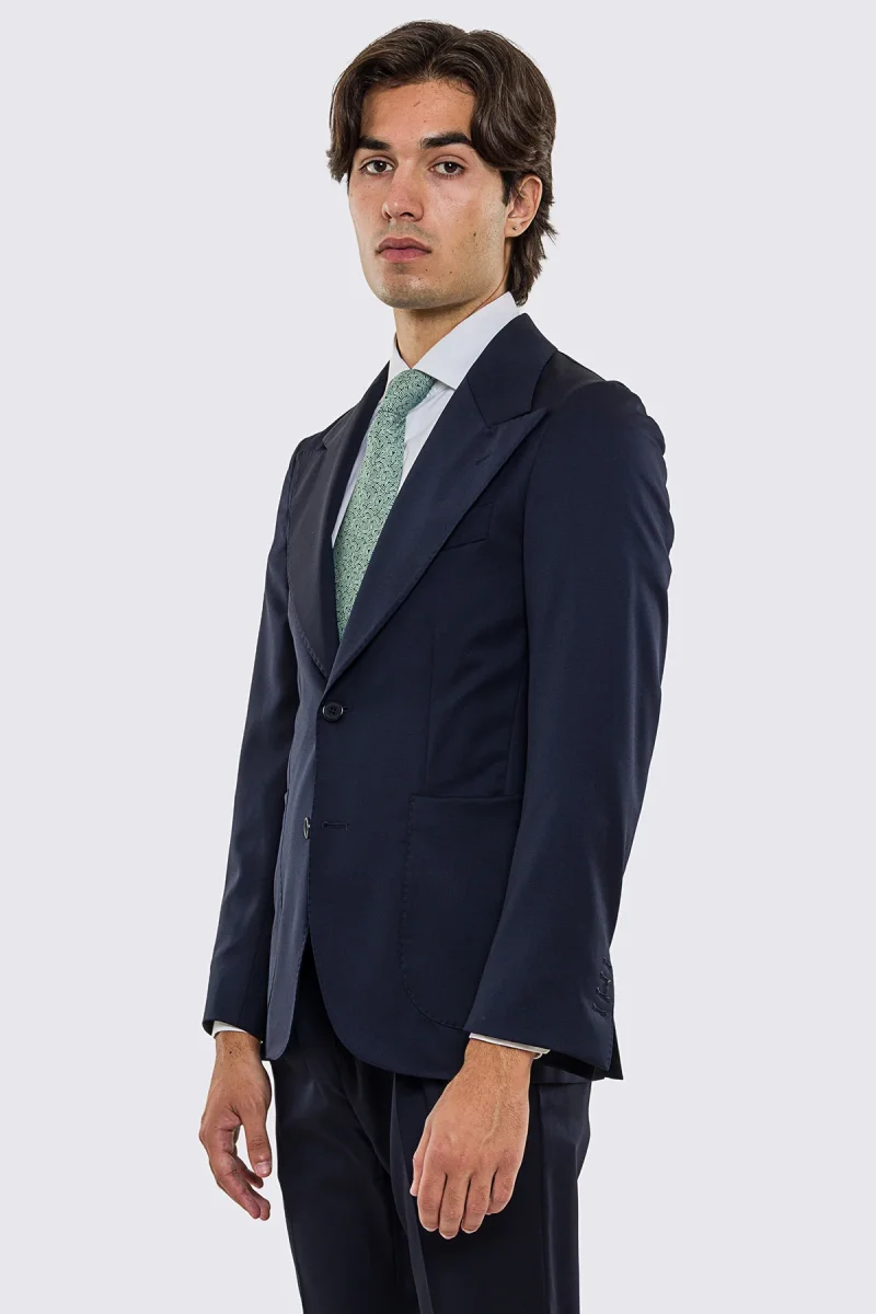 Abito uomo Monopetto blu notte fresco lana super 130’s Vitale Barberis Canonico sfoderata Rever a lancia tasche a toppe