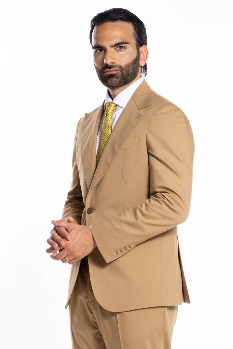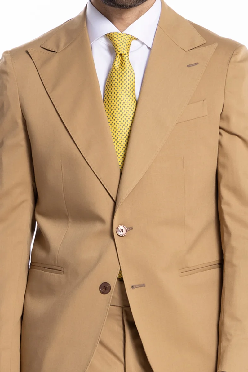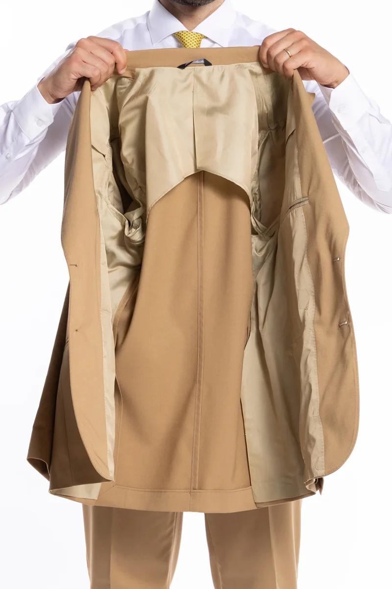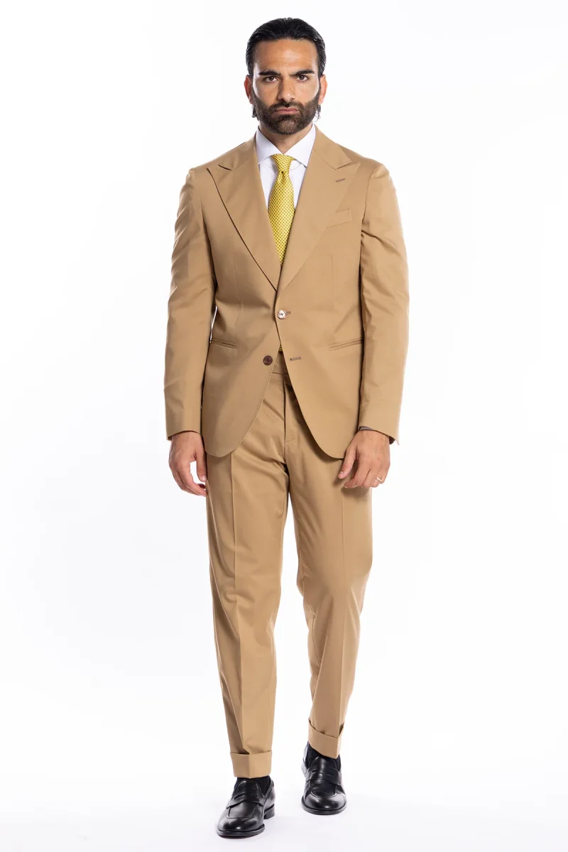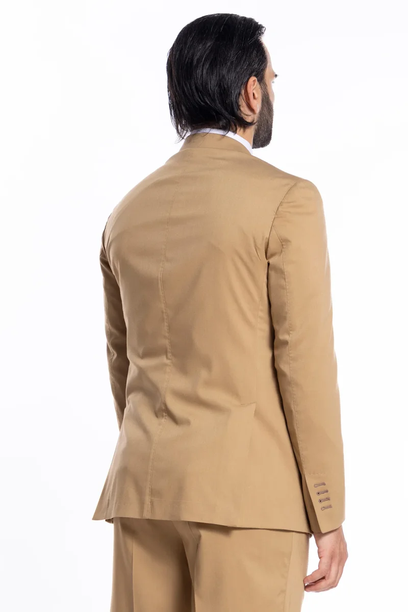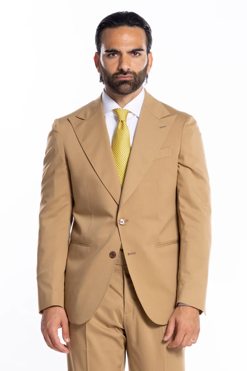 Abito uomo monopetto color cammello tinta unita Rever a lancia 13cm