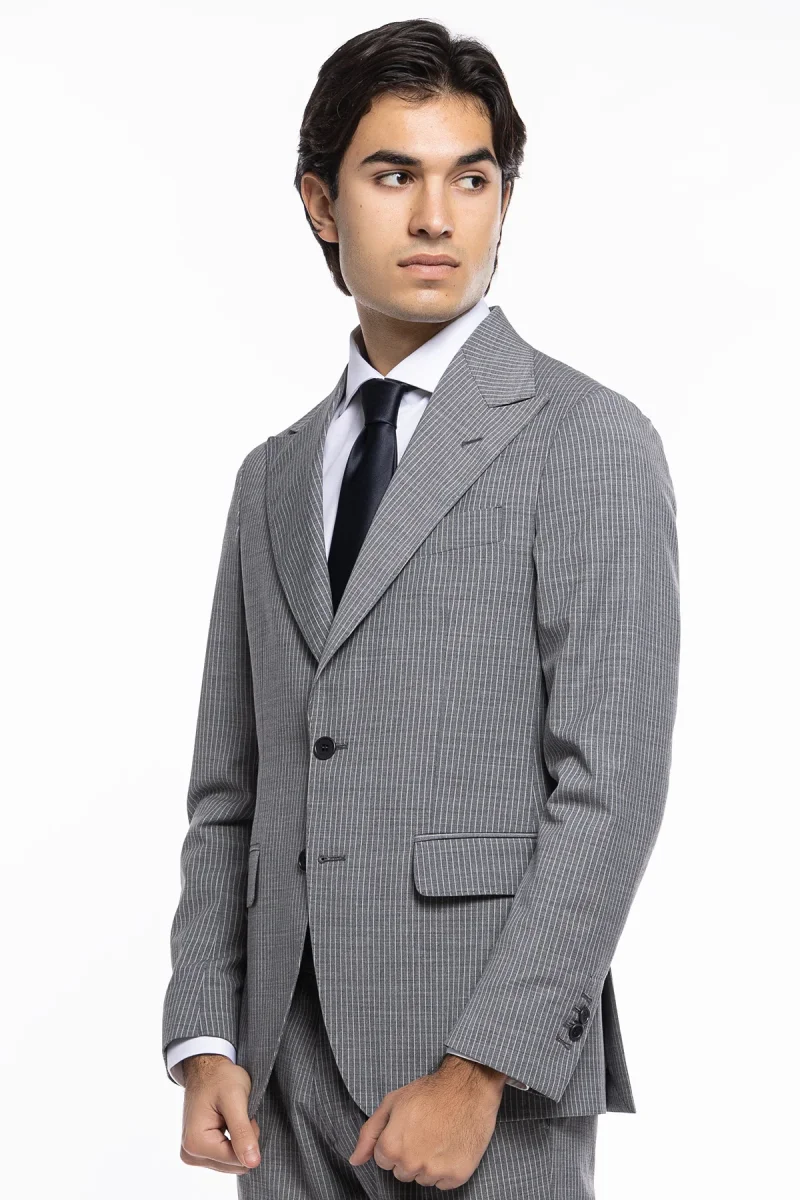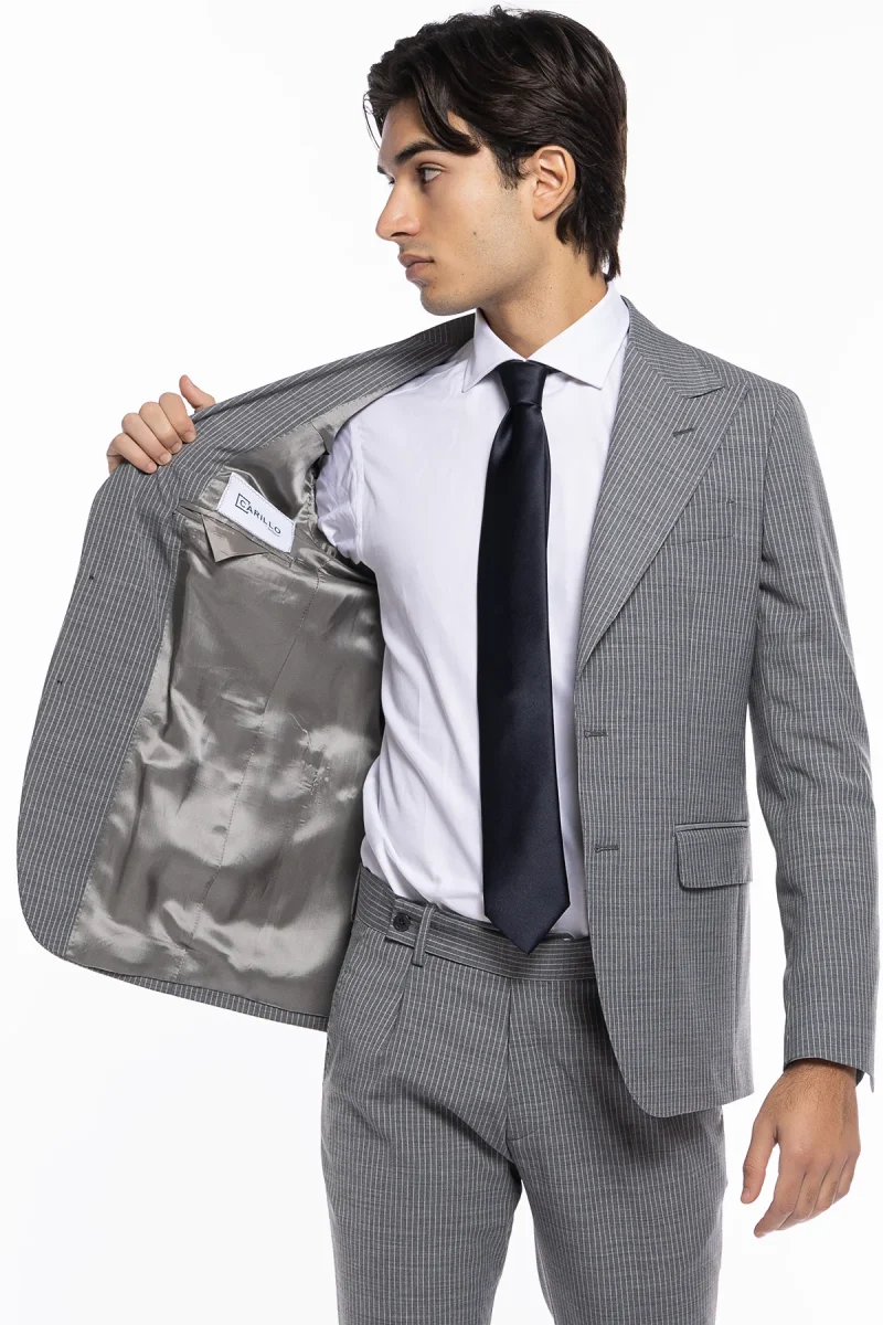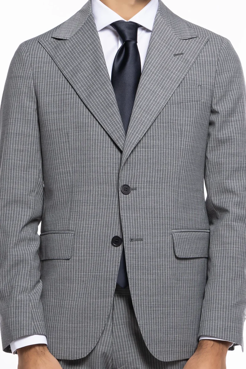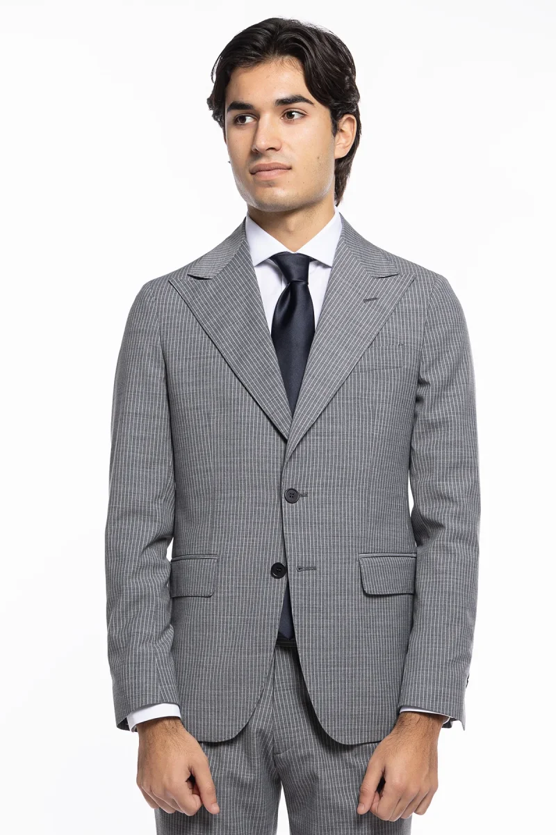 Abito uomo monopetto Grigio chiaro rigato fresco lana mista Rever a lancia 13cm