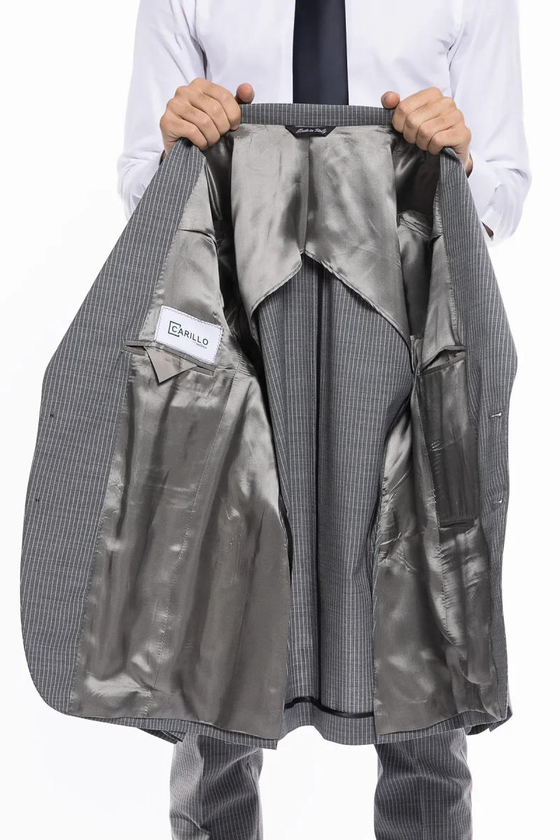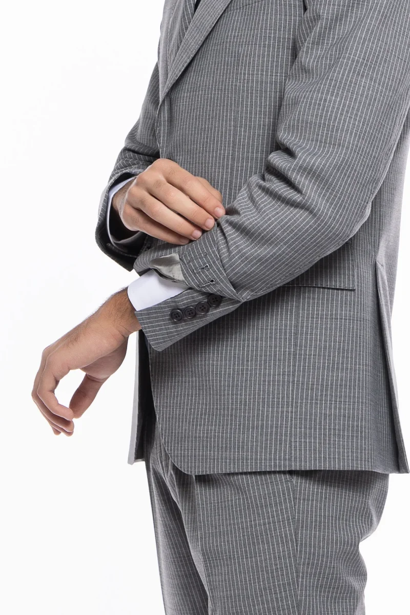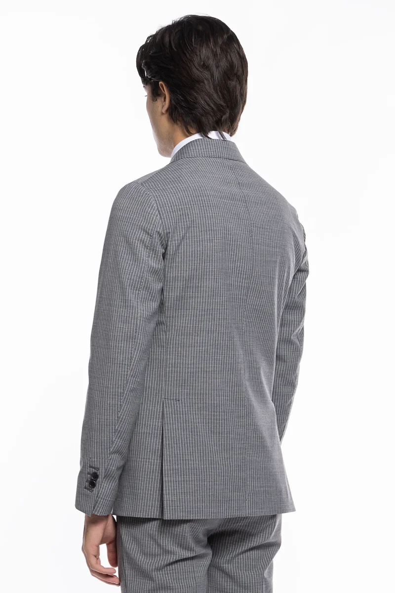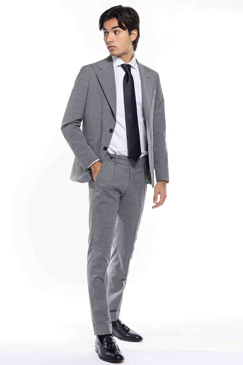 Abito uomo monopetto Grigio chiaro rigato fresco lana mista Rever a lancia 13cm
