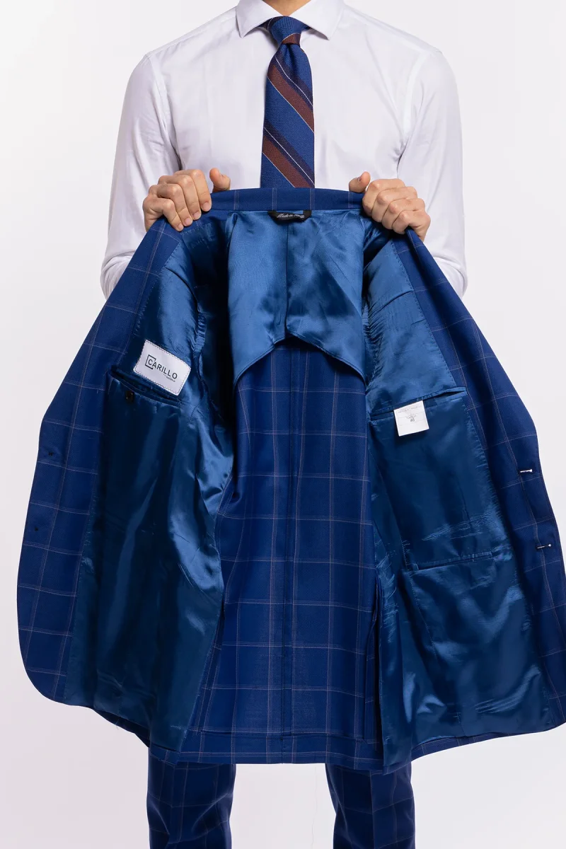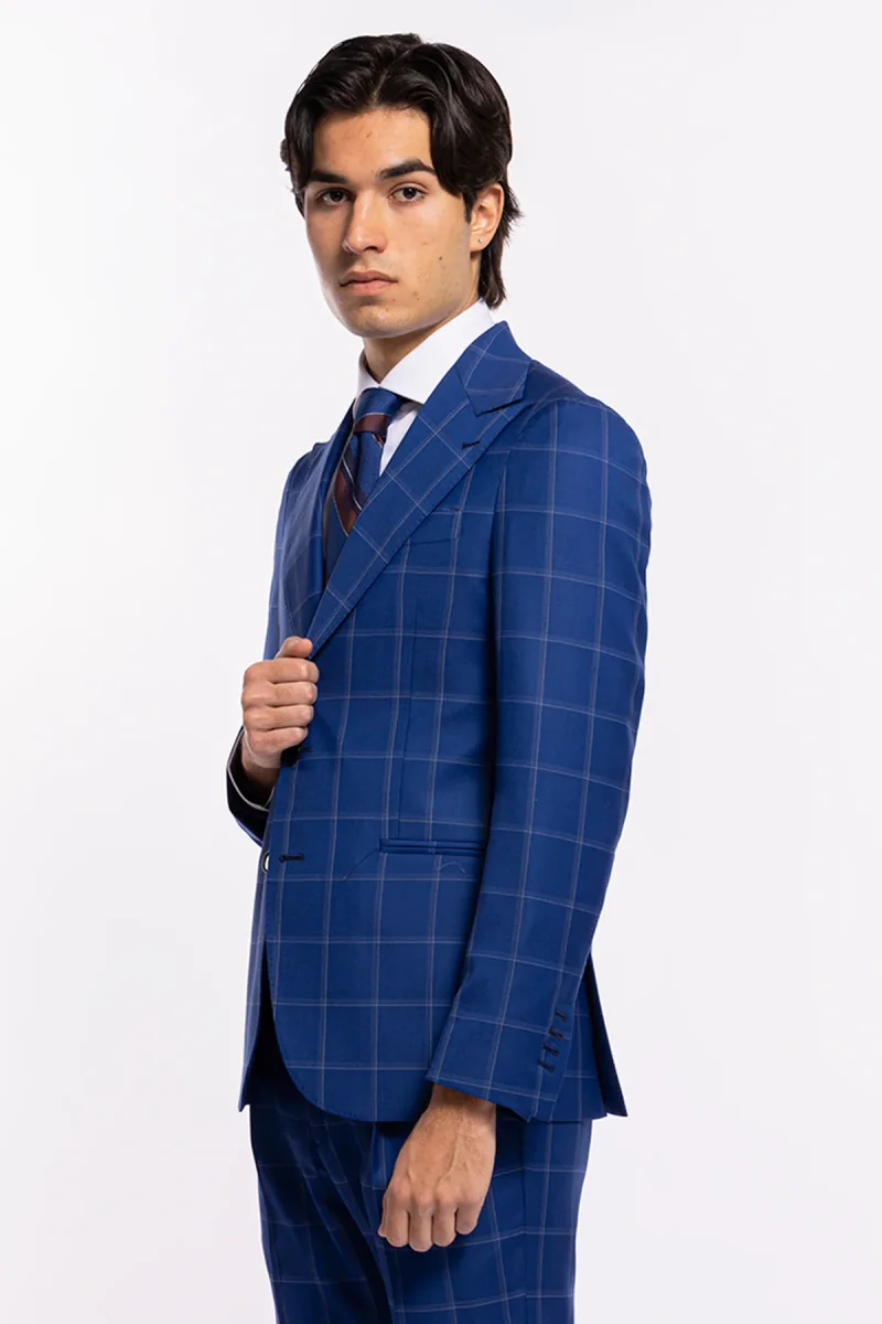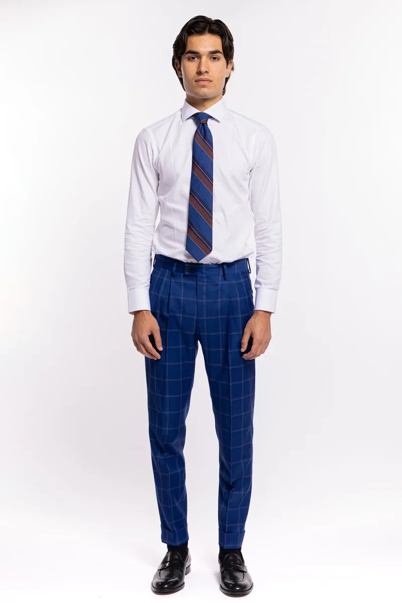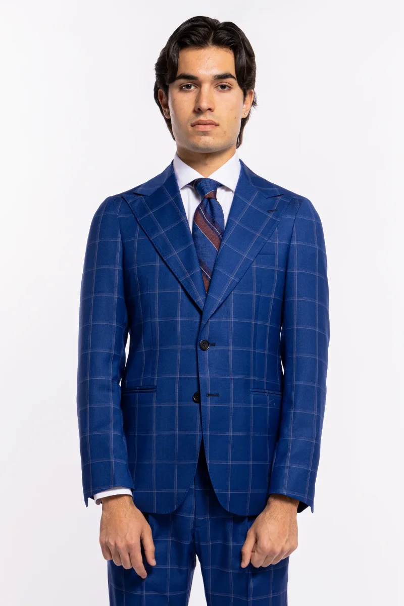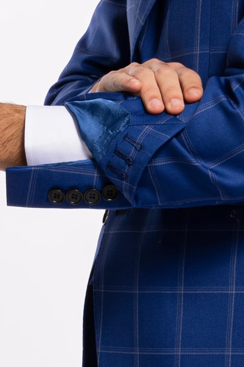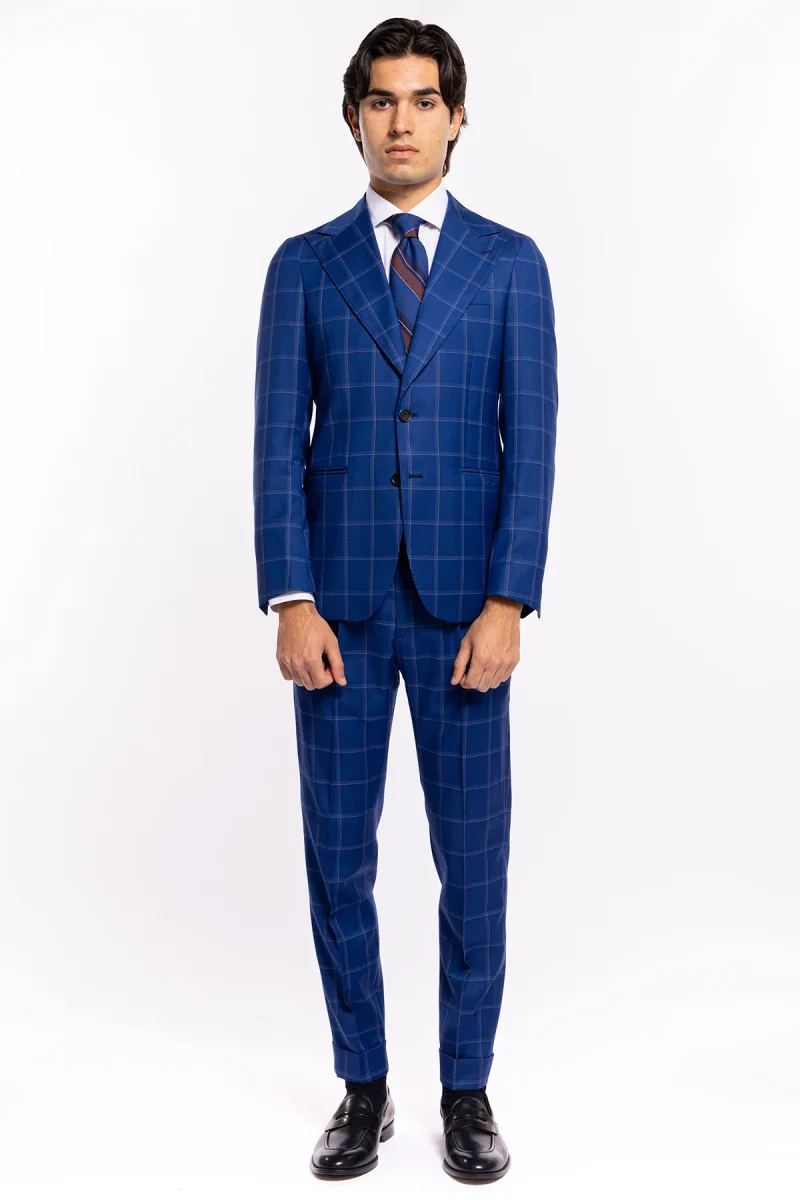 Abito Uomo Monopetto Royal Blu Fantasia Quadri Bianchi – Fresco Lana Bristol
