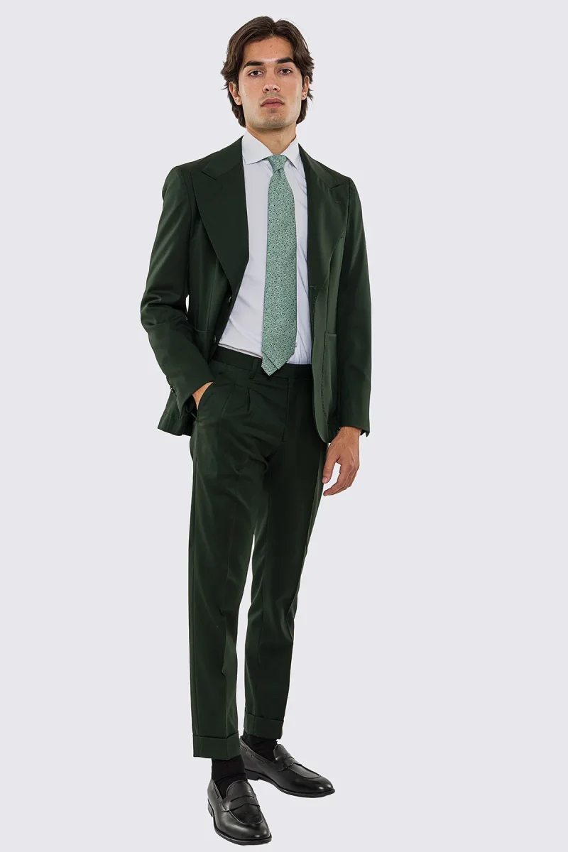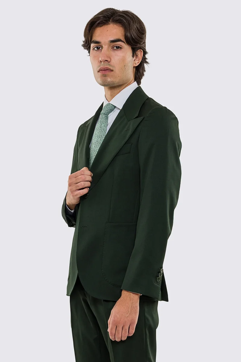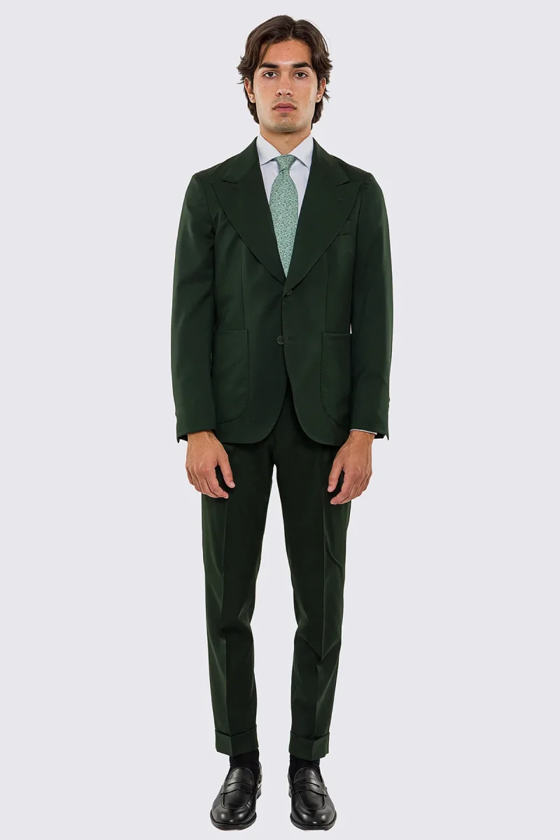 Abito Uomo Monopetto Verde Scuro in Fresco Lana Super 130’s