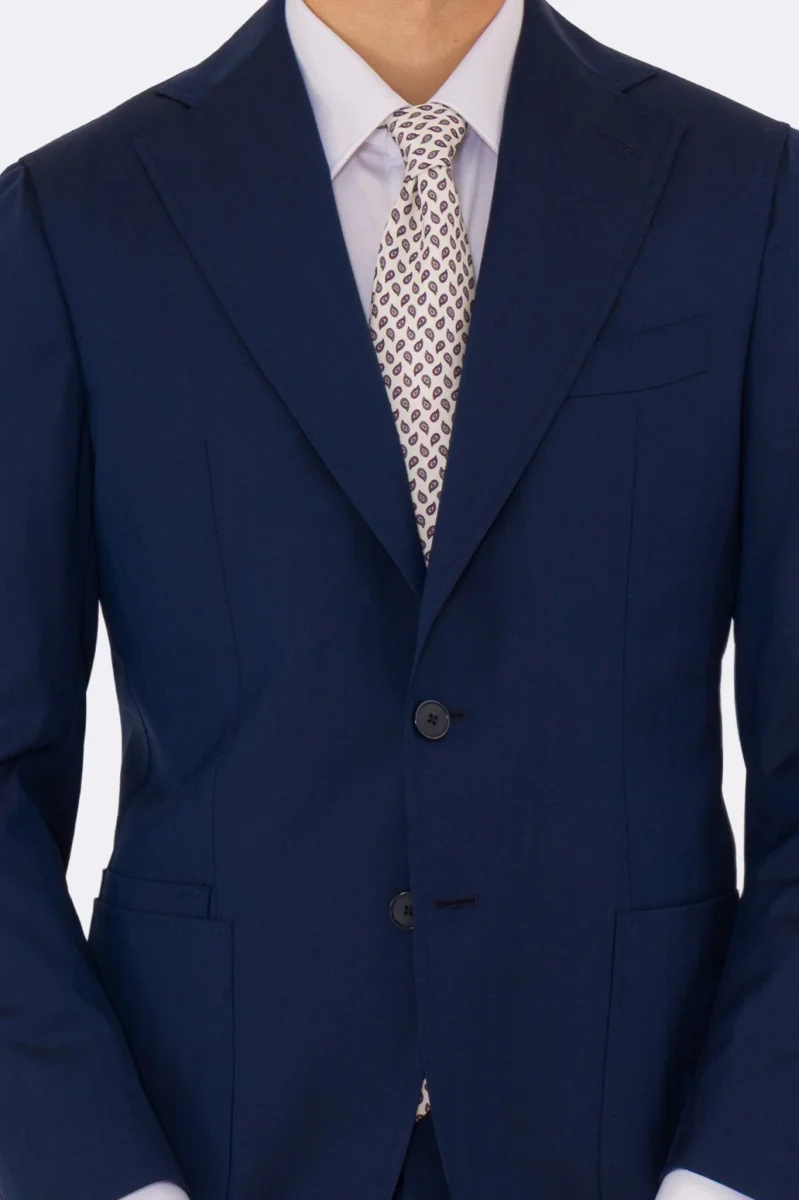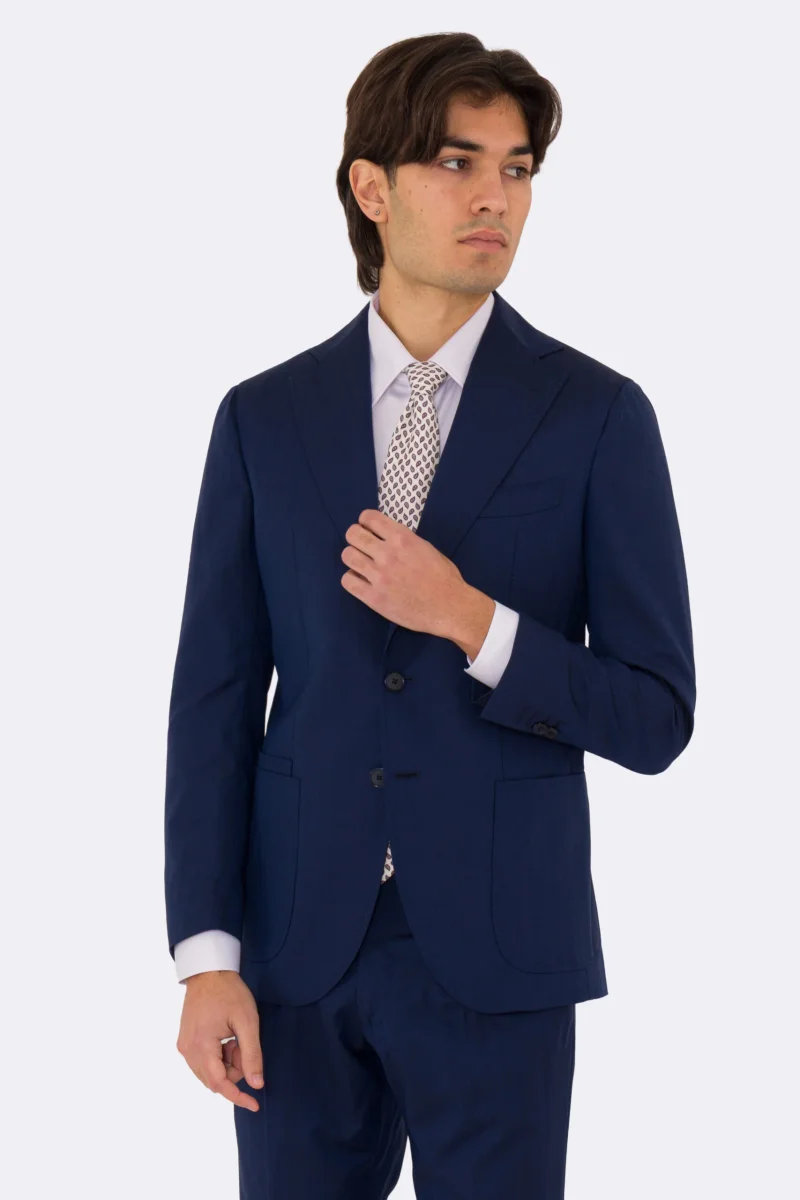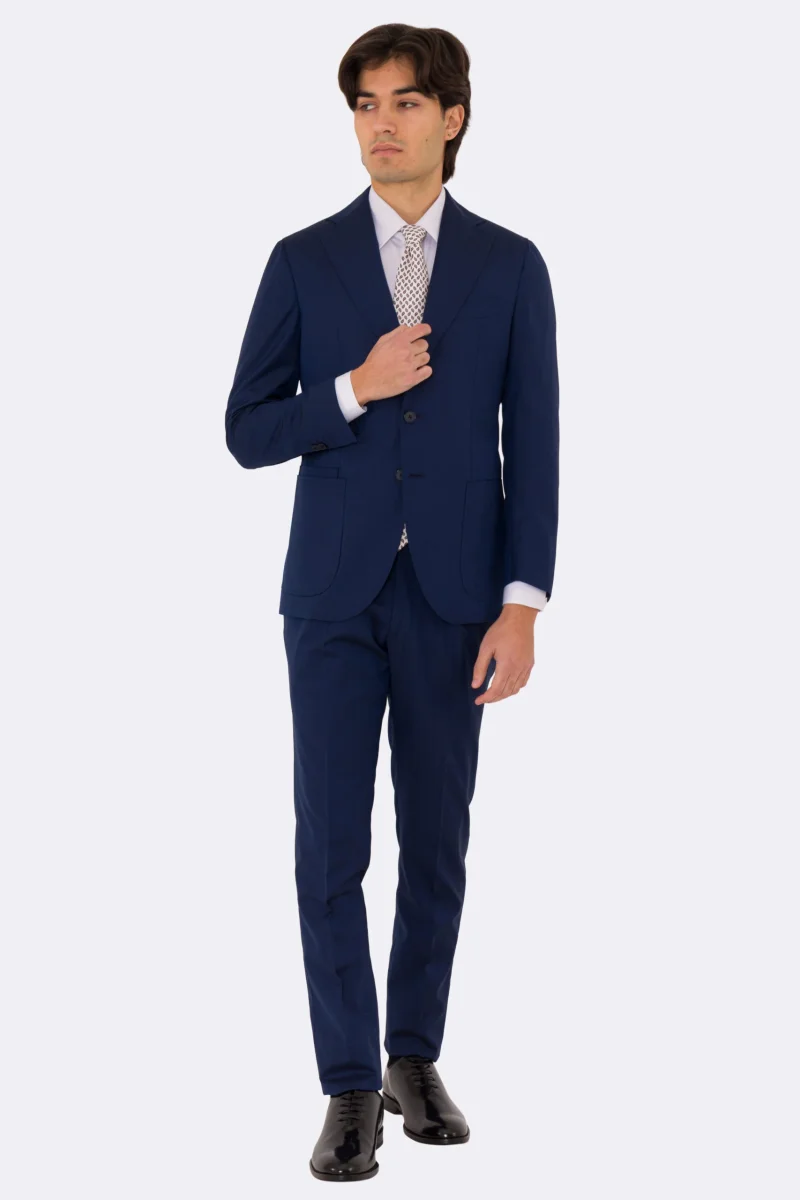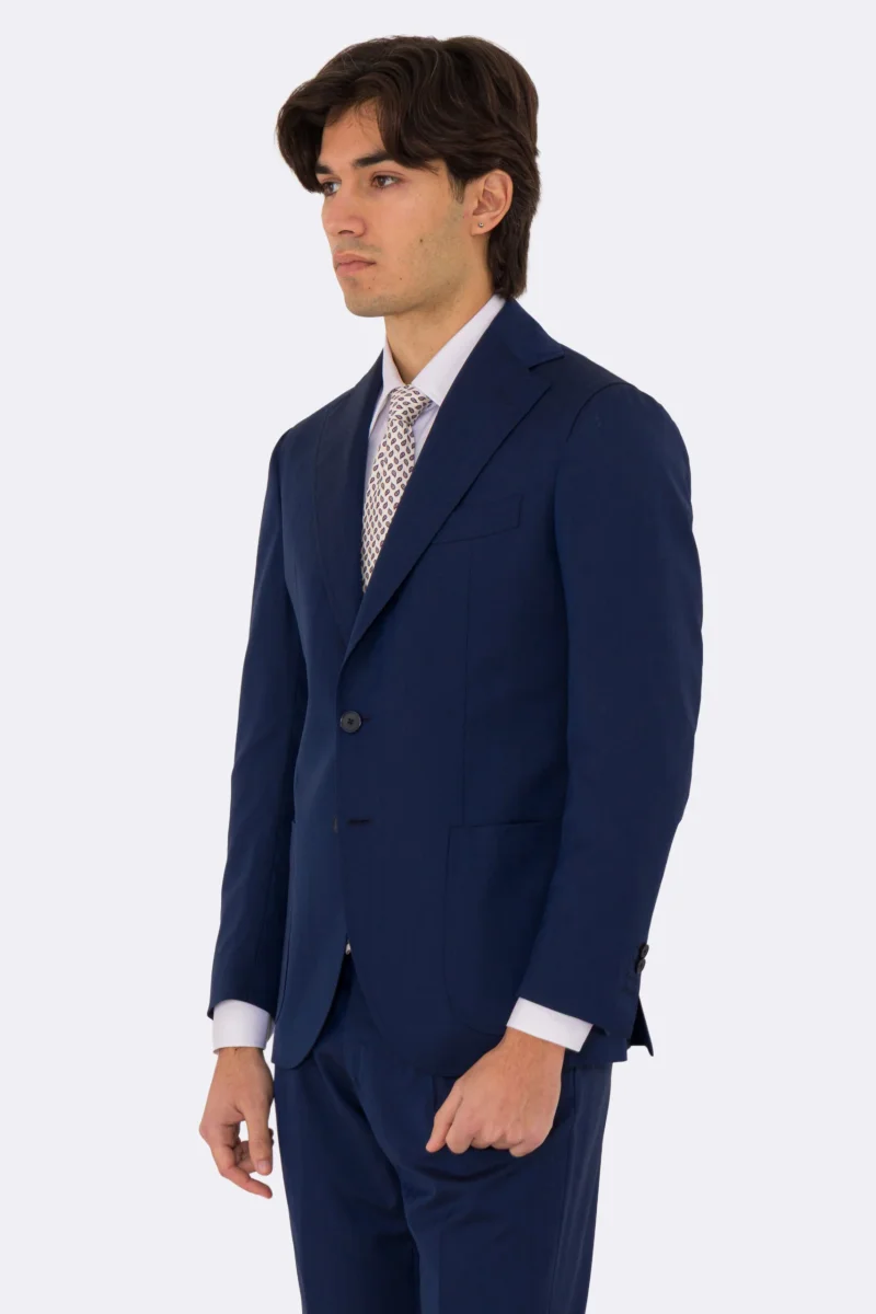 Abito uomo semi intelato blu spigato monopetto in fresco lana super 130’s Fordam tessuti Rever a classico 9cm