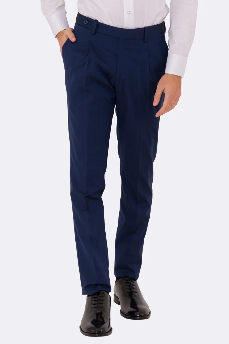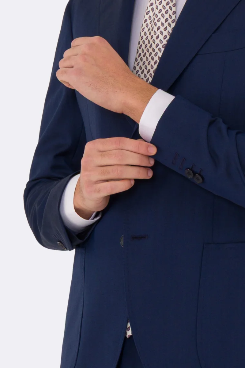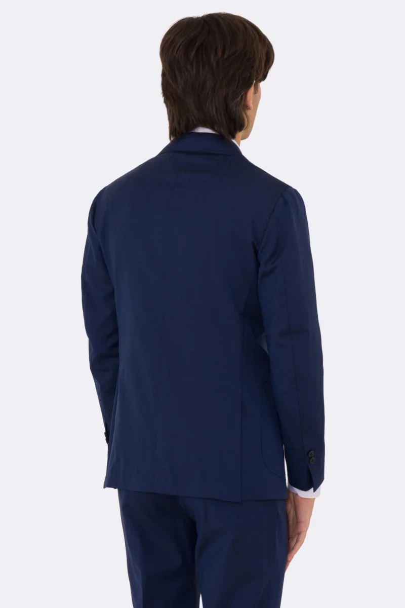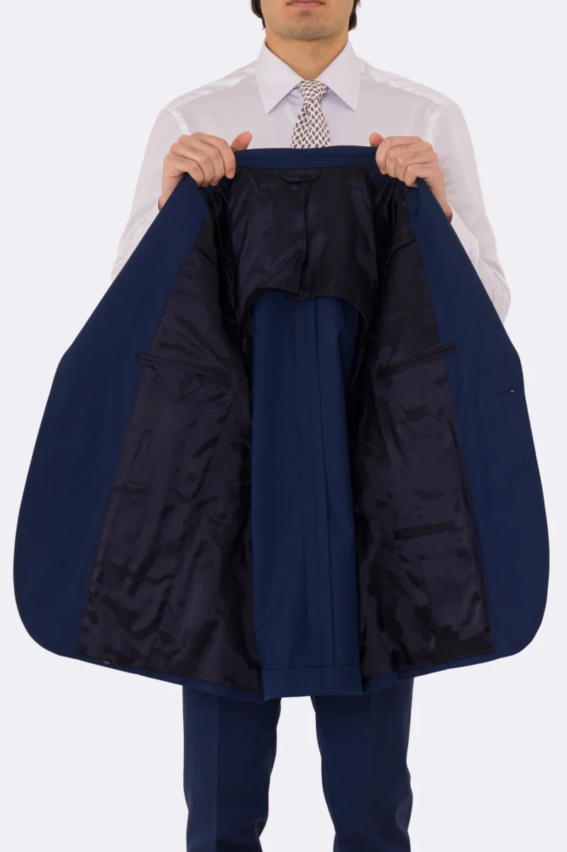 Abito uomo semi intelato blu spigato monopetto in fresco lana super 130’s Fordam tessuti Rever a classico 9cm