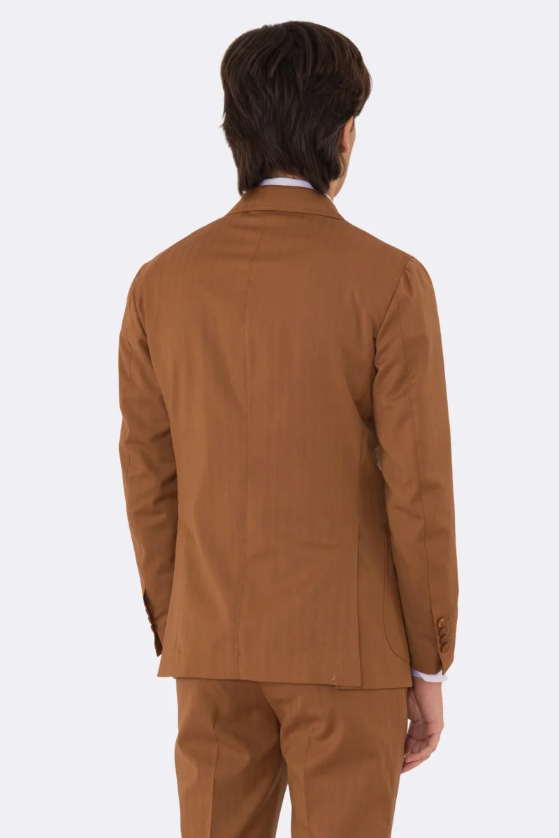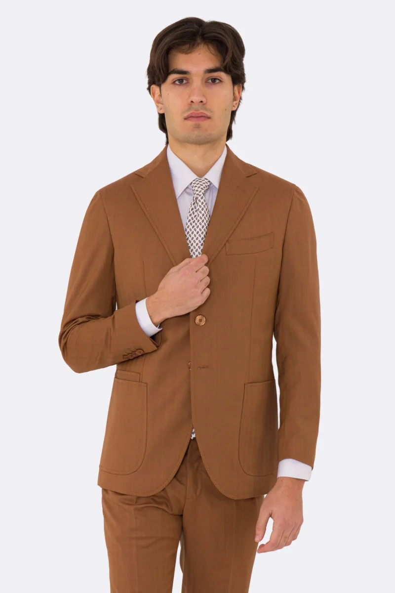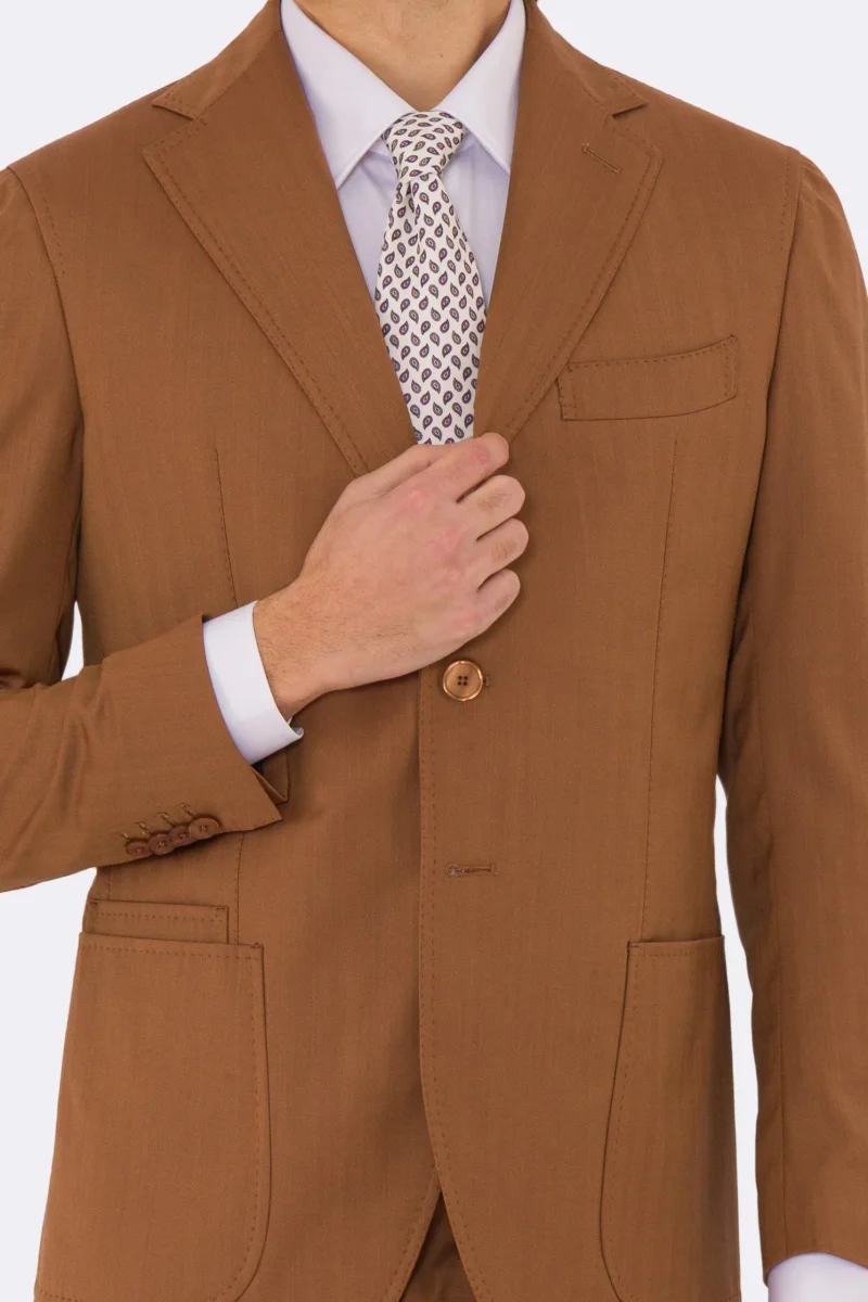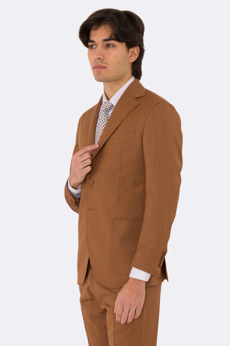 Abito uomo semi intelato coccio spigato monopetto in fresco lana super 130’s Fordam tessuti Rever a classico 9cm