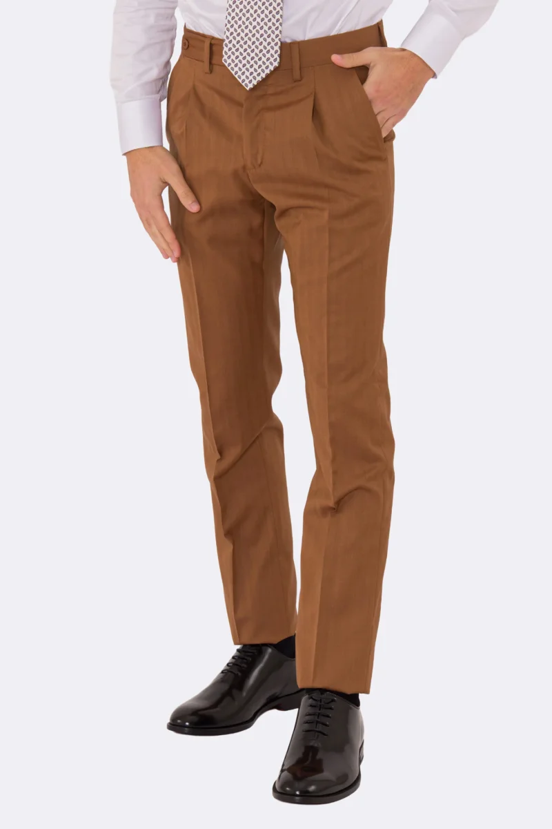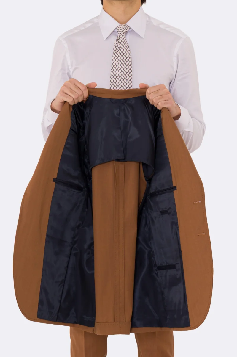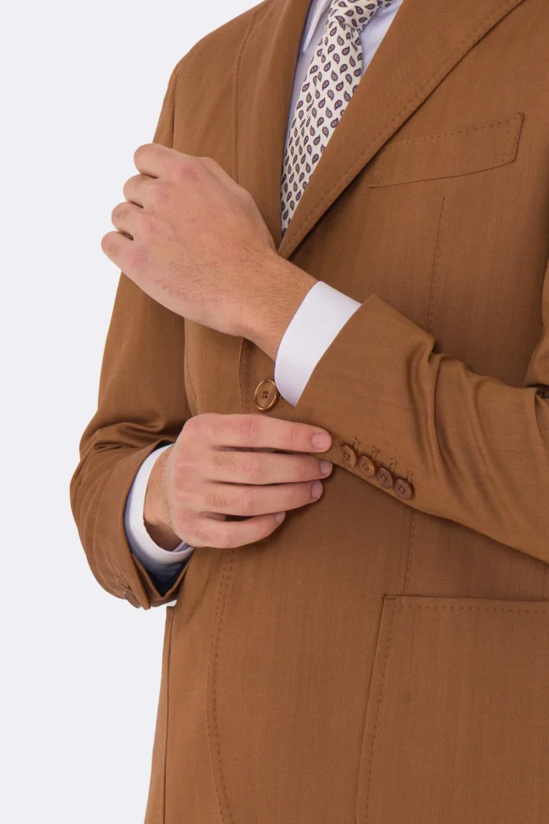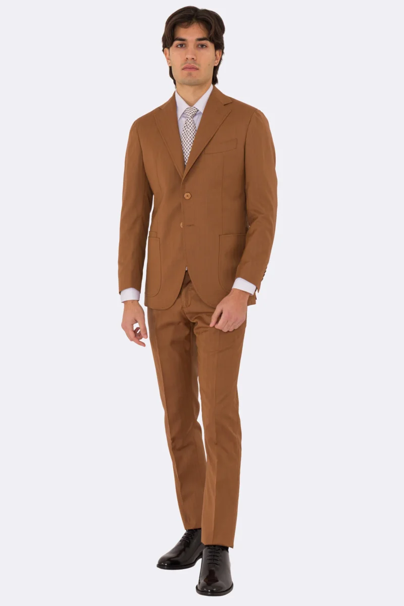 Abito uomo semi intelato coccio spigato monopetto in fresco lana super 130’s Fordam tessuti Rever a classico 9cm