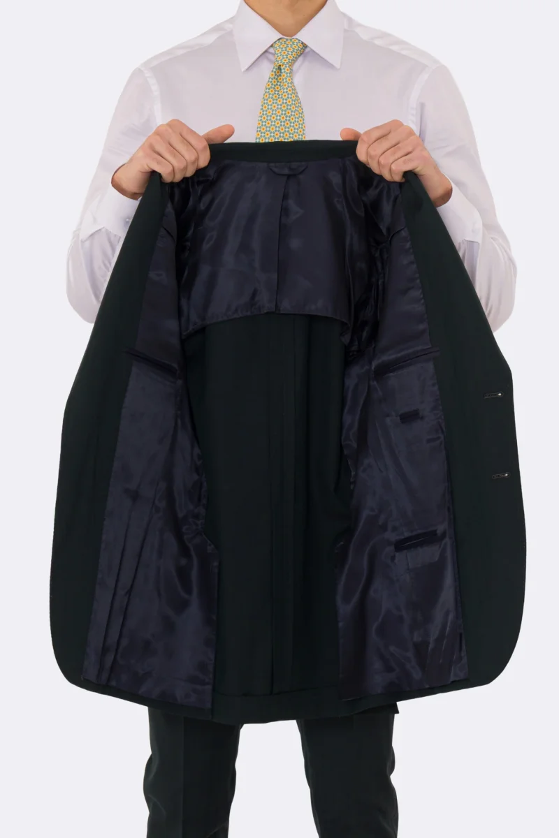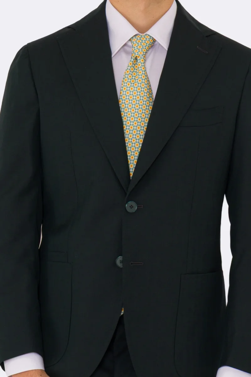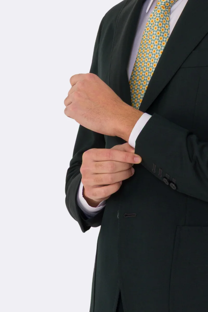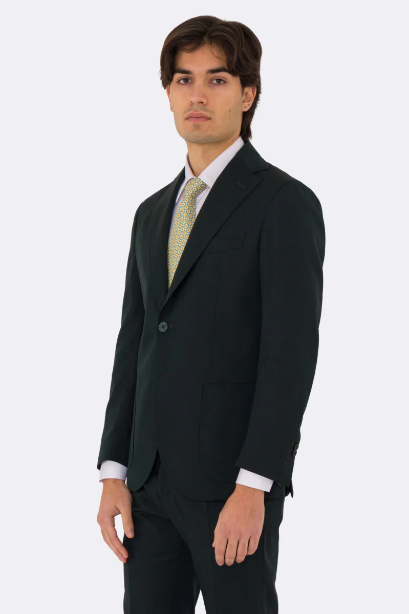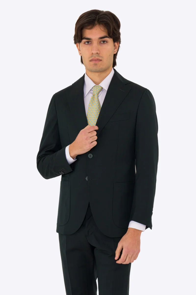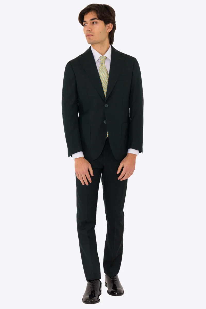 Abito uomo semi intelato Verde spigato monopetto in fresco lana super 130’s Fordam tessuti Rever a classico 9cm