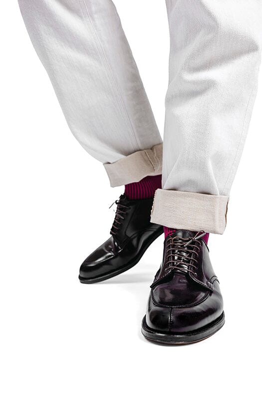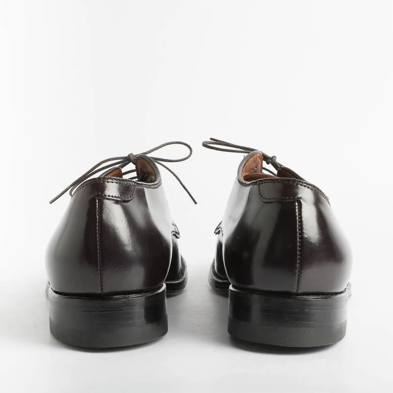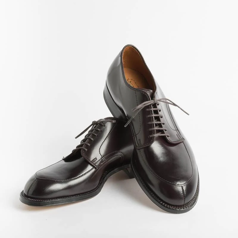 Derby con lavorazione norvegese dalla forma ergonomica realizzata in pregiata culatta di cavallo Horween, guardolo con doppia cucitura goodyear, suola in cuoio. Produzione Stati Uniti d’America.