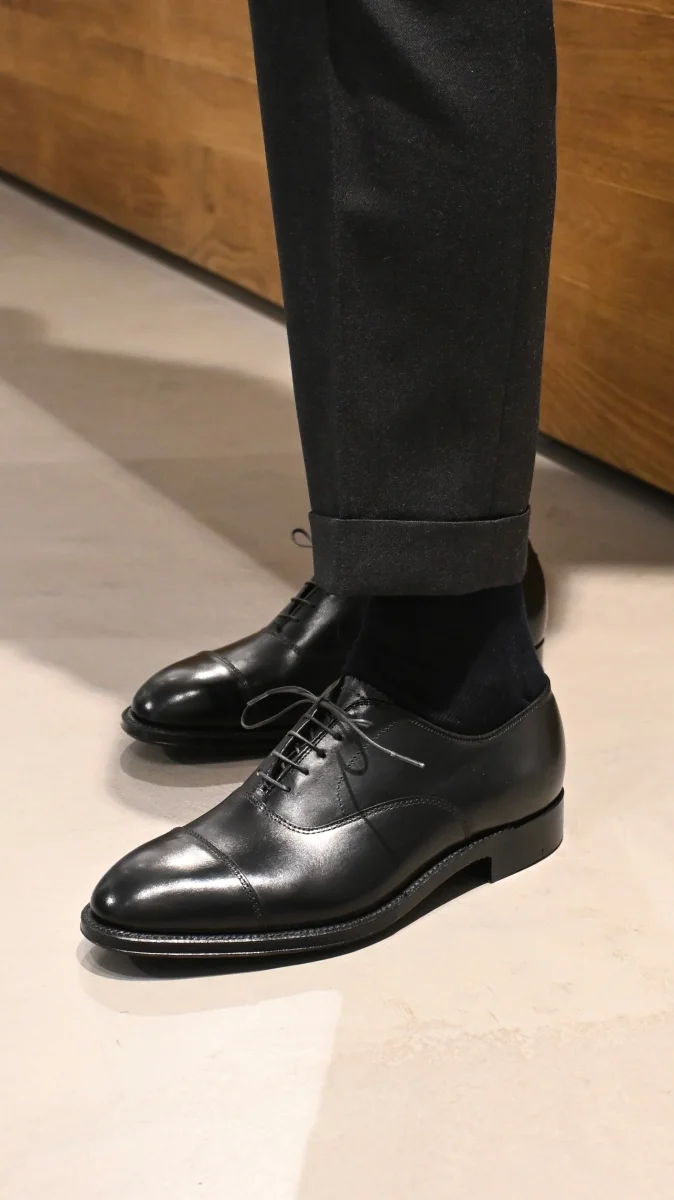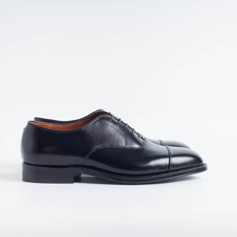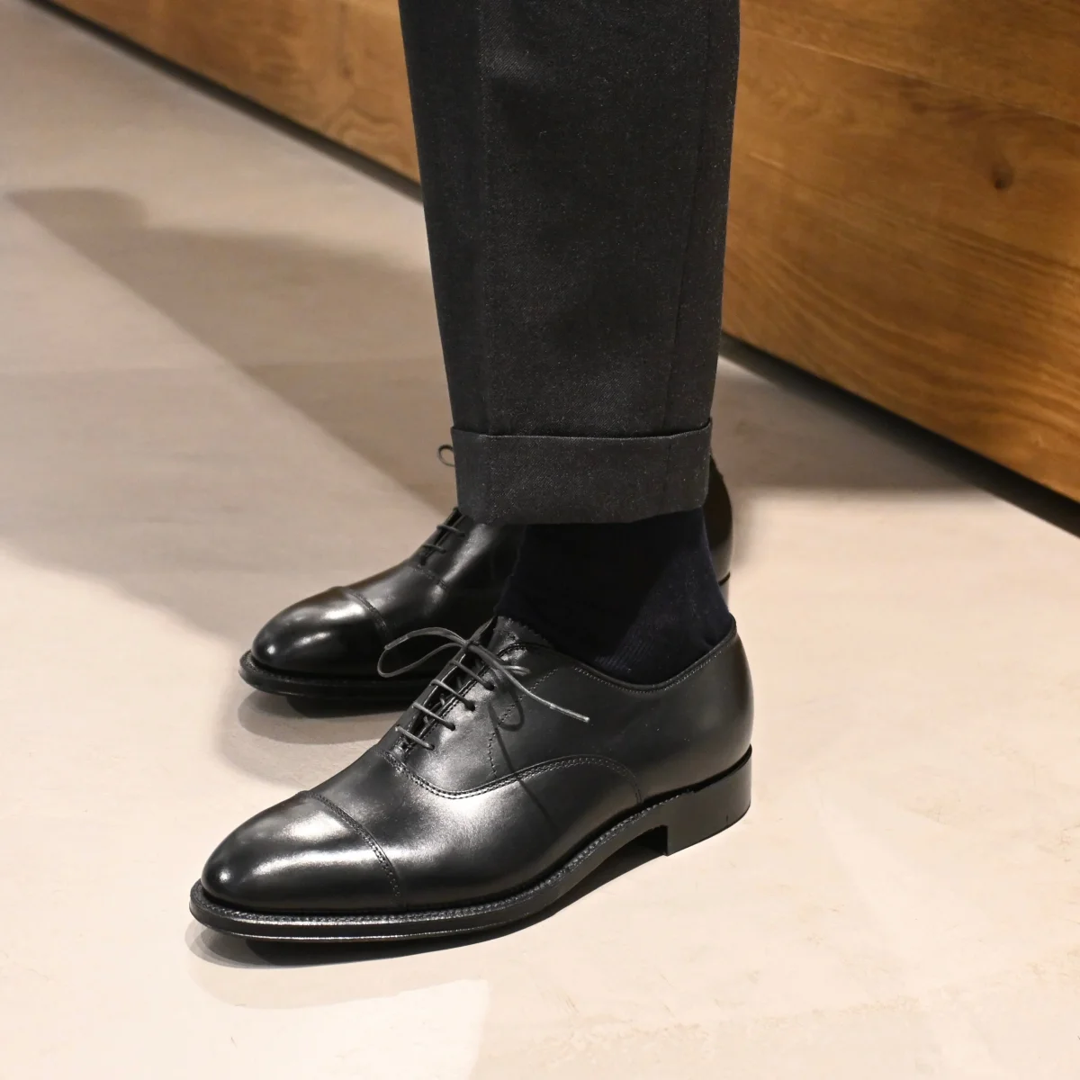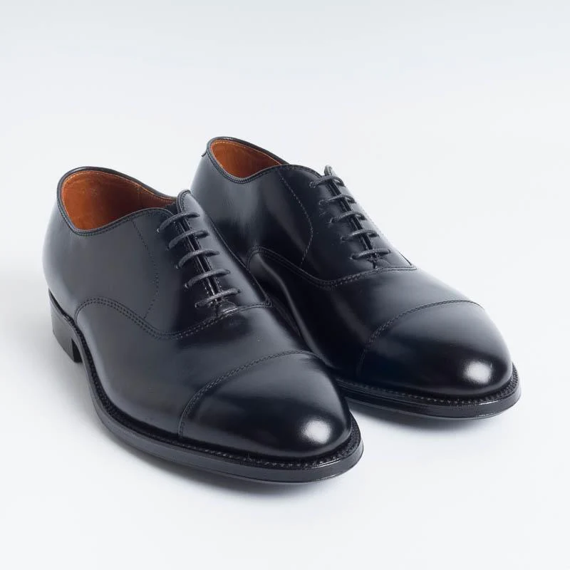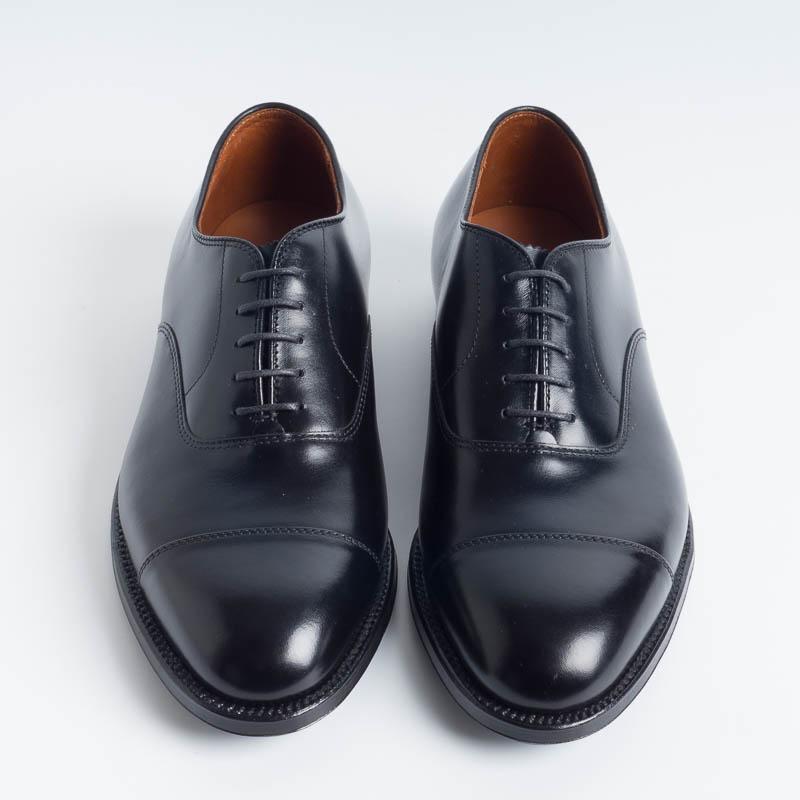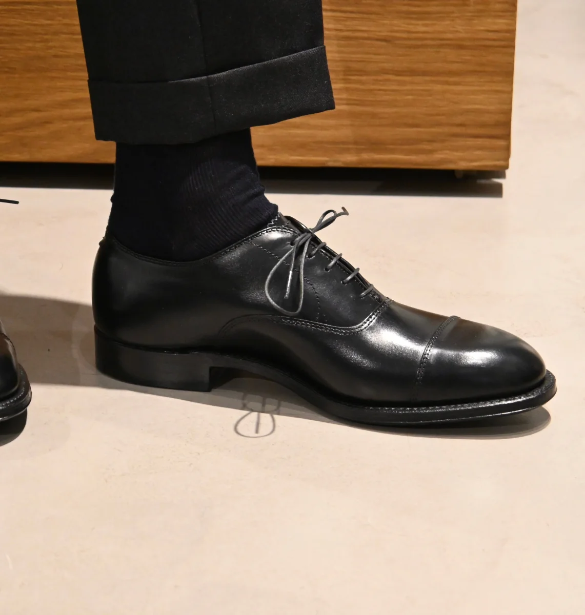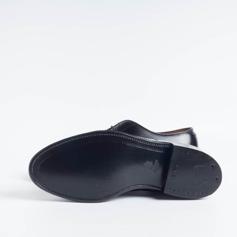 Francesina con puntale in pelle di vitello di colore nero, guardolo con doppia cucitura goodyear, suola in cuoio. Produzione Stati Uniti d’America.