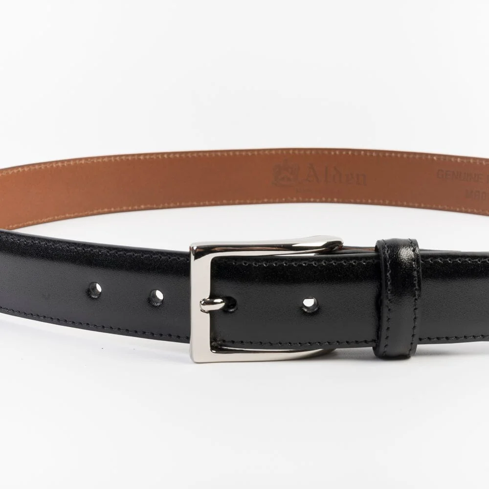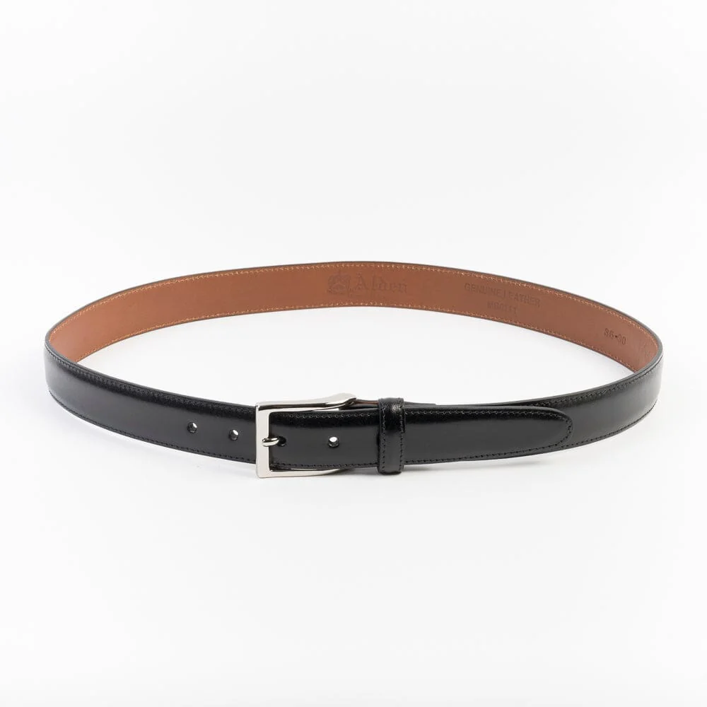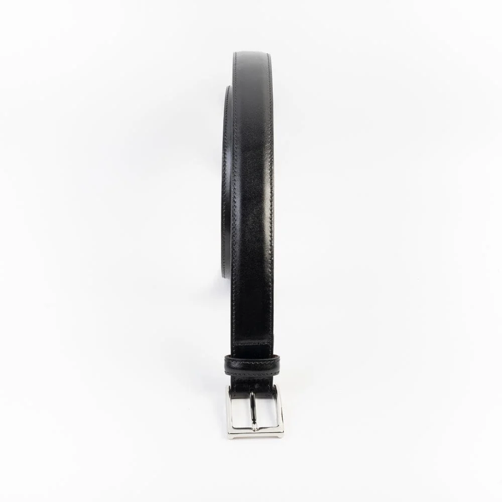 Cintura Alden in pelle di altezza 3 cm, con fibbia in metallo colore argento, realizzata nel colore nero.