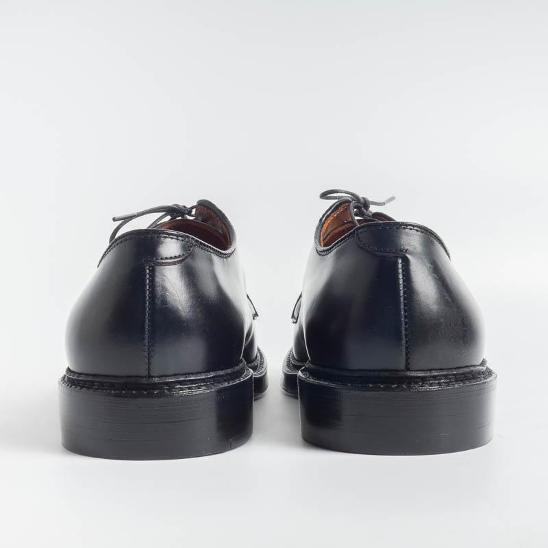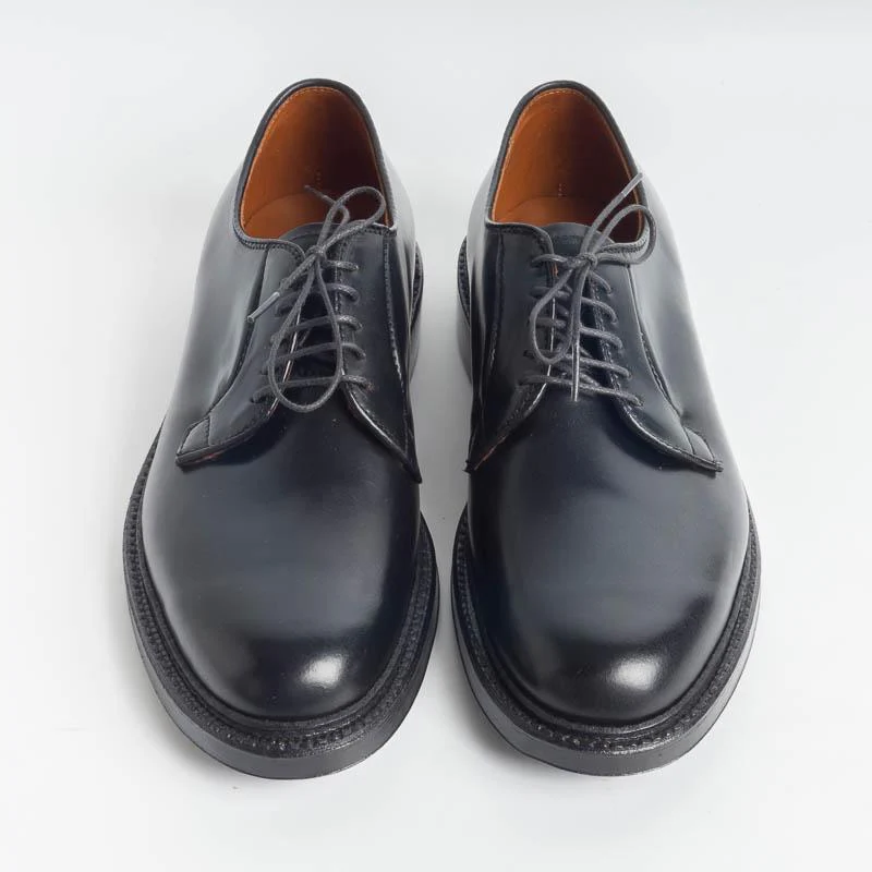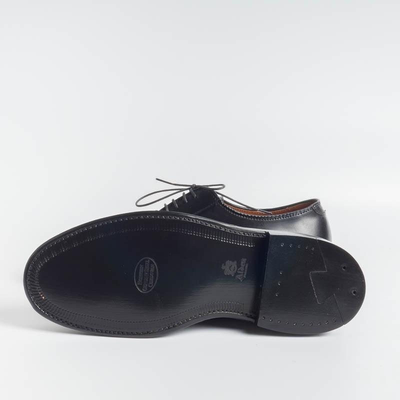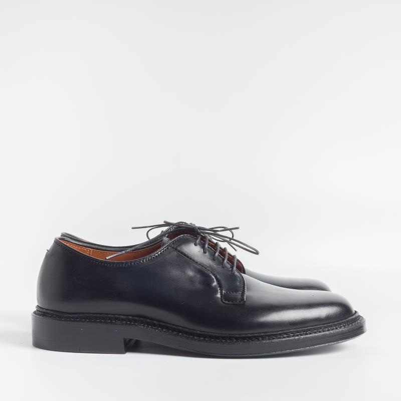 Classico derby liscio di Alden realizzato in Culatta di Cavallo (Horween ) di colore nero; guardolo con doppia cucitura goodyear, doppia suola in cuoio. Forma Barrie.