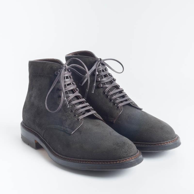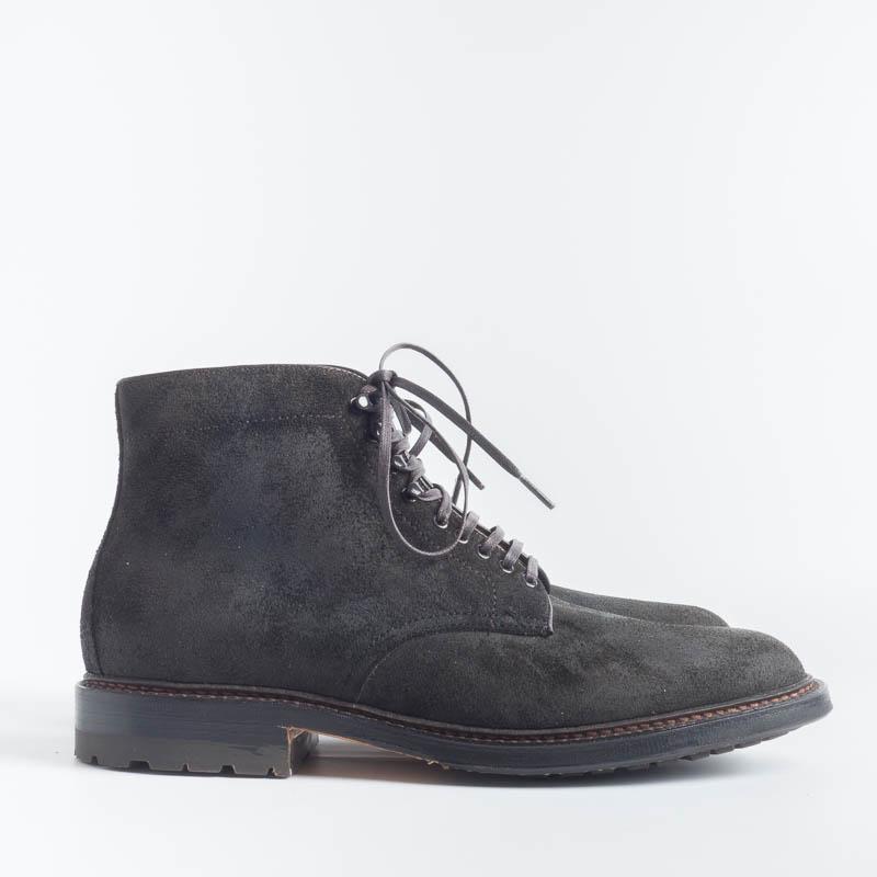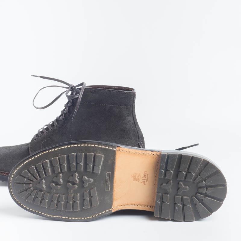 Polacco di Alden realizzato in camoscio ingrassato nel colore testa di moro. Allacciatura 5 occhielli e ganci tendilaccio. Interno foderato in pelle. Doppia cucitura su guardolo. Doppio fondo cuoio con mezza suola gomma, prodotto originale Alden.