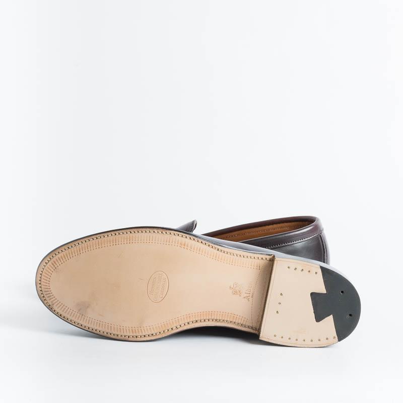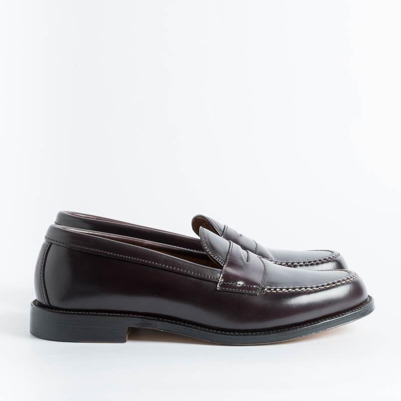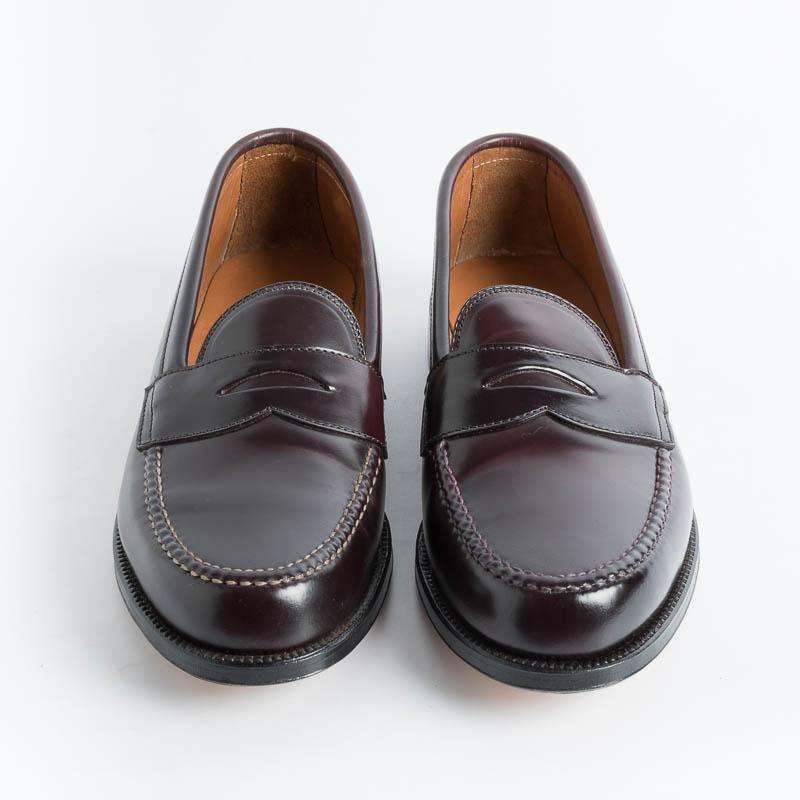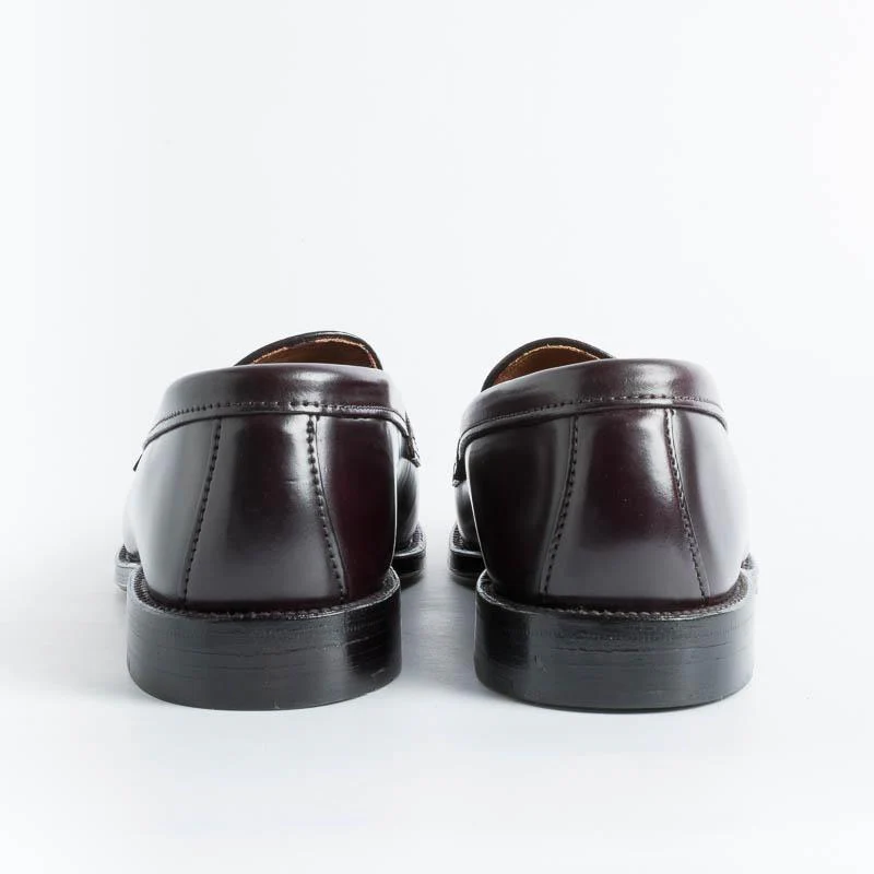 Mocassino college di Alden realizzato in culatta di cavallo Horween Shell Cordovan colore burgundy, fondo cuoio, lavorazione goodyear. Van Last.