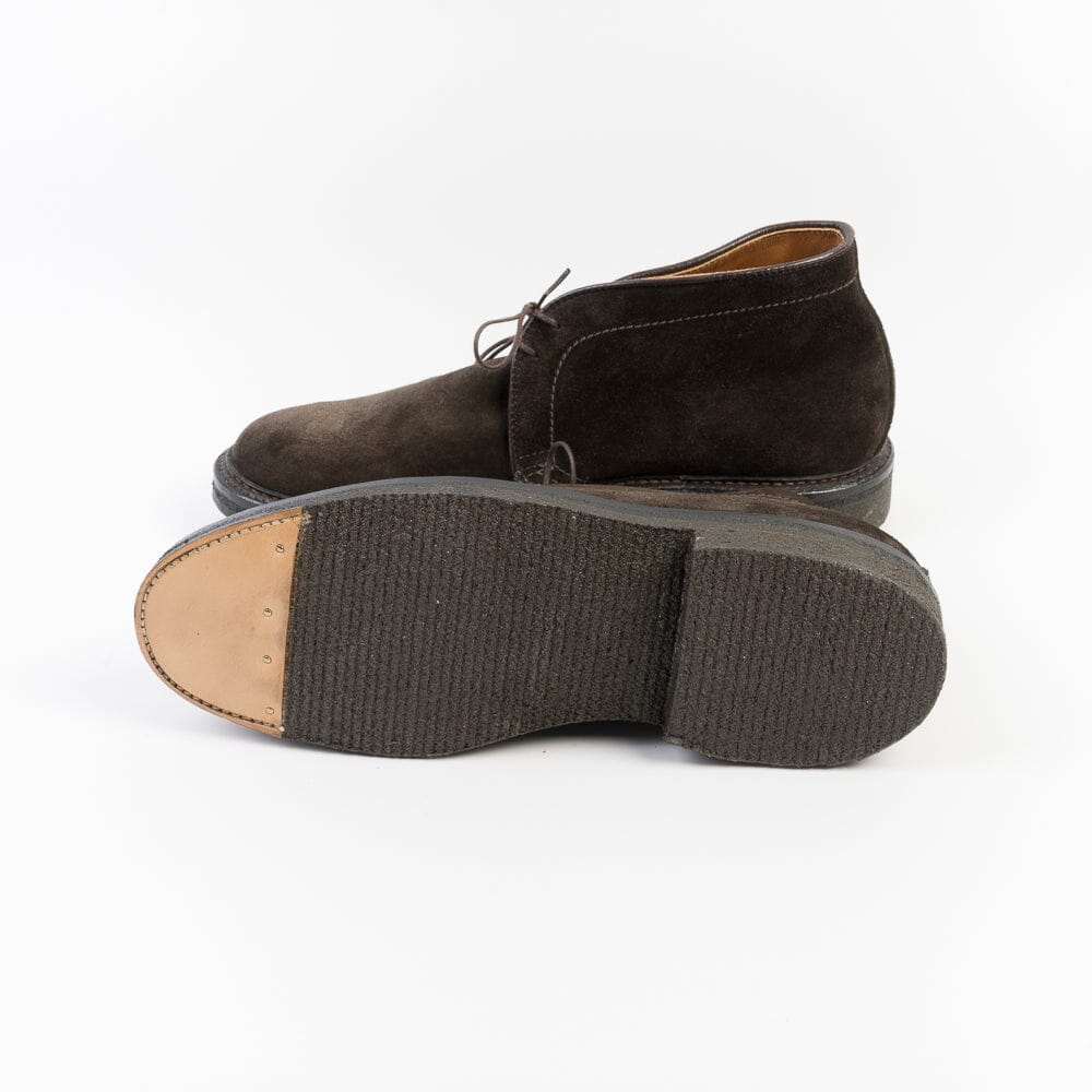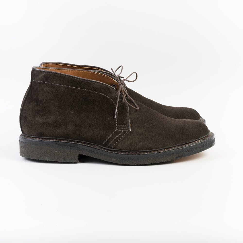 Polacco di Alden realizzato in camoscio colore testa di moro, lavorazione goodyear, doppia cucitura del guardolo e fondo in vera gomma naturale.
