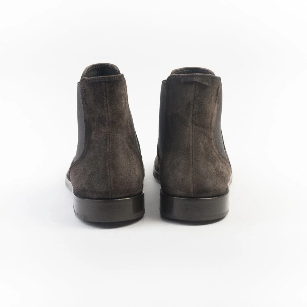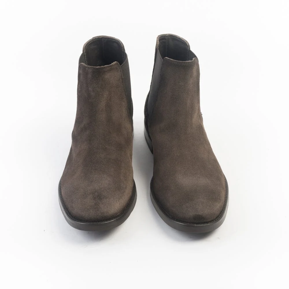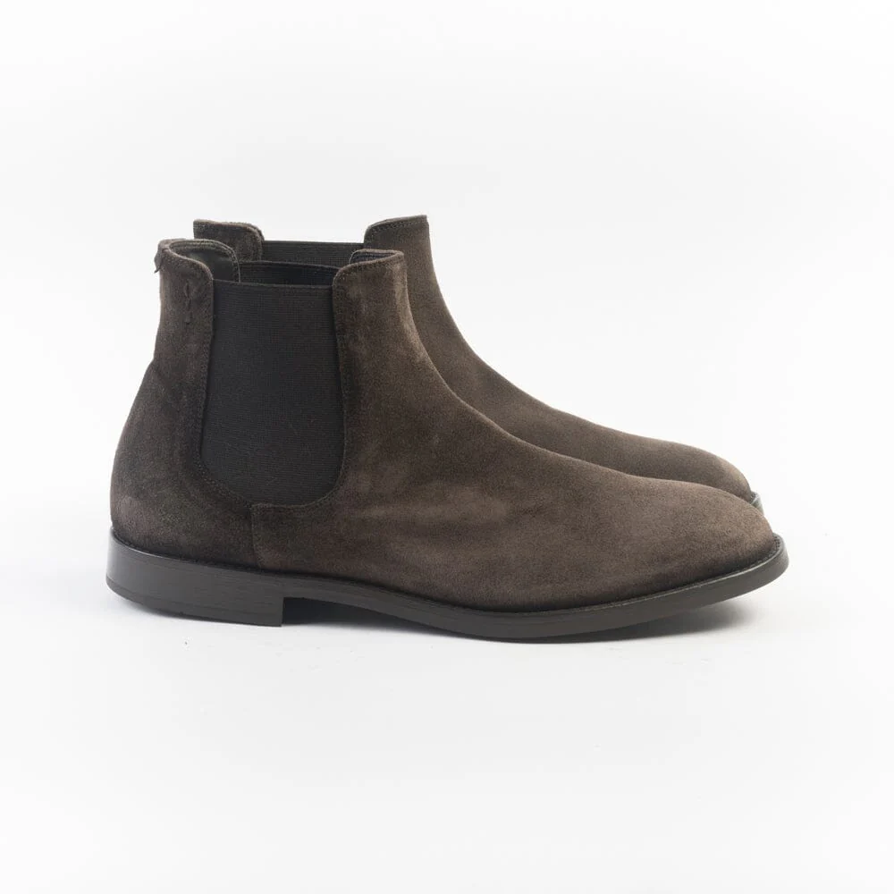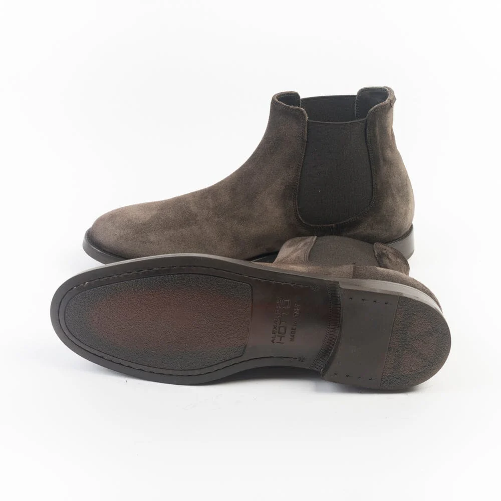 Stivaletti modello beatles di Alexander Hotto, realizzati in morbidissimo camoscio di colore testa di moro con punta arrotondata. Elastici laterali in nuance per facilitare la calzata. Interno foderato in pelle e soletto interno imbottito. Suola in gomma estremamente flessibile. Dettaglio della maison con cuciture sul lato esterno, posteriore.
