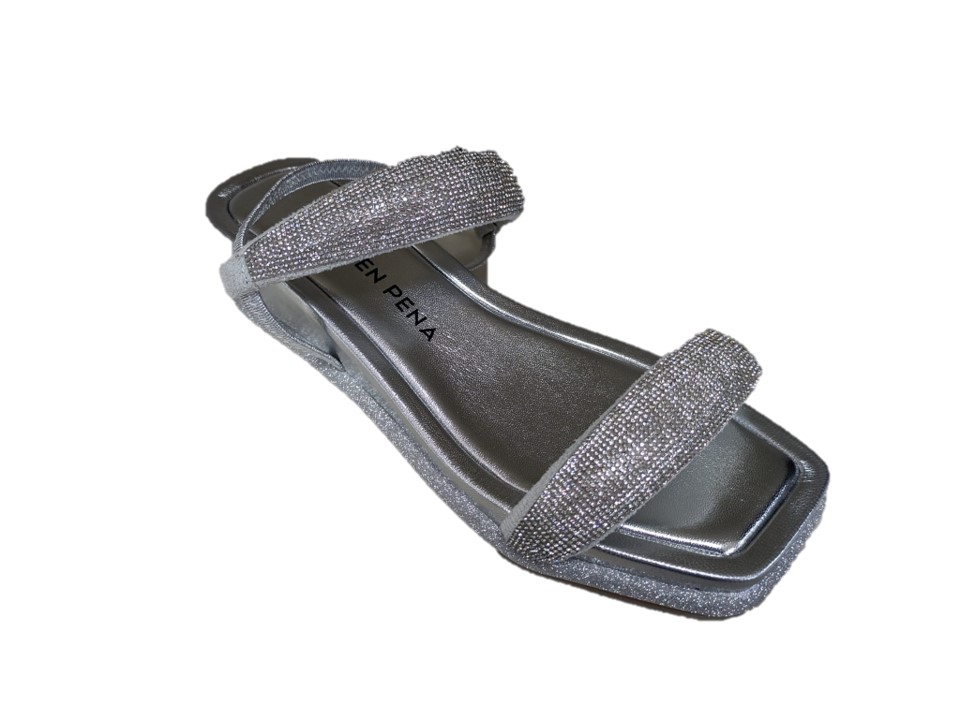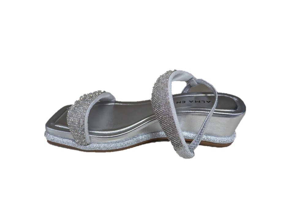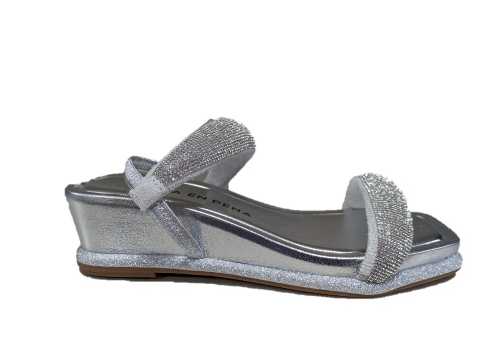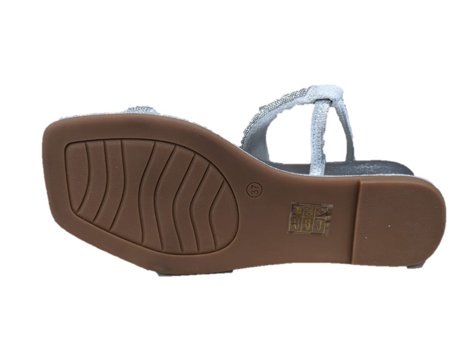 sandali con strass colore argento, zeppa 4cm, suola in gomma