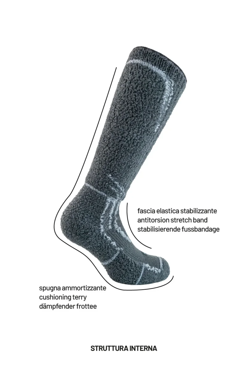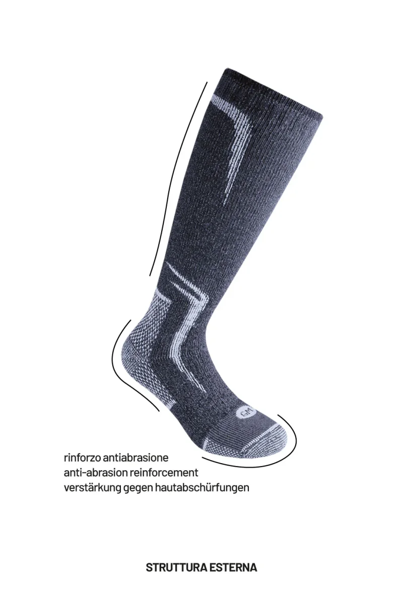 La calza termica per eccellenza, super resistente e caldissima per le spedizioni in alta quota e le lunghe permanenze in ambienti freddi. Il filato in lana vergine merino extrafine e cashmere è un’esclusiva Calze GM e rende il prodotto unico.