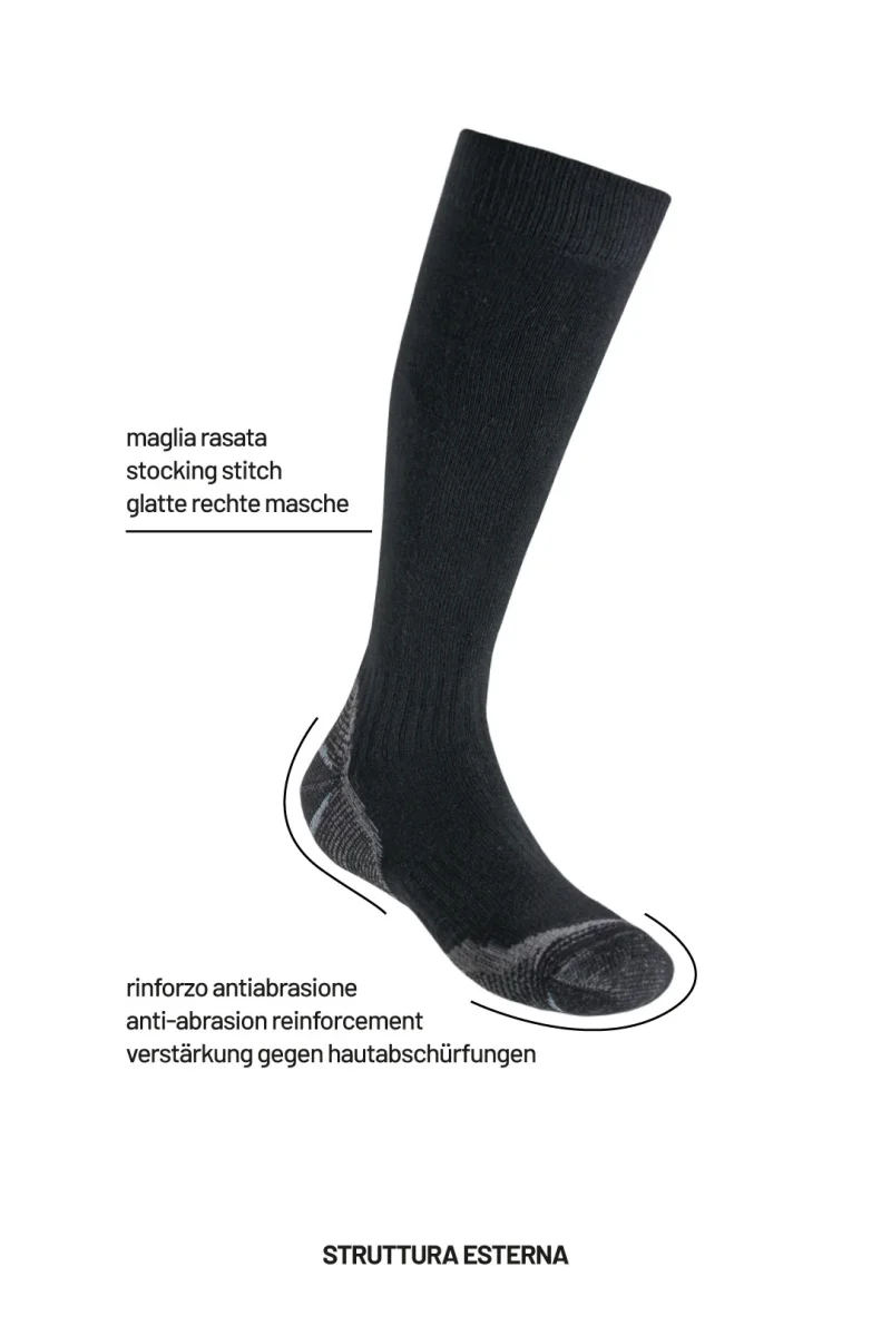 Per un utilizzo in alta quota, scalate su terreni tecnici e ghiaccio. Comfort termico e prestazione abbinate a protezione e morbidezza. Il filato in lana vergine merino extrafine e cashmere è un’esclusiva Calze GM e rende il prodotto unico.