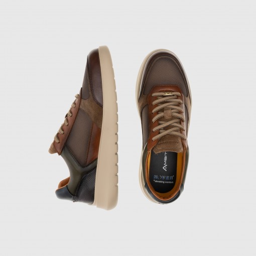 HOVER è una sneaker focalizzata sull’offrire il massimo comfort e benessere all’utente, grazie alla tecnologia brevettata della sua suola in EVA che aumenta la flessibilità e l’assorbimento di energia. Questa versione presenta tomaia in misto pelle liscia e testurizzata, linguetta in pelle scamosciata e colletto in tessuto tecnico per un maggiore comfort.
